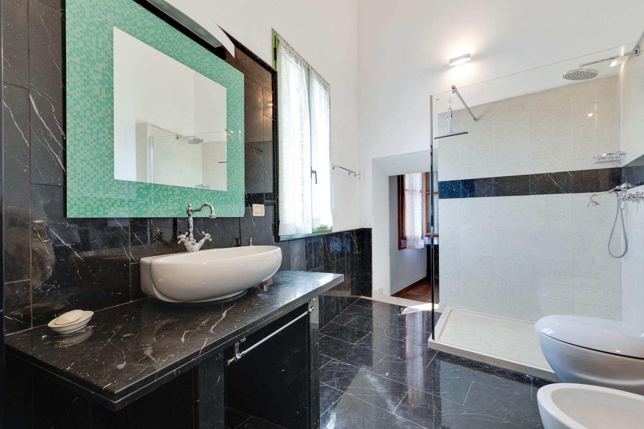 I Romano d'Ezzelinos fredfyldte landskab tilbyder dette majestætiske venetianske slot fra det 18. århundrede et enestående tilflugtssted, hvor tidløs elegance møder moderne komfort - og dine lodne venner er mere end velkomne. Ejendommen er omgivet af en indhegnet have og inviterer dig og dine kæledyr til at strejfe frit, sole sig i solen eller nyde afslappede gåture gennem den velplejede grund. Efter dine eventyr skal du vende tilbage til din private slotsoase. Spis under stjernerne på din private terrasse eller slap af i det smukt møblerede interiør, der afspejler en kongelig charme. Køl af i skyggen med dit kæledyr, udforsk nærliggende stier på cykel, eller slap af med en bog i en af stuerne. Med børnevenlige detaljer som en høj stol og rummelige haveområder er dette også et perfekt tilflugtssted for familier. Uanset om du slentrer brostensbelagte byer, smager det venetianske køkken eller blot slapper af i haven med din firbenede ledsager, lover dette slot en virkelig fortryllende og kæledyrsvenlig italiensk flugt. For dem, der elsker at blande kultur med udforskning, er beliggenheden en port til Norditaliens mest ikoniske byer. Besøg den nærliggende middelalderperle Bassano del Grappa eller tag et naturskønt tog til Venedig - kun en time væk - hvor du og din hund i snor kan vandre gennem den historiske Markusplads eller udforske det livlige, kæledyrsvenlige Rialto-marked sammen. Hvis du vil længere, så hop ombord på den kæledyrsvenlige Ritten Railway for panoramaudsigt over Dolomitterne med din hund ved din side.