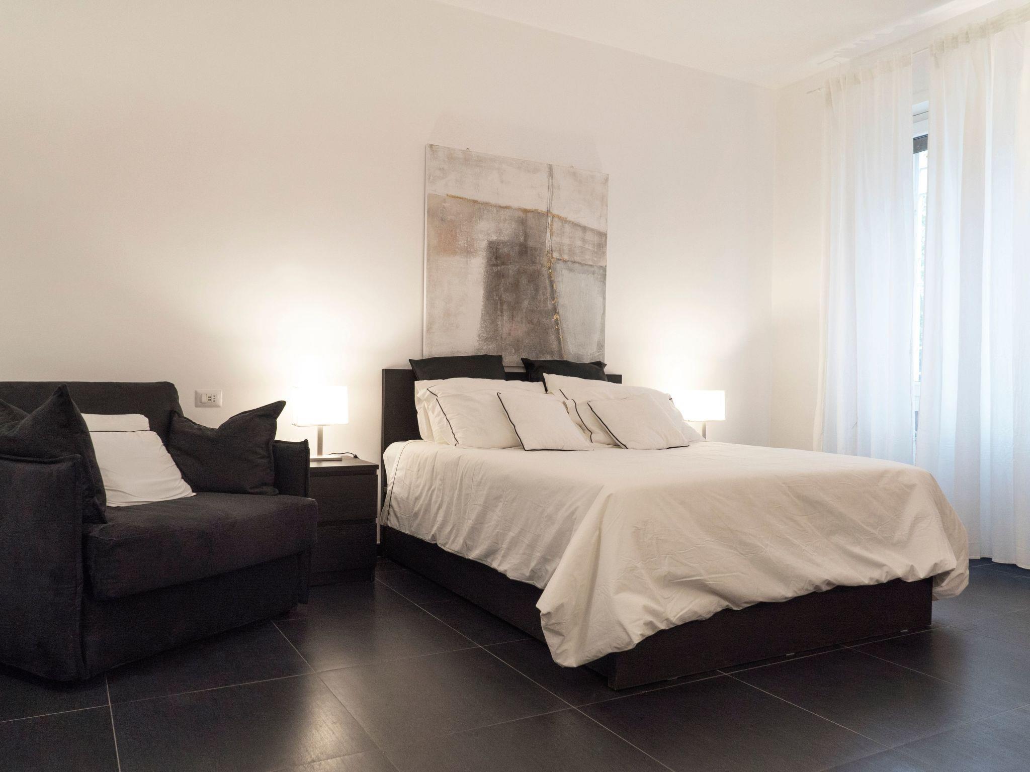 Inside, the flat stands out for its elegant décor and attention to detail. It offers a fully equipped kitchen to meet every need, a bathroom with a large shower, and a spacious double bedroom that includes an extremely comfortable armchair-bed. Comfort is ensured by amenities such as high-speed and extremely stable Wi-Fi, Ethernet sockets for smart working, a washing machine, dishwasher, microwave, air conditioning, independent heating and a Smart TV.