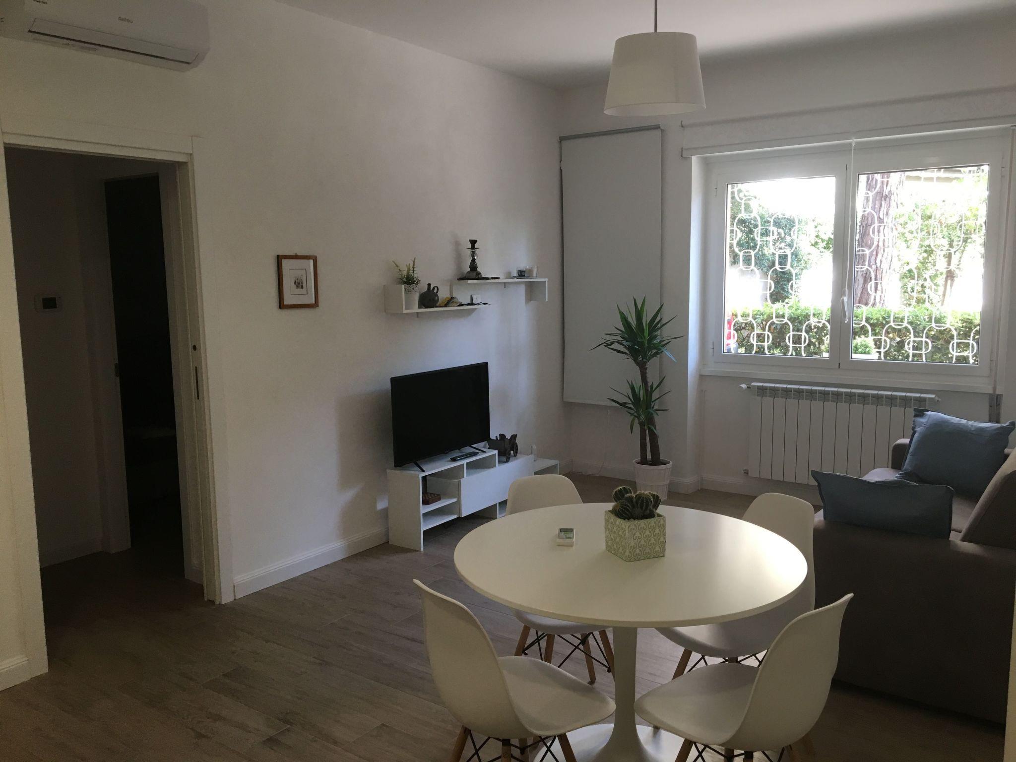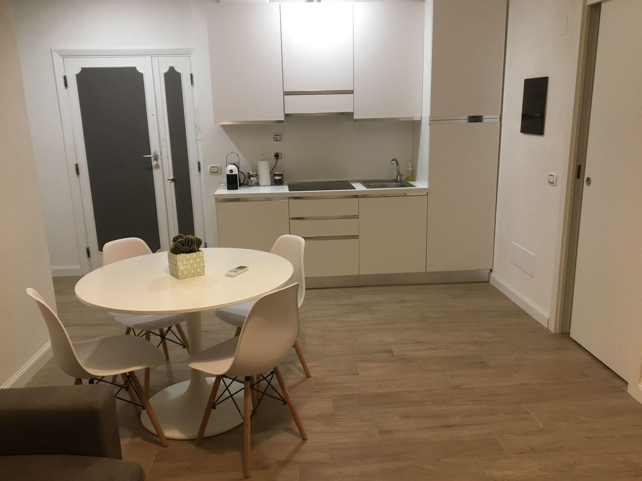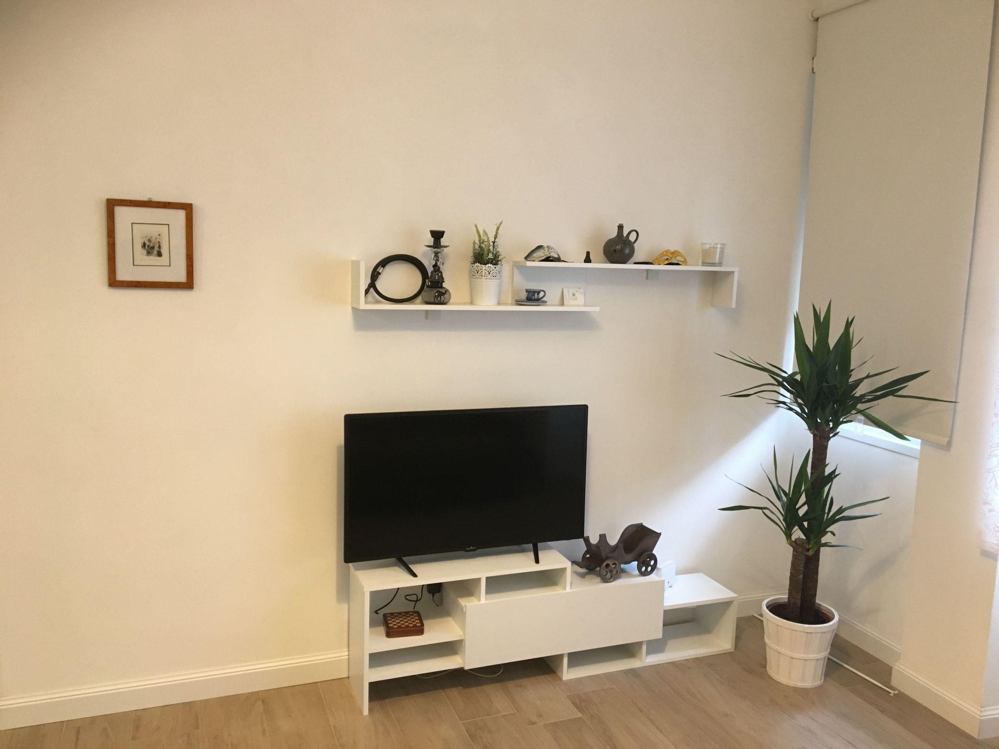 Air conditioning, Wi-Fi and TV make the accommodation suitable for the most demanding guests, who will also appreciate the functionality of the furnishings and the attention to detail. The flat consists of a large living room with a kitchenette, dining table, sofa bed and TV, and a bedroom with a double bed, two bedside tables, wardrobe, chest of drawers and TV.