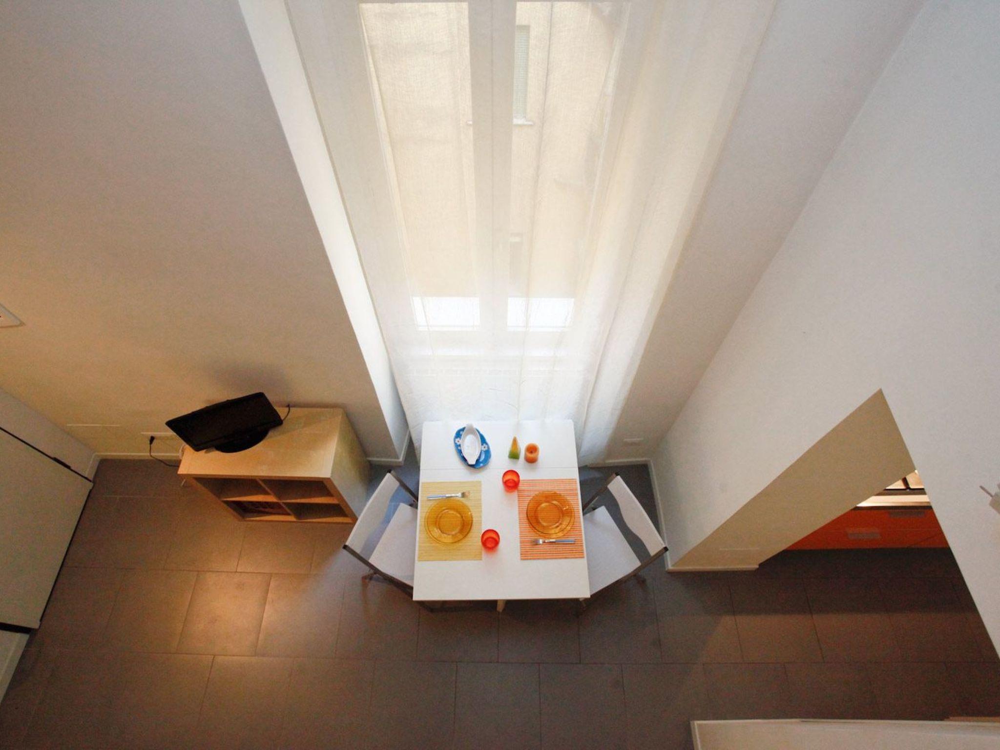 The apartment is very bright and colorful and spread over two floors; at the entrance you will find the dining room with sofa bed, fitted wardrobes, wardrobe with television; a staircase will take you into the bedroom, where you will find the double bed, a chest of drawers and bedside tables;