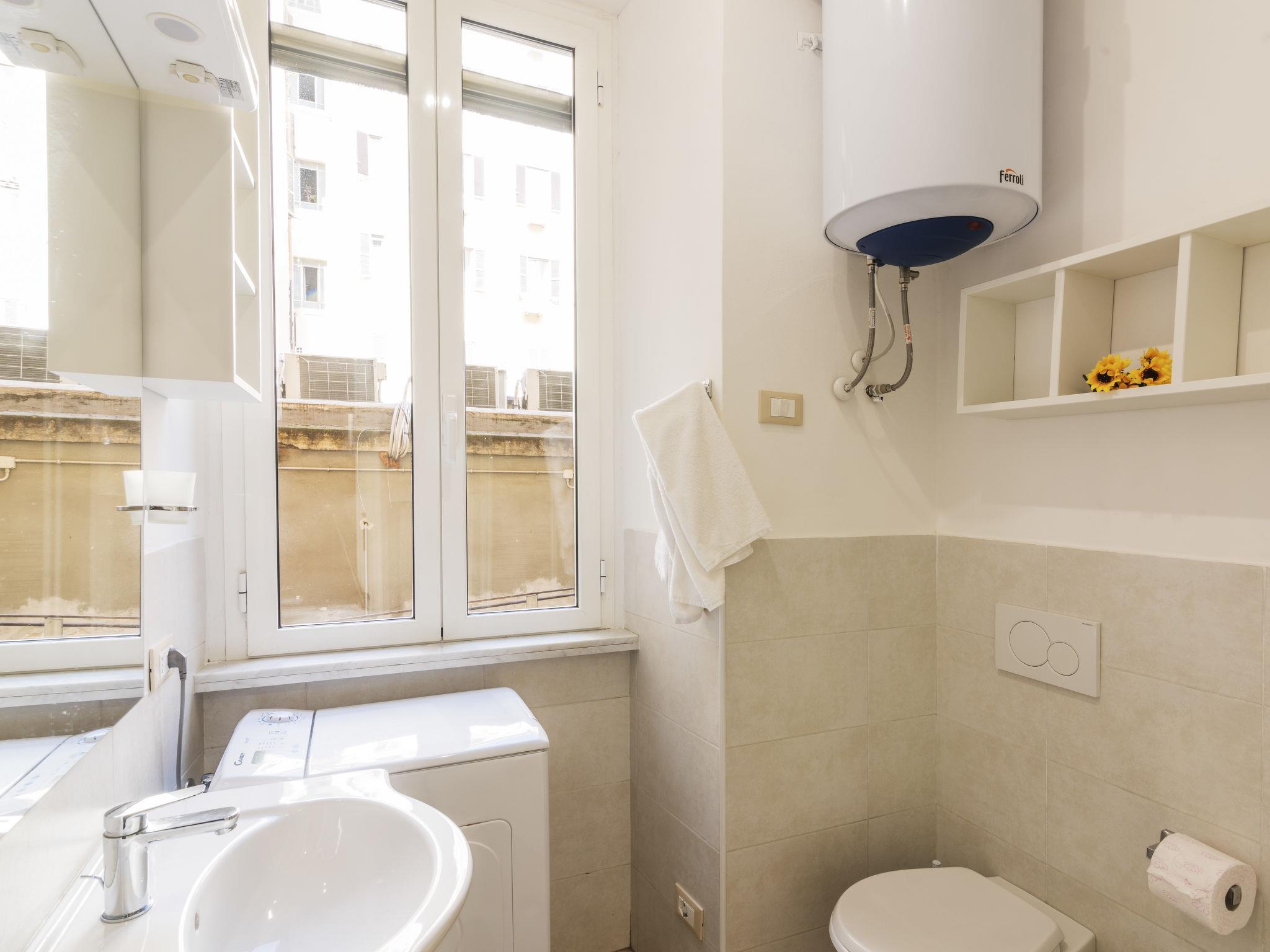"Testaccio Piramide 2", 3-room apartment 55 m2, on the lower ground floor. Object suitable for 4 adults. Spacious and bright: living/dining room with TV and air conditioning. Exit to the garden. 1 double bedroom with TV. 1 room with 1 x 1 bunk beds. Open kitchen (4 induction hot plates, toaster, kettle, microwave). Shower/WC. Heating. Facilities: washing machine. Internet (WiFi). IT058091C2TWQRGEI3