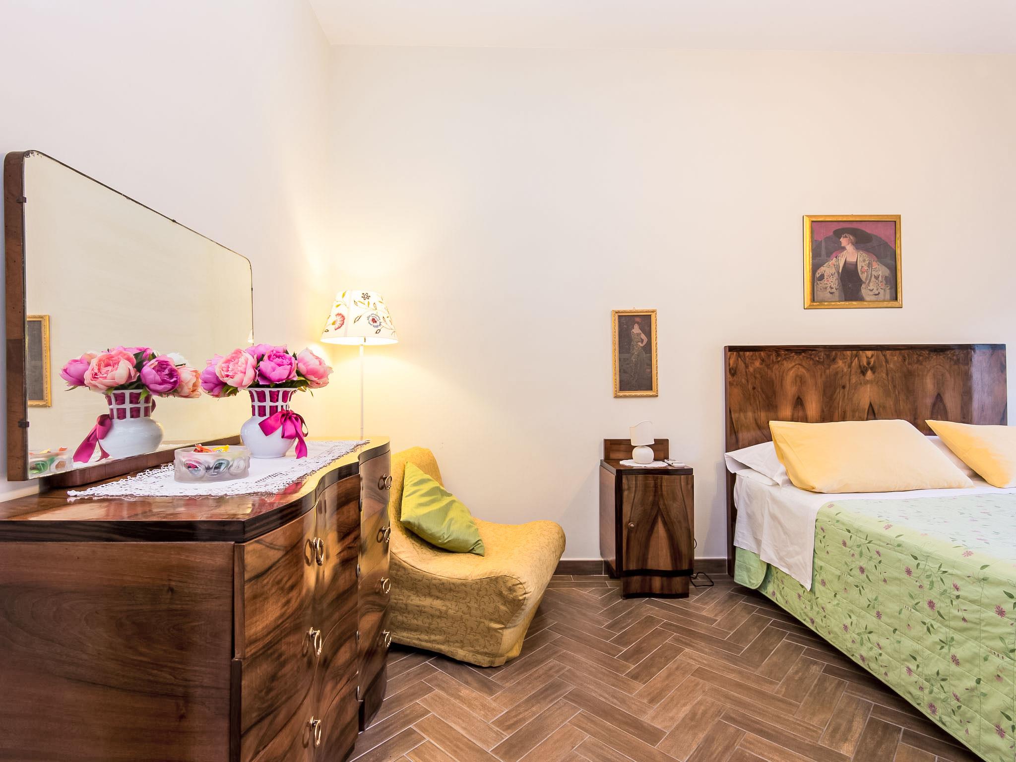 Historical apartment block "Regina's House - St Peter", 4 storeys, built in 1900. In the district of Vaticano - San Pietro, in the centre of Roma, in a central, busy position. In the house: lift. Linen change weekly. Towel change weekly. Room cleaning weekly on request (extra). Airport transfer (extra). Public car park at 50 m, extra. Grocery 50 m, supermarket 100 m, shopping centre 80 m, restaurant 10 m, bar, bakery 50 m, café 10 m, bus stop 20 m, underground station "Ottaviano - San Pietro - A line" 200 m, sandy beach "Fregene/Maccarese" 20 km, park "Valle Aurelia" 1.7 km, lake Bracciano 20 km. Nearby attractions: Vatican Museum entrance 190 m, Trionfale Local Market (fresh groceries) 120 m. On request: airport transfer to the holiday accommodation. No arrivals accepted after 9:00 PM.