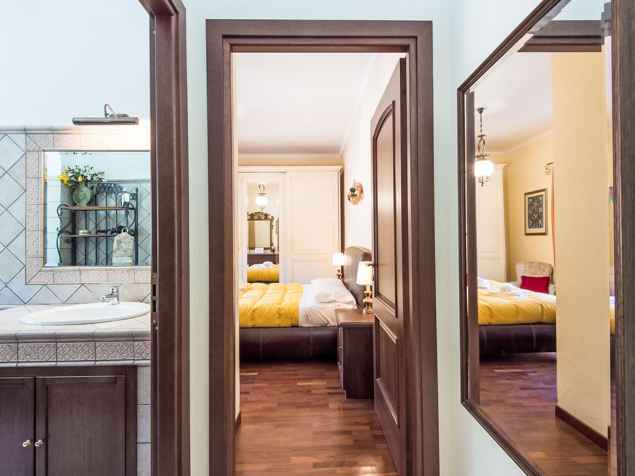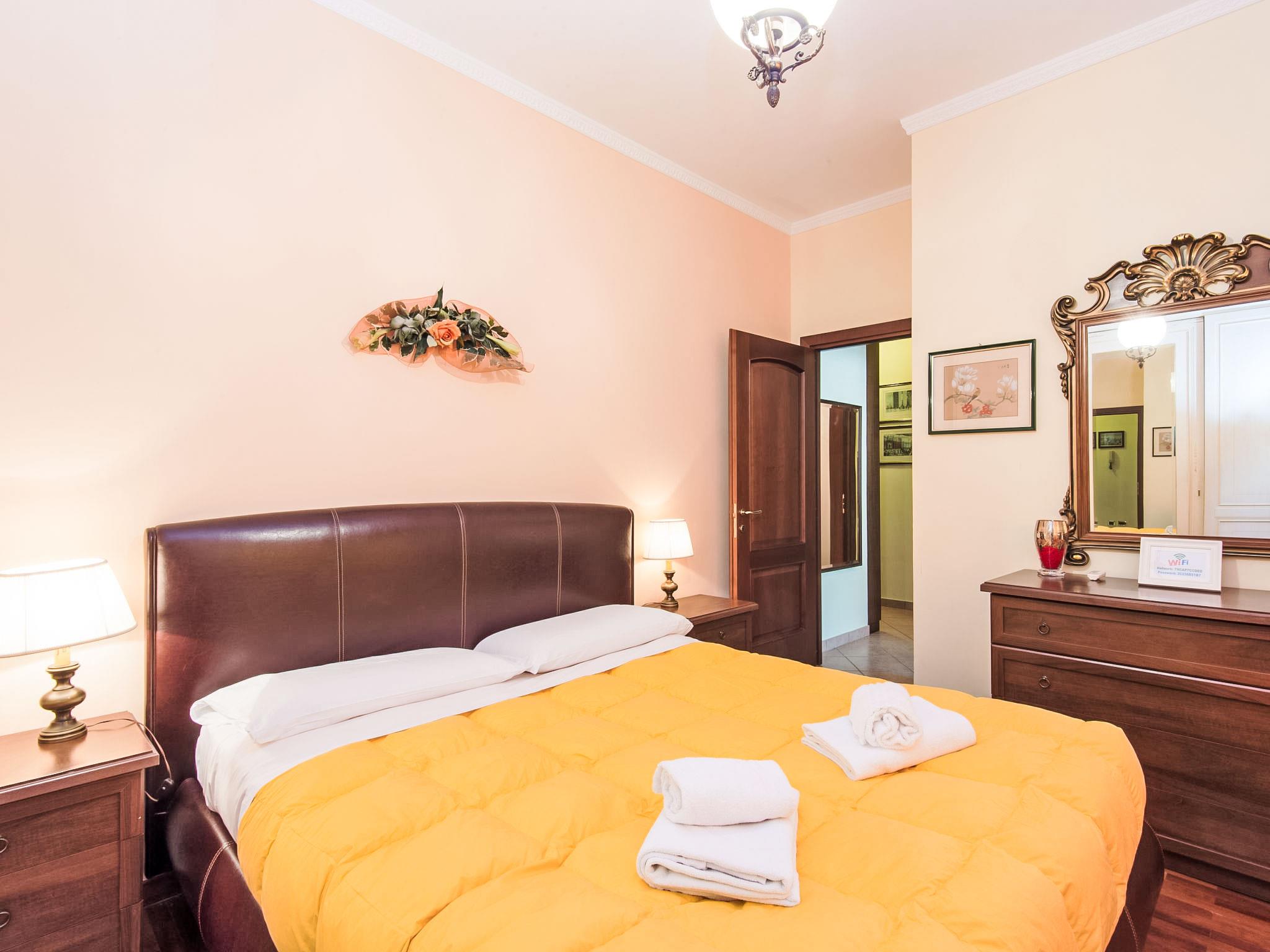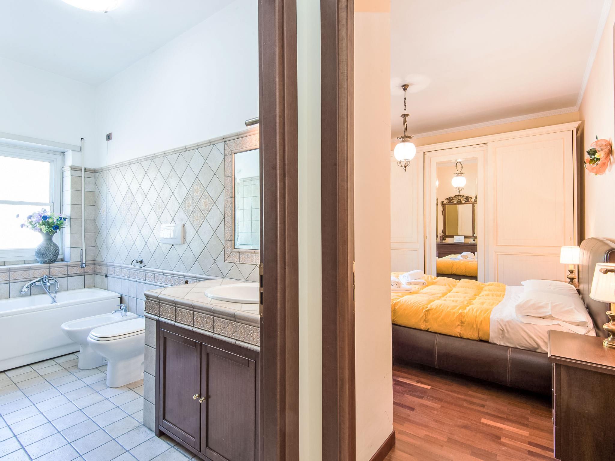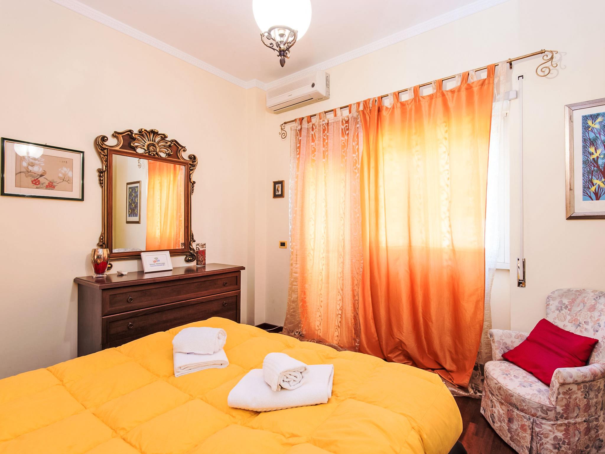 "Vaticanum Hills", 3-room apartment 110 m2 on 2nd floor. Spacious and bright, very comfortable and cosy furnishings: large living/dining room with 1 double sofabed, digital TV, flat screen, radio, DVD and air conditioning. Exit to the balcony. 1 double bedroom with air conditioning. Exit to the balcony. 1 double bedroom. Kitchen (4 hot plates, oven, dishwasher, microwave, grill, electric coffee machine, Capsules for coffee machine (Lavazza A modo mio)) with dining table, digital TV and flat screen. Bath/bidet/WC, shower/bidet/WC. Heating, air-conditioning. Heating available only from 21.11. to 30.03. 2 balconies 4 m2. Facilities: washing machine, iron, hair dryer. Internet (WiFi, free). Late check in (after 20.00h) 30-50 Euro depending on arrival time. IT058091C2NEY6EN4X
