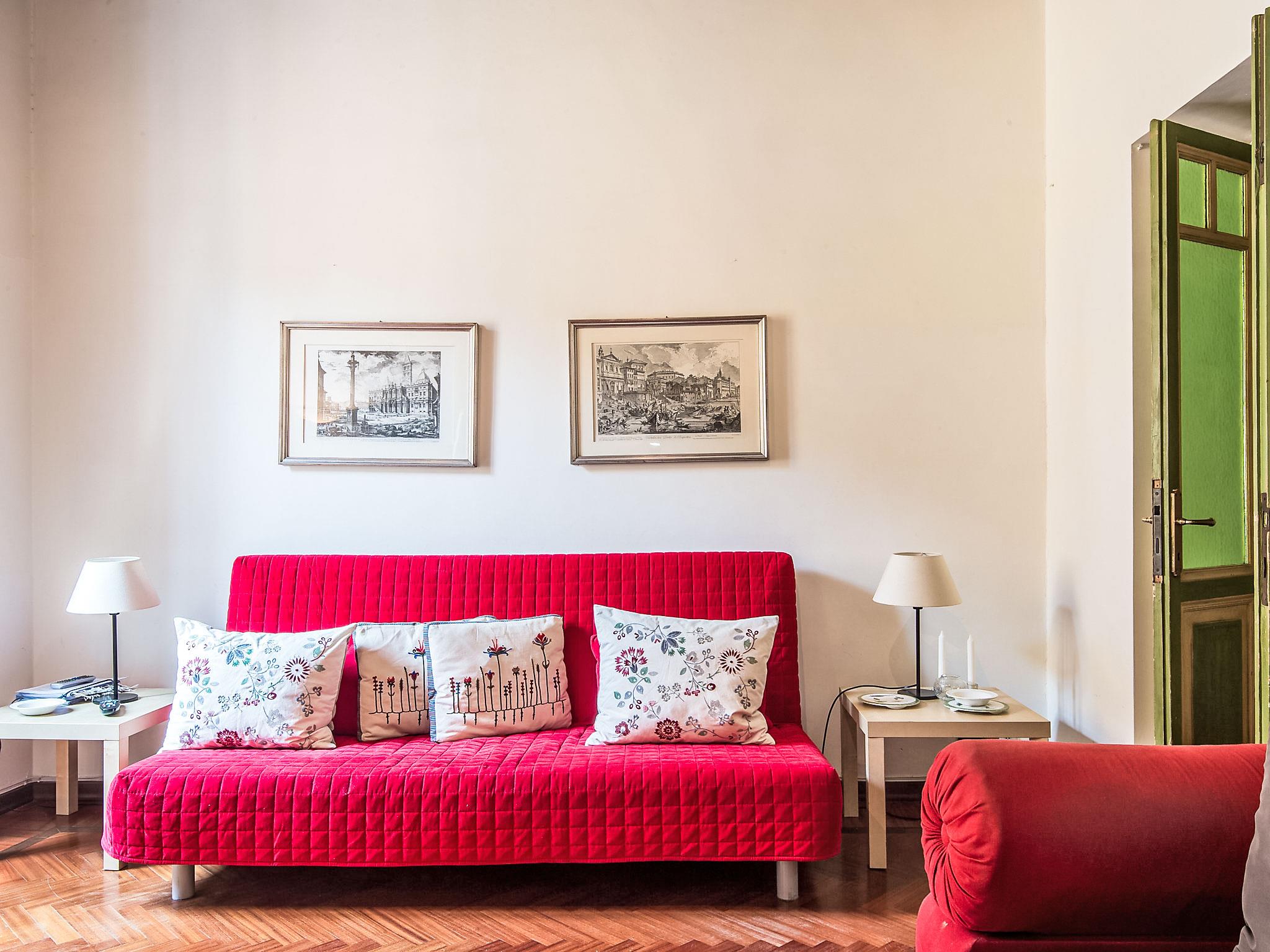 "Navona", 3-room apartment 70 m2 on 3rd floor. Comfortable furnishings: living/sleeping room with 1 sofabed, dining table, satellite TV, flat screen and air conditioning. 1 large double bedroom. 1 small room with 2 beds and fan. Small kitchen (oven, 4 gas rings, microwave). Shower/bidet/WC. Heating, air-conditioning. Heating available only from 01.11. to 15.04. Parquet floors. Facilities: washing machine, iron, hair dryer. Internet (WiFi, free). Please note: no lift. IT058091C2QDV84VRO