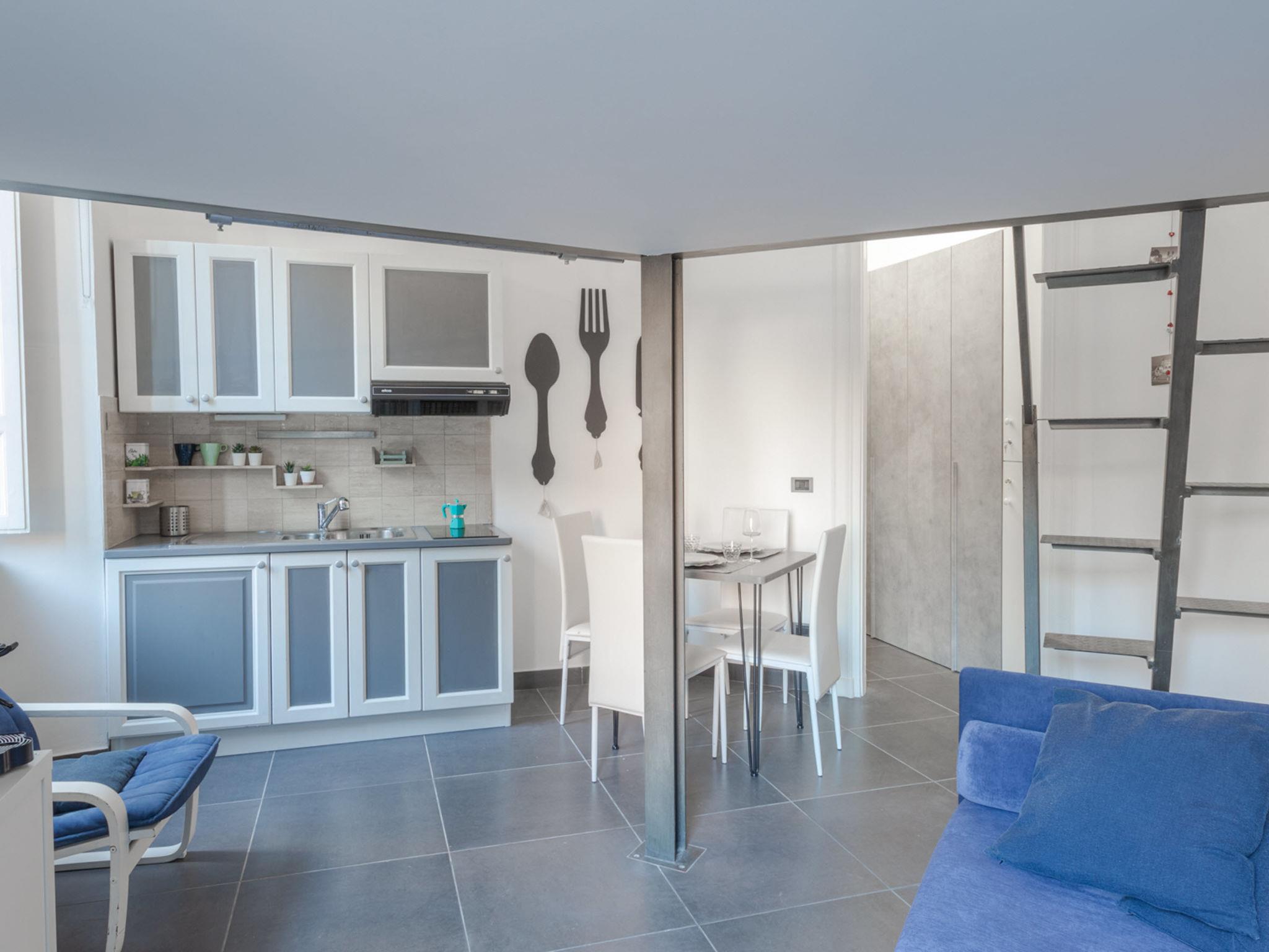 "Le Belle Arti", 1-room studio 40 m2 on 1st floor. Object suitable for 2 adults + 1 child. Very cosy furnishings: living/dining room with 1 double sofabed, digital TV, electric heater and air conditioning. Open gallery 2 m2, with sloping ceilings with 1 double bed. Open kitchen (2 induction hot plates, toaster, kettle, freezer, electric coffee machine). Shower/bidet/WC. Beautiful view of the garden. Facilities: iron, hair dryer. Internet (WiFi). IT058091C23PZ59IUQ