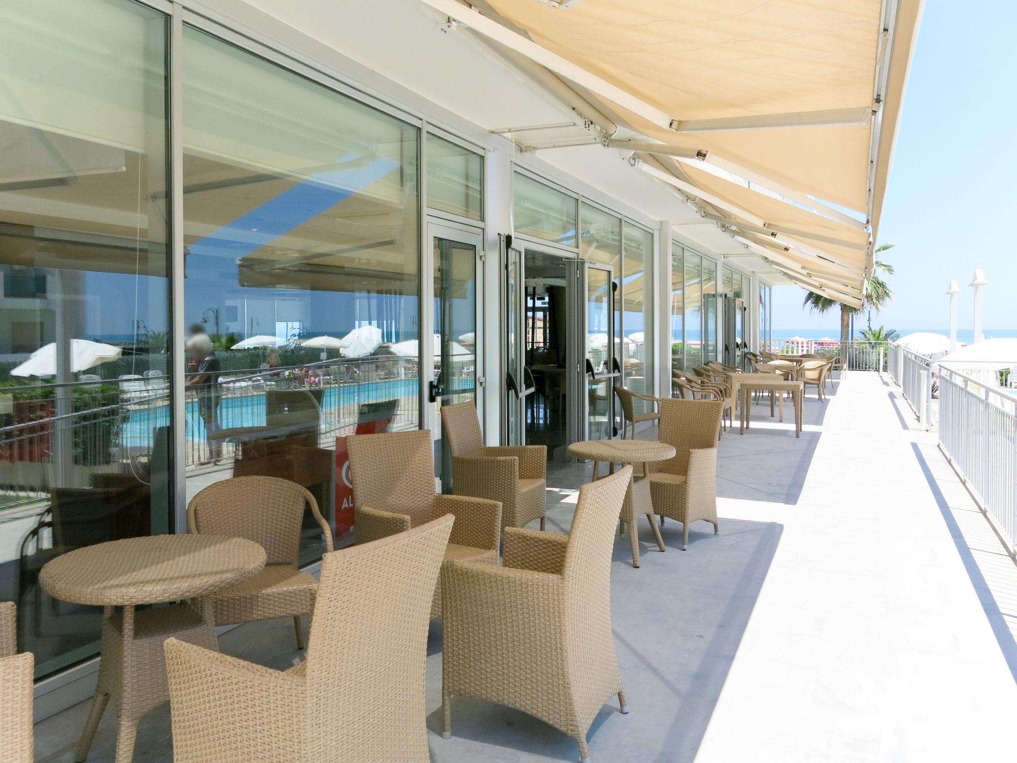 Child friendly residence "Casa del Mar", 4 storeys. 60 apartments in the residence. 1 km from the centre of Roseto degli Abruzzi, 55 km from the centre of Pescara, 9 km from the centre of Pineto, in a sunny position in the residential district, at the seaside, direct access to the beach. For shared use: swimming pool (15 x 6 m, seasonal availability: 30.May. - 13.Sep.) with internal staircase. Unconventional pool shape. Outdoor shower, terrace, garden furniture. In the complex: reception, restaurant, bar, internet access, lift, roof terrace, bicycle rental. Half board possible (extra). Parking (limited number of spaces, extra), public parking on the road. Supermarket 800 m, bus stop 2.2 km, railway station "Roseto degli Abruzzi" 1.5 km. Nearby attractions: Pineto 9 km. Please note: entertainment in the season. Suitable for families. Railway line 50 m from the property. During the off season only limited offers available in the holiday resort.