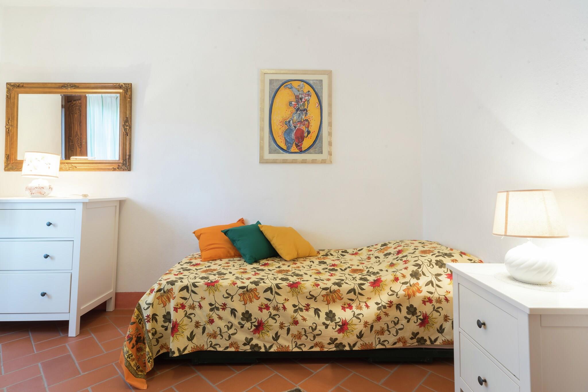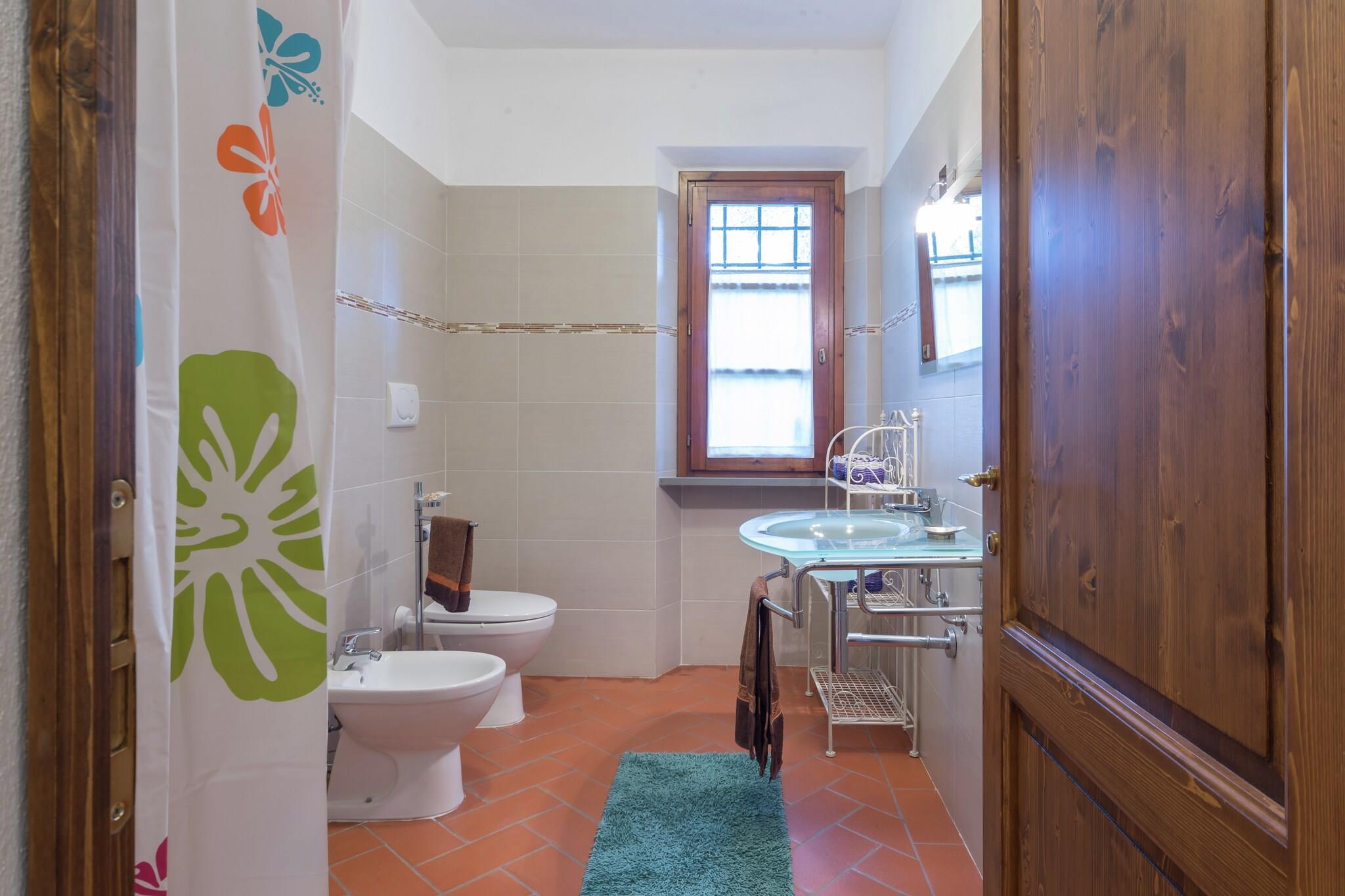 Dette charmerende feriehus ligger i en gammel mølle fra begyndelsen af 1500-tallet, omgivet af en stor privat indhegnet park på cirka 8.000 m². Ejendommen ligger i det fredelige toscanske landskab og tæt på havet, og er blevet omhyggeligt restaureret for at bevare sin oprindelige struktur og historiske karakter. Feriehuset ligger i stueetagen, er helt uafhængigt af resten af bygningen og tilbyder 95 m² komfortabel opholdsstue. Det har en rummelig stue med pejs og satellit-tv, et fuldt udstyret køkken, et soveværelse med dobbeltseng, et soveværelse med to enkeltsenge og et badeværelse med bruser, håndvask, toilet og bidet. Køkkenet indeholder et køleskab med fryser, 4-blus kogeplader, ovn, opvaskemaskine og et komplet sæt service og tilbehør. Den private indgang åbner direkte ud til en eksklusiv have beriget med aromatiske middelhavsplanter. Gæsterne kan nyde et stort grillområde samt gratis parkering ved siden af feriehuset. Indkvarteringen er egnet til op til fire gæster, og et kæledyr er velkommen. Ejendommen er bekvemt placeret 30 km fra Pisa Lufthavn, 16 km fra Rosignano Marittimo-afkørslen fra motorvej A12 og 1,7 km fra S.R. 206. Havet er let tilgængeligt, med Castiglioncello 14 km, sandstrandene Vada og Mazzanta 17 km og Bau-stranden i Gorette di Cecina 21 km. Naturreservatet Santa Luce og søen ligger kun 6,6 km væk. Der findes butikker og restauranter i nærliggende byer som Gabbro, Castelnuovo della Misericordia, Nibbiaia, Rosignano Marittimo og Rosignano Solvay.