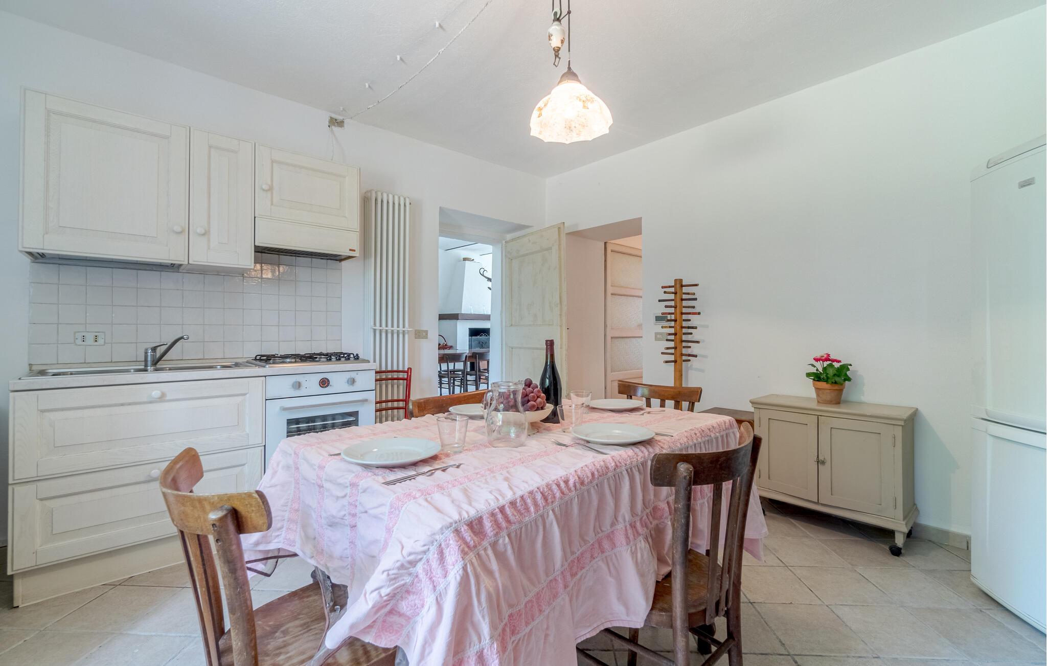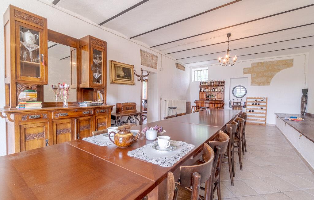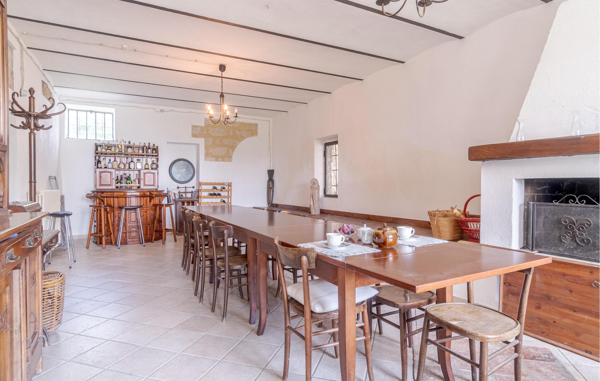 Der er lagt op til en unik boligoplevelse med et historisk strejf i dette charmerende hjem far 1700-tallet. Indretningen er flot og autentisk med udsmykkede lofter, antikke møbler, en bar, hvide farver og et udendørs spabad; kort sagt en vellykket kombination af det nye og det ældre. Alt sammen er det med til at skabe en atmosfære, der er rar at være i, og med sine mange kvadratmeter kan I rejse som en større flok og glæde jer til mange sociale stunder. Gør madlavningen til et hyggeligt fælles projekt i køkkenet og dæk op til middagen på det lange spisebord. Indvendigt er huset ikke præget af den store luksus, men udenfor er der en skøn, børnevenlig have at lege i og sidst men ikke mindst spabadet, hvor I kan hvile benene efter en begivenhedsrig dag med et godt glas vin.
