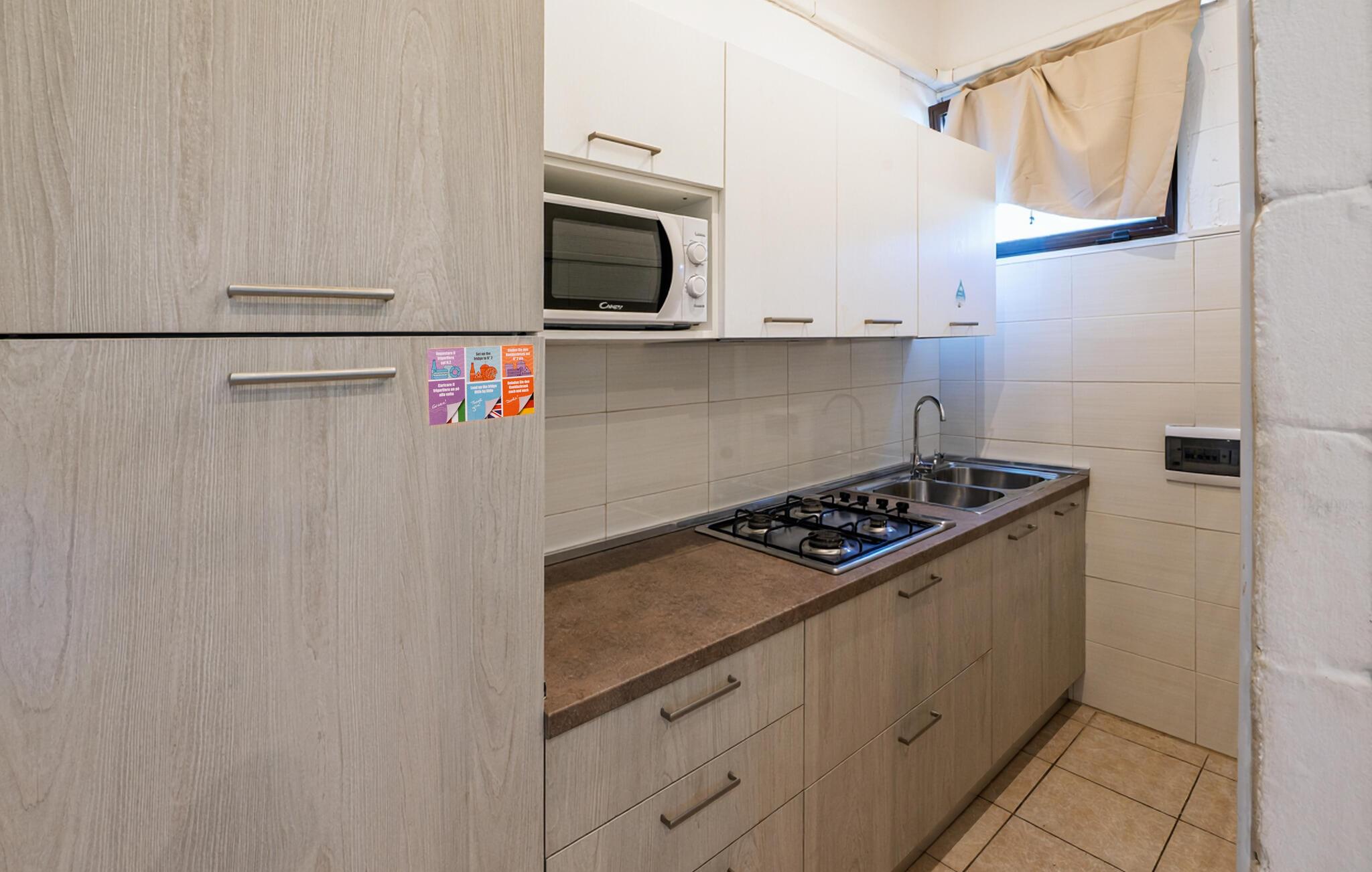 Denne charmerende, praktisk indrettede lejlighed er den ideelle base til at kombinere afslapning ved havet med spændende udflugter. Tilbered lækre pastaretter, planlæg jeres aktiviteter over afslappende måltider og afslut en lang dag med en hyggelig spilleaften.