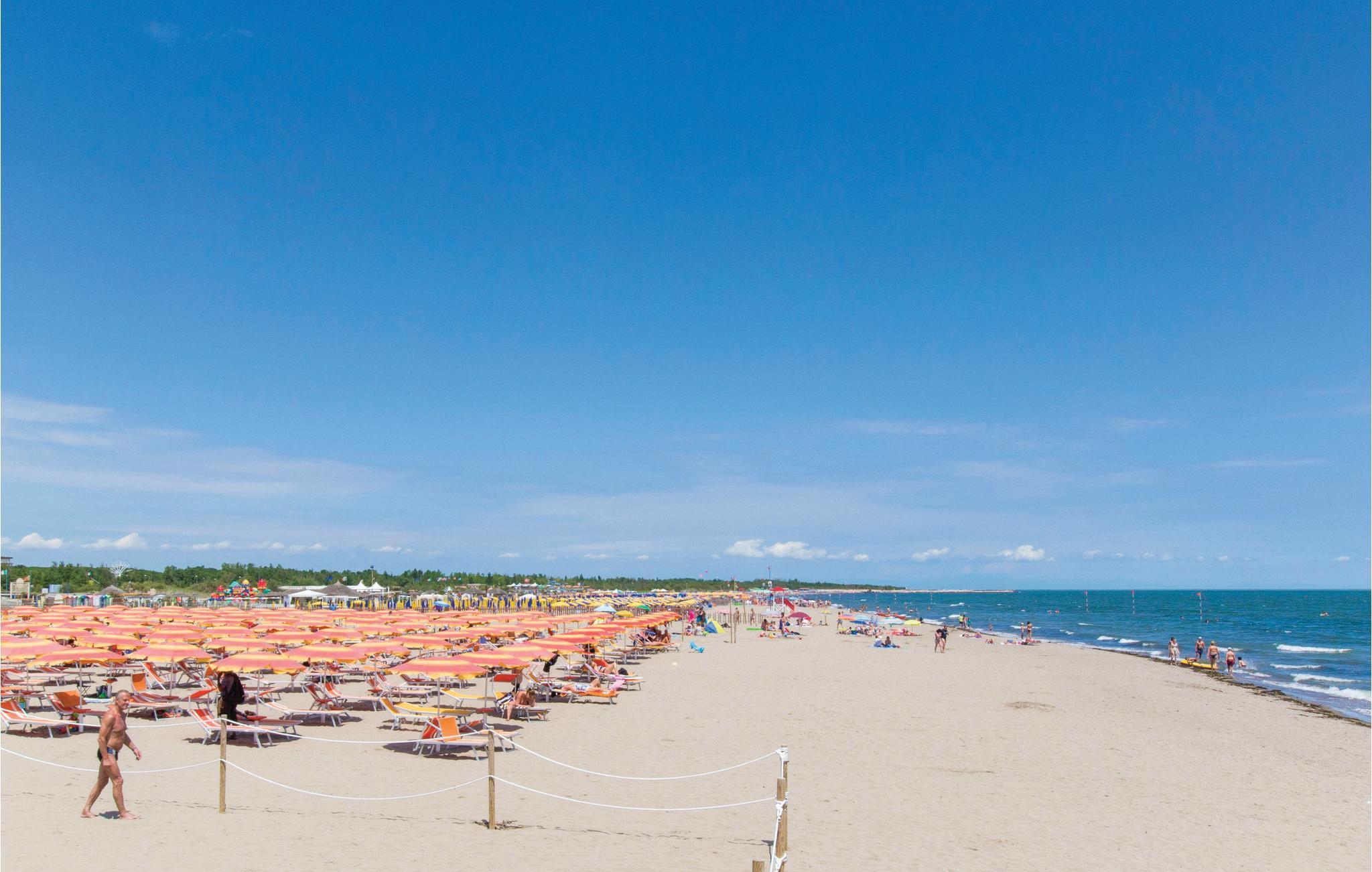 Denne ferielejlighed i Rosolina Mare tilbyder en kompakt og praktisk bolig, kun et stenkast fra havet. Området er ideelt til en afslappende ferie med nem adgang til natur, strande og kulturelle seværdigheder. Udnyt den korte afstand til Adriaterhavskysten, og oplev den maleriske halvø, der er præget af laguner og duftende pinjeskove. Indenfor finder I en funktionelt indrettet lejlighed på første sal. Opholdsområdet har et spisebord, en lille køkkenniche og en siddeplads.