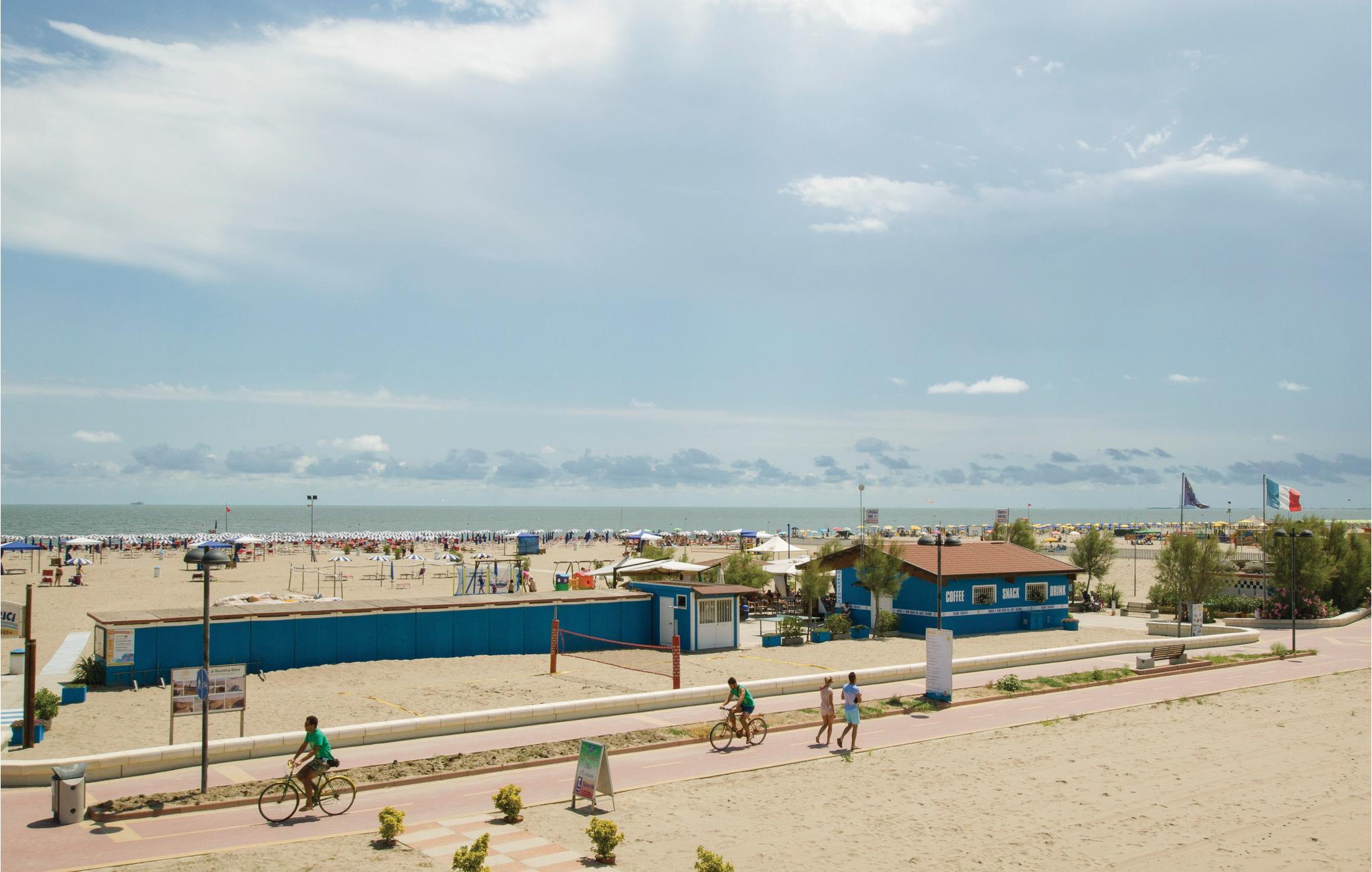 Kun 150 m fra stranden og Rosolina Mares bycentrum venter denne funktionelt indrettede ferielejlighed på første sal af et kompleks med ydertrapper.