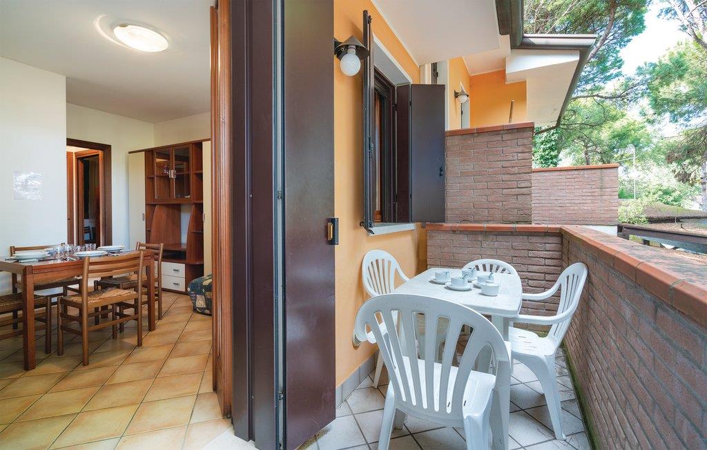 Denne lejlighed ligger i skyggen af fyrretræer, omgivet af en stor have, der deles med fem andre lejligheder. Den ligger nær stranden i Rosolina Mare og er en fremragende løsning for dem, der ønsker en strandferie, mens de besøger charmerende byer: Venedig (70 km), Chioggia (20 km), Padua (60 km), Ferrara ( 80 km), det ekstraordinære naturområde i Po Delta Park (UNESCOs verdensarvsliste), eller kurbaderne i Abano og Montegrotto Terme (70 km). Rosolina Mare ligger i centrum af en 9 km lang halvø, der strækker sig mellem Adriaterhavet og Po Delta-søerne, hvilket gør den ideel til familier med børn, naturelskere og fuglekikkere. Lejligheden ligger på første sal og er tilgængelig via en trappe. Ideelt udgangspunkt ikke kun om sommeren, men også i andre sæsoner for at besøge de pragtfulde byer Chioggia, Este, Pomposa og Montagnana Monselice samt de venetianske villaer - ægte kunst- og historiske juveler med deres fortryllende haver. Gå ikke glip af de lokale mad- og vinspecialiteter med et bredt udvalg af typiske lokale produkter.