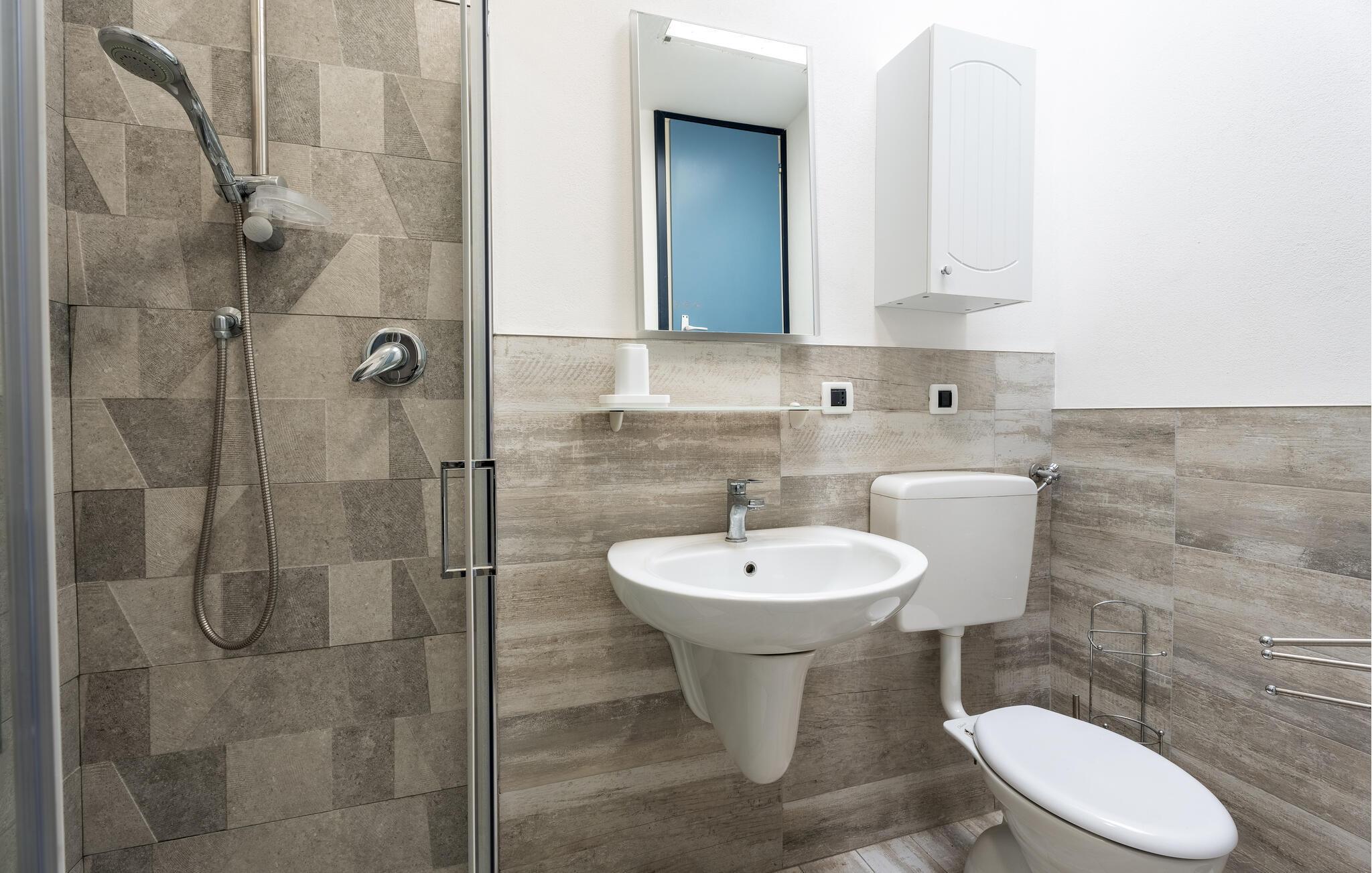 Badeværelse (nr. 1) - WC. Varmt og koldt vand. Bruser