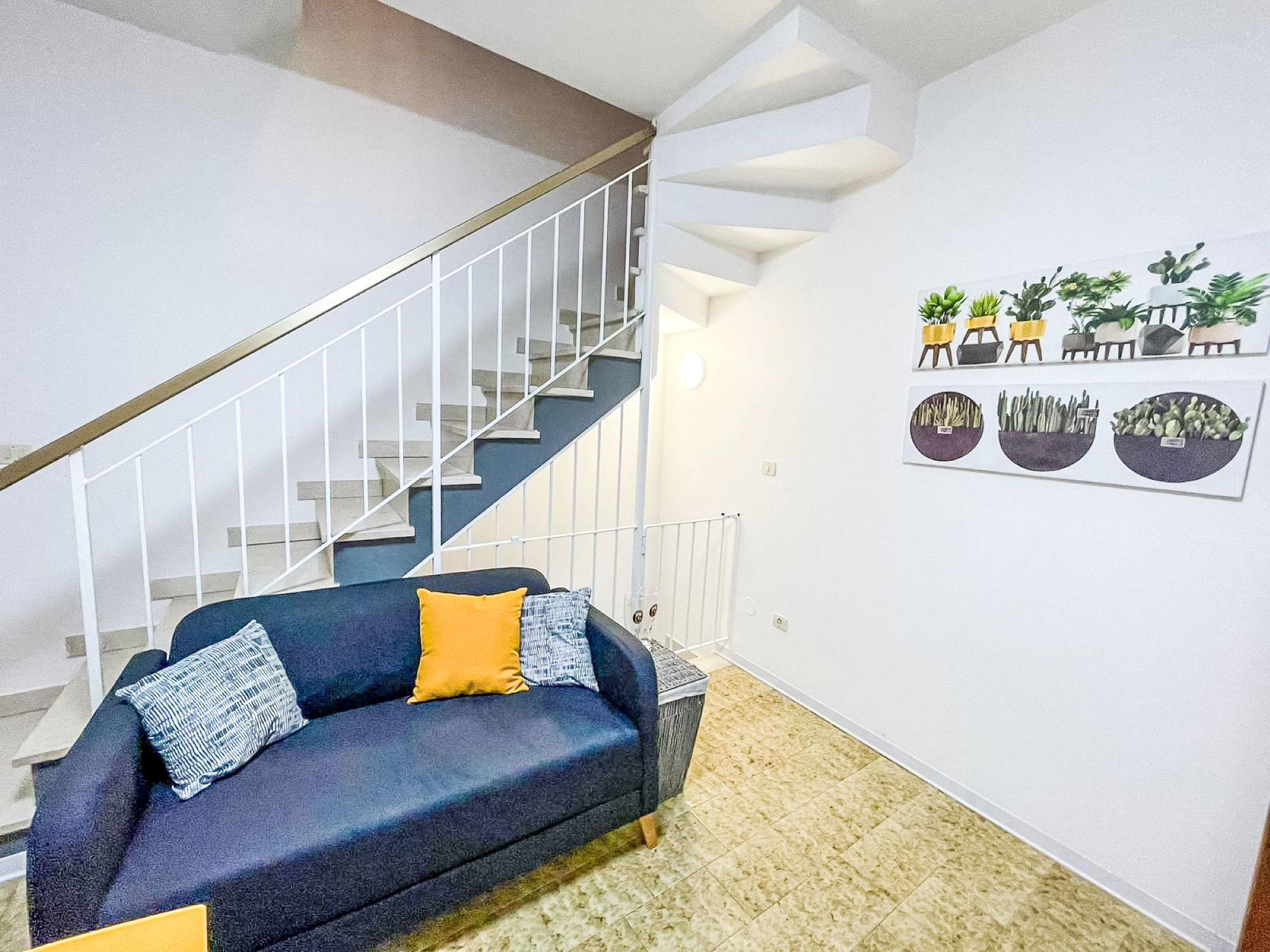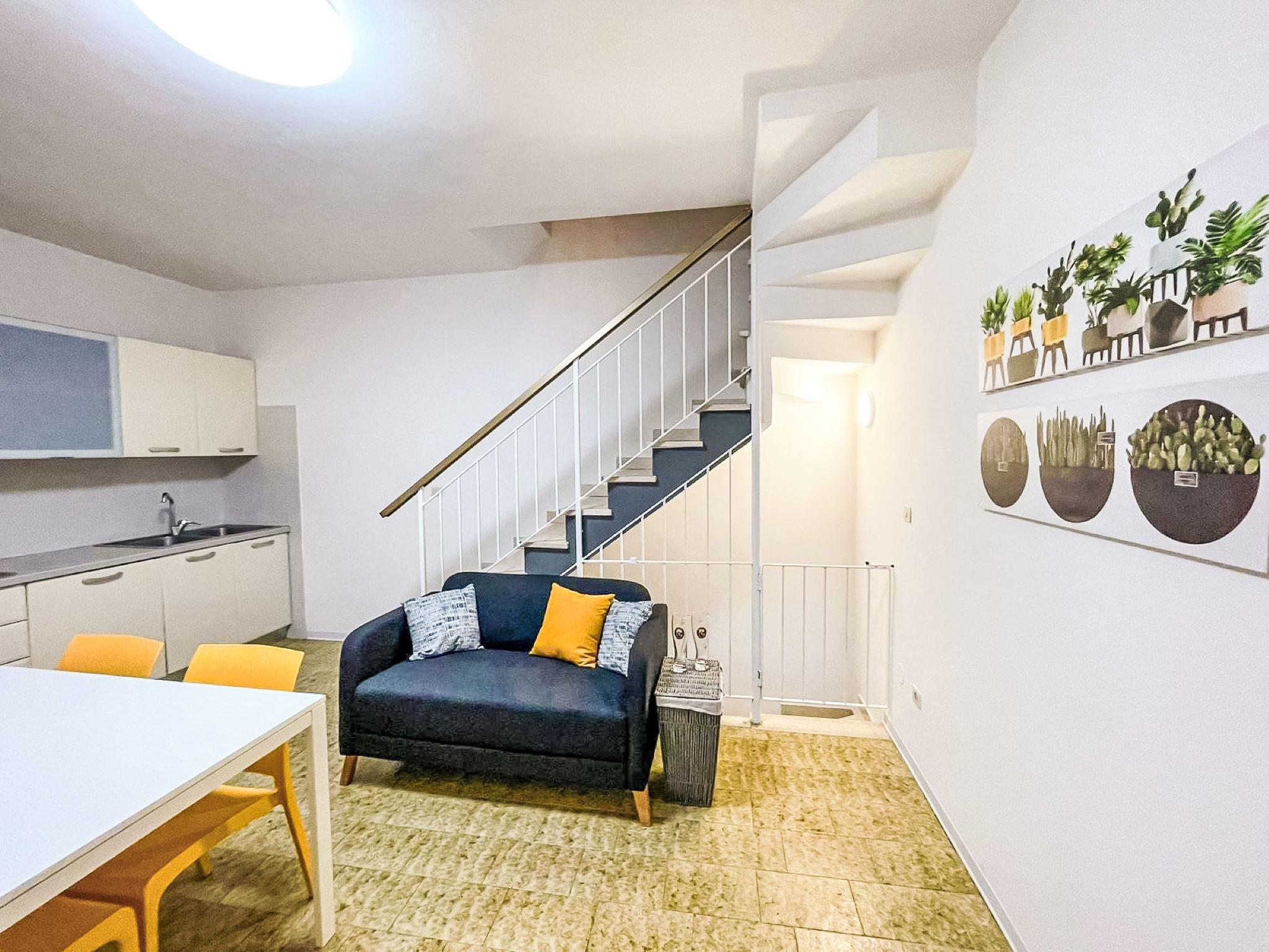 3-room apartment 40 m2 on 3 levels. Practical furnishings: living/dining room with dining table, kitchen corner, digital TV and flat screen. Exit to the terrace. Open kitchen (Gas stove, 4 gas rings, microwave, freezer). On the lower ground floor: 1 room with 2 sleeping facilities. Upper floor: 1 room with 1 bed, 1 double bed and air conditioning. Exit to the balcony. Shower/bidet/WC. Air-conditioning (extra). No heating option. Balcony, terrace. Terrace furniture. Facilities: washing machine, baby cot (extra). Internet (WiFi, extra). Parking (1 car) at the house. Please note: maximum 1 pet/ dog allowed. Private entrance. IT029040C24SUUWZVT