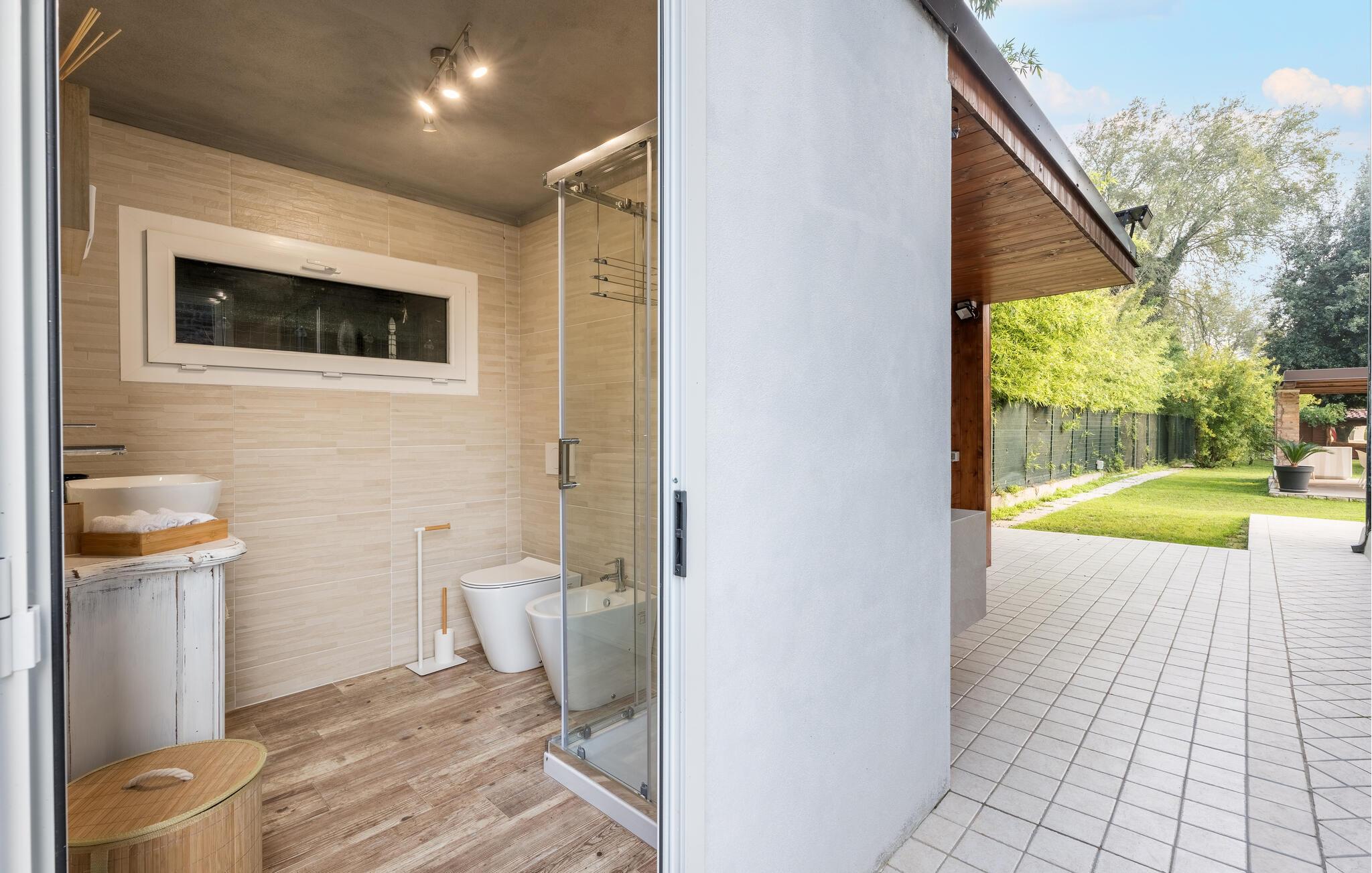Udforsk den smukke natur i Po Delta Park under jeres ophold i dette feriehus med privat udendørs pool.