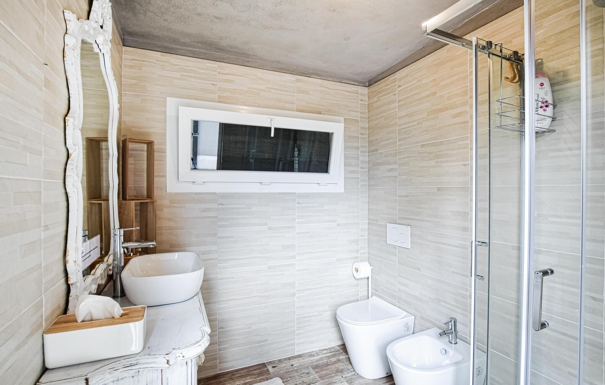 Badeværelse (nr. 1) - WC. Varmt og koldt vand. Bruser