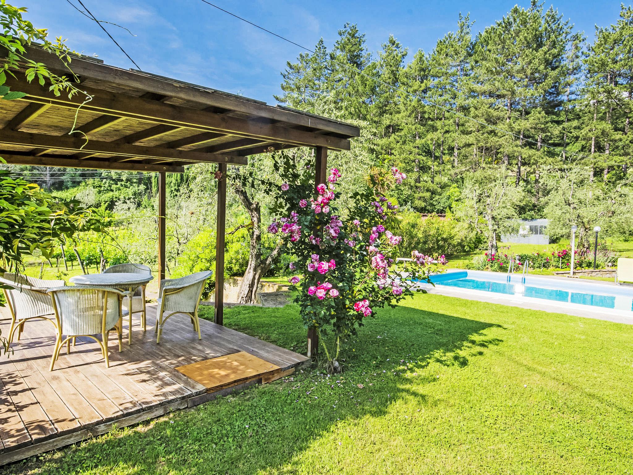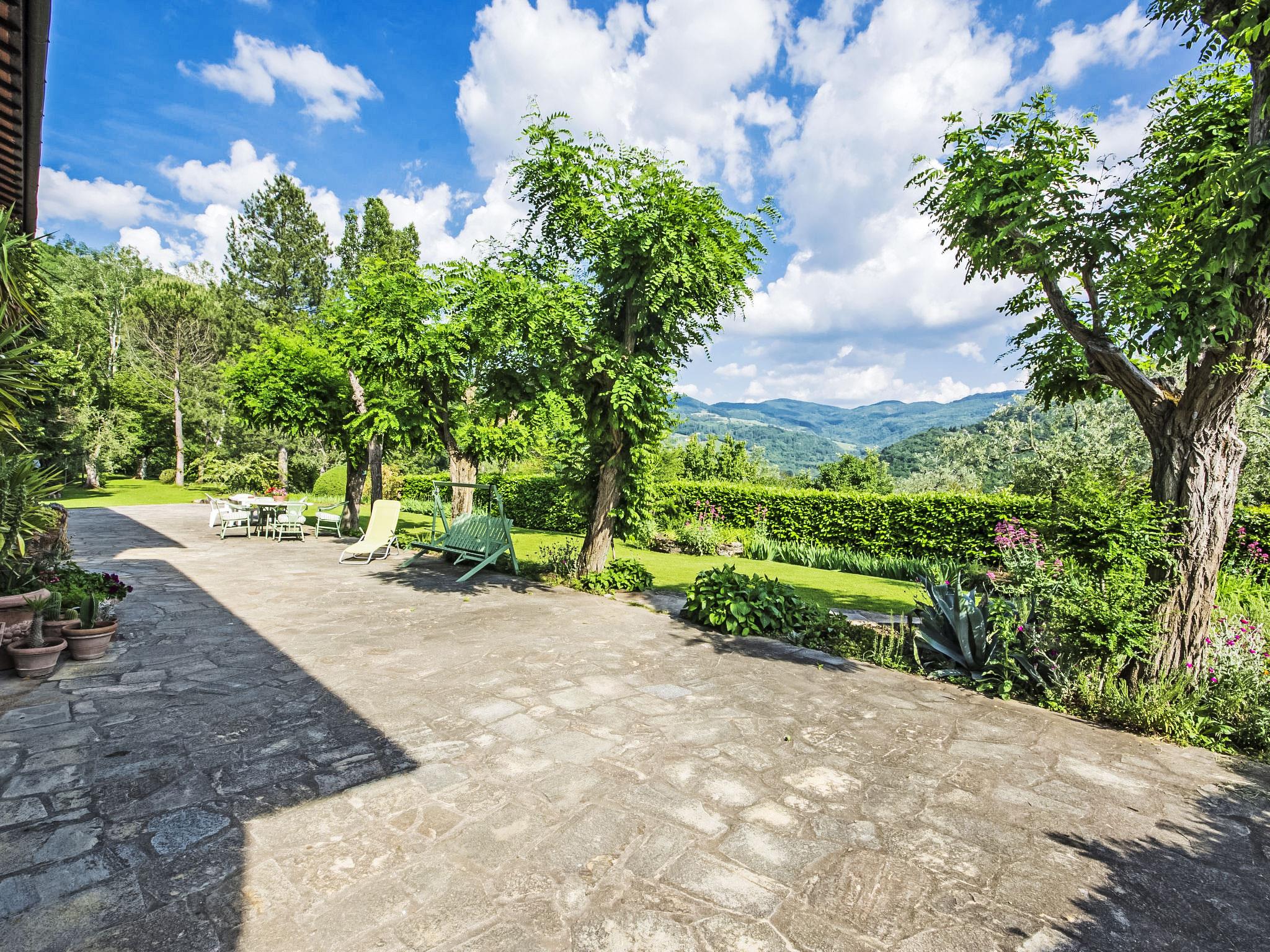 Poggio a Vico 3 km from Rufina: Stone property, consisting of five apartments three of which are available to owners and two used for touristic rental. Country house 350 m a.s.l., renovated, surrounded by trees and meadows. 2 apartments in the property. 3 km from the centre of Rufina, 28 km from the centre of Firenze, in a sunny position on top of a hill, 39 km from the lake, in the countryside. For shared use: park 3 ha, garden 1 ha (fenced), swimming pool (6 x 12 m, depth 100 - 200 cm, seasonal availability: 03.May. - 20.Sep.). Terrace, garden furniture, barbecue (swing). In the complex: WiFi (all included), heating to be paid on the spot, heating available only from 01.Nov. - 07.Apr.. Motor access to the house (1 km via unmade road). Parking at the house. Shop 3 km, grocery 3 km, restaurant 3 km, bus stop 1.5 km, railway station "Rufina" 3 km, bathing lake "Lago di Bilancino" 39 km. Golf course (18 hole) 25 km, tennis 3 km, riding stable 15 km. Nearby attractions: Vicchio 18 km, Fiesole 25 km, Impruneta 36 km, San Casciano in Val di Pesa 40 km, Greve in Chianti 45 km. Please note: the owner lives on the same property.