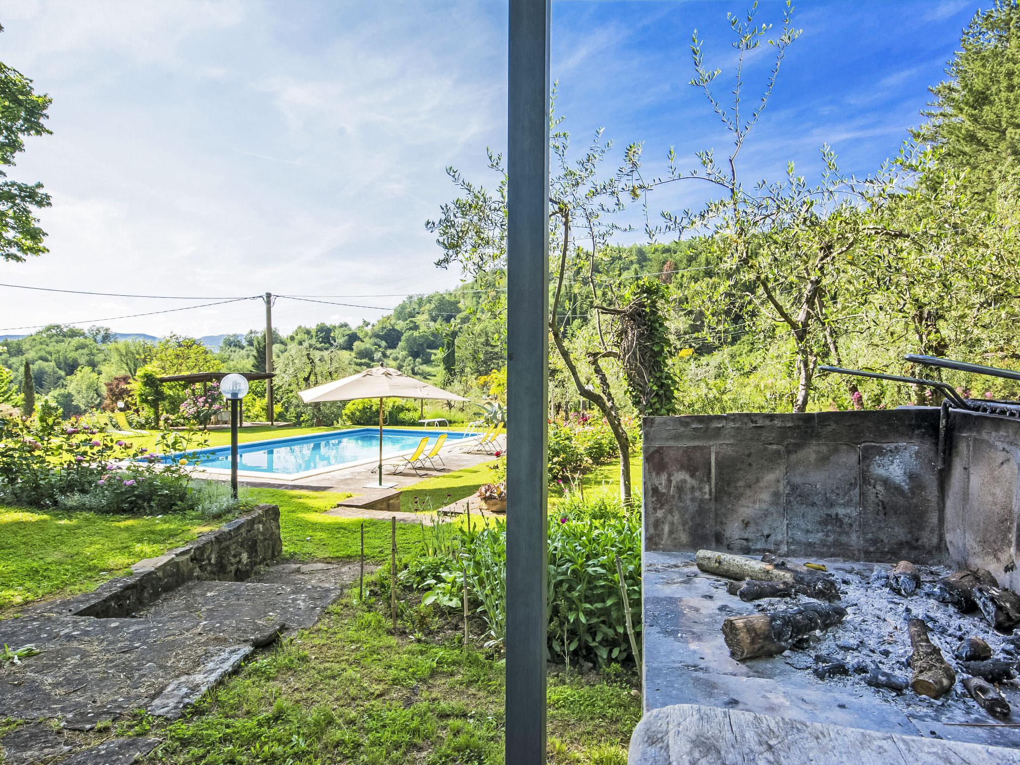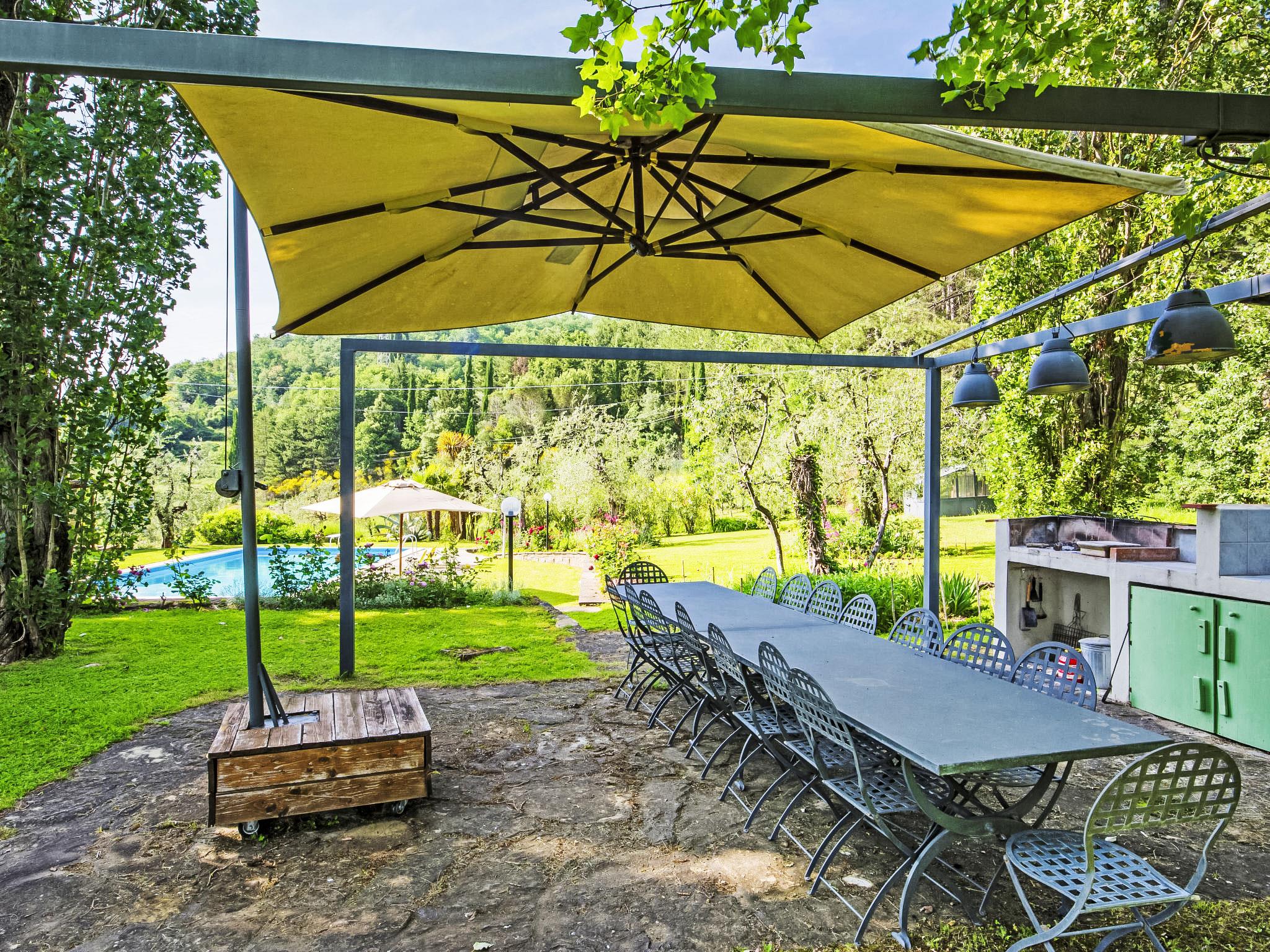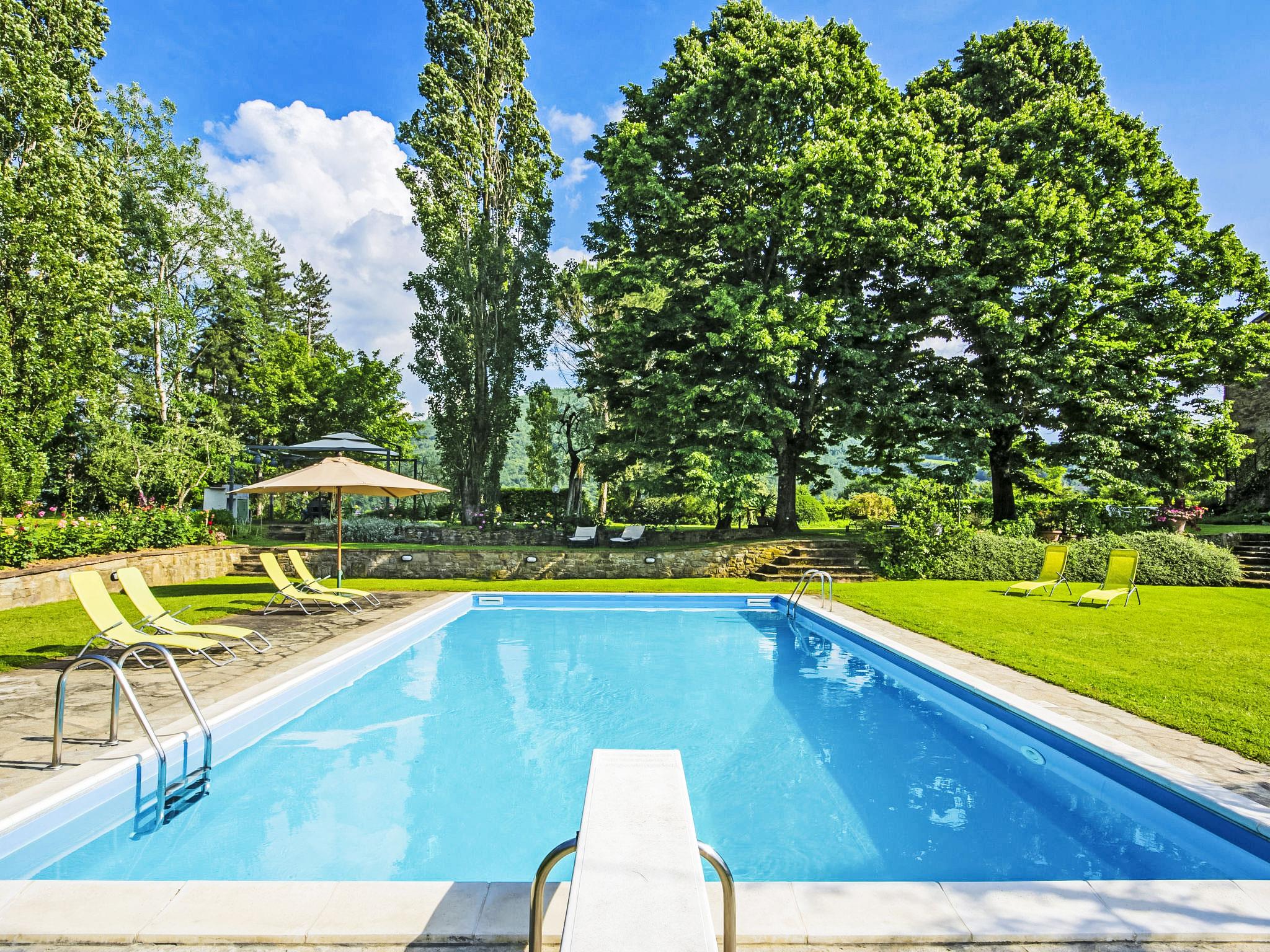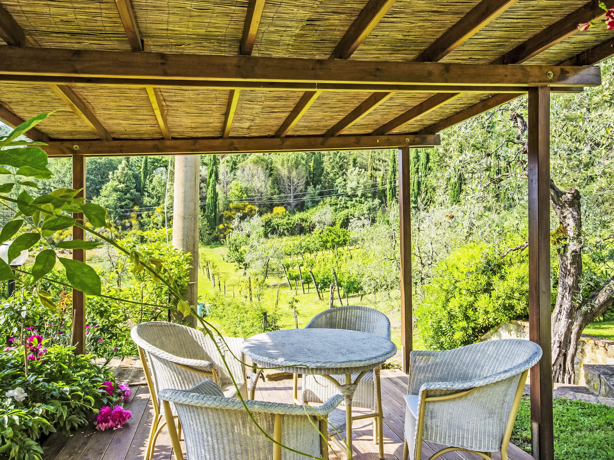Poggio a Vico 3 km from Rufina: Stone property, consisting of five apartments three of which are available to owners and two used for touristic rental. Country house 350 m a.s.l., renovated, surrounded by trees and meadows. 2 apartments in the property. 3 km from the centre of Rufina, 28 km from the centre of Firenze, in a sunny position on top of a hill, 39 km from the lake, in the countryside. For shared use: park 3 ha, garden 1 ha (fenced), swimming pool (6 x 12 m, depth 100 - 200 cm, seasonal availability: 03.May. - 20.Sep.). Terrace, garden furniture, barbecue (swing). In the complex: WiFi (all included), heating to be paid on the spot, heating available only from 01.Nov. - 07.Apr.. Motor access to the house (1 km via unmade road). Parking at the house. Shop 3 km, grocery 3 km, restaurant 3 km, bus stop 1.5 km, railway station "Rufina" 3 km, bathing lake "Lago di Bilancino" 39 km. Golf course (18 hole) 25 km, tennis 3 km, riding stable 15 km. Nearby attractions: Vicchio 18 km, Fiesole 25 km, Impruneta 36 km, San Casciano in Val di Pesa 40 km, Greve in Chianti 45 km. Please note: the owner lives on the same property.