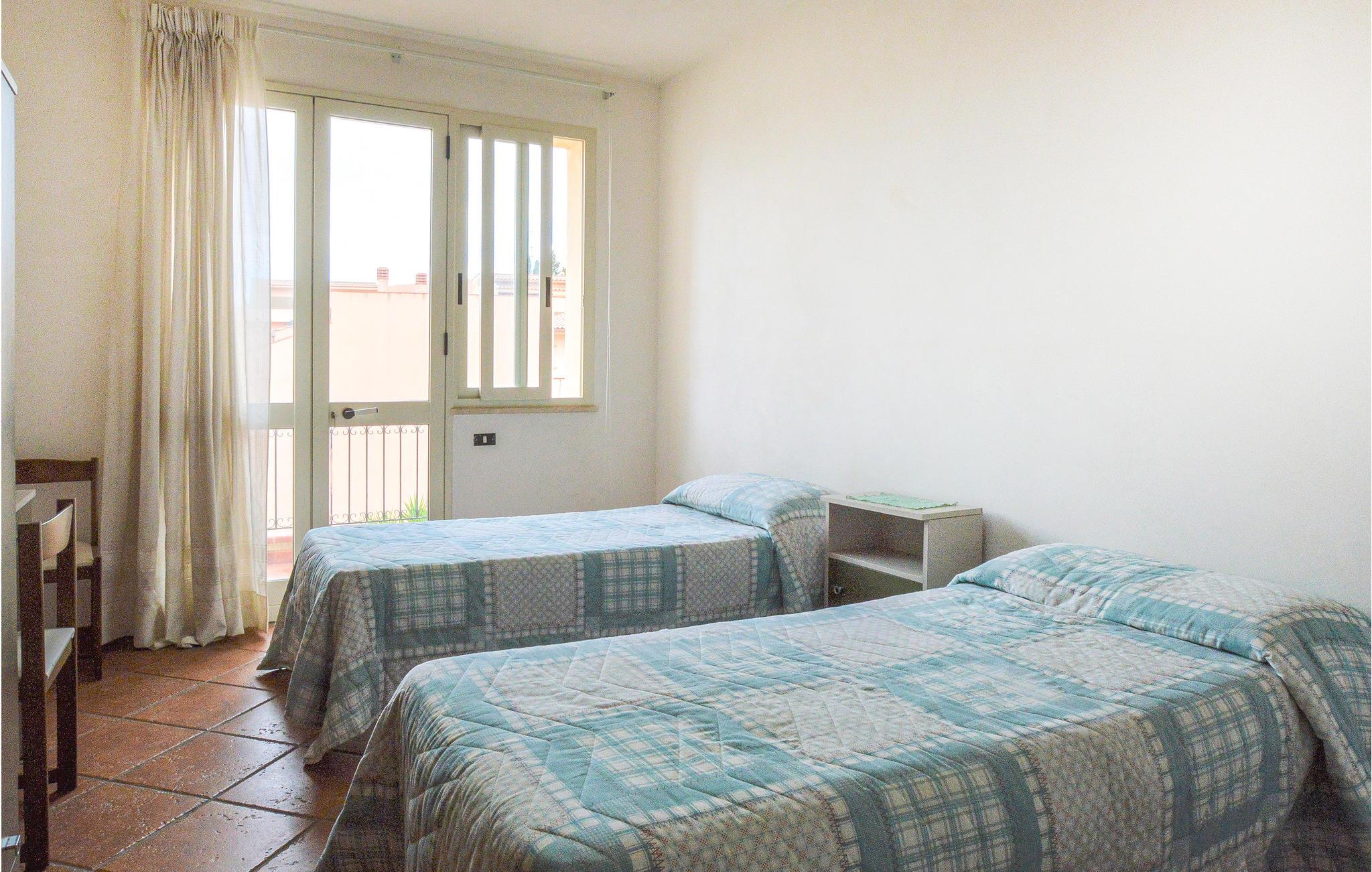 Lejligheden ligger på anden sal i en bygning i et roligt område og er udstyret med WiFi og aircondition. Lejligheden har to soveværelser, det ene med en dobbeltseng og det andet med to enkeltsenge og en sovesofa i stuen.
