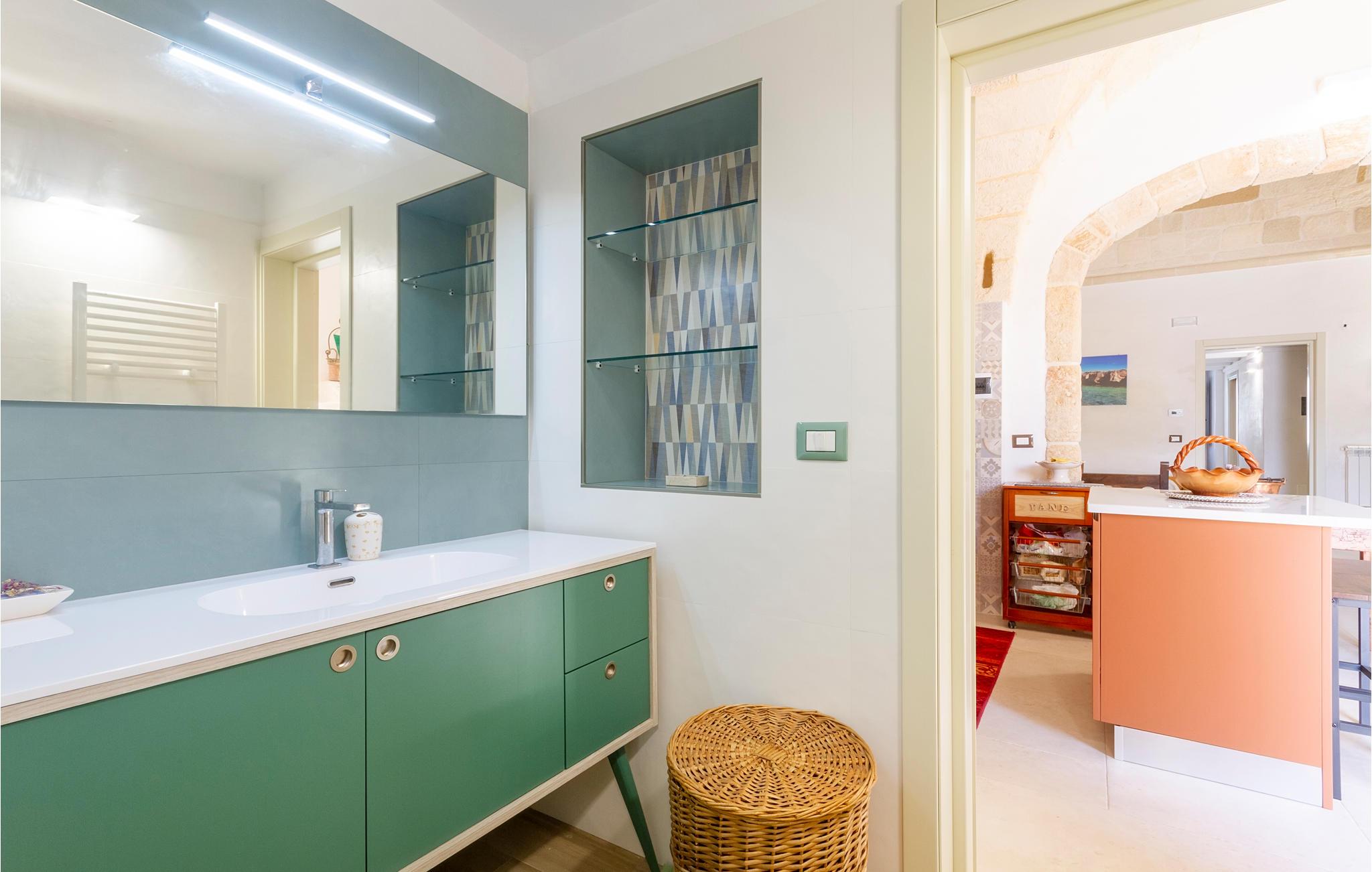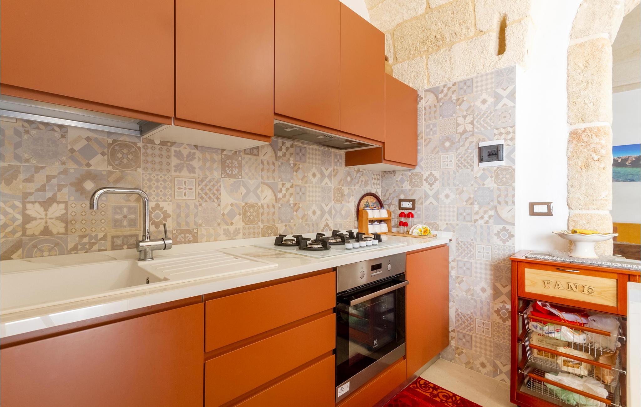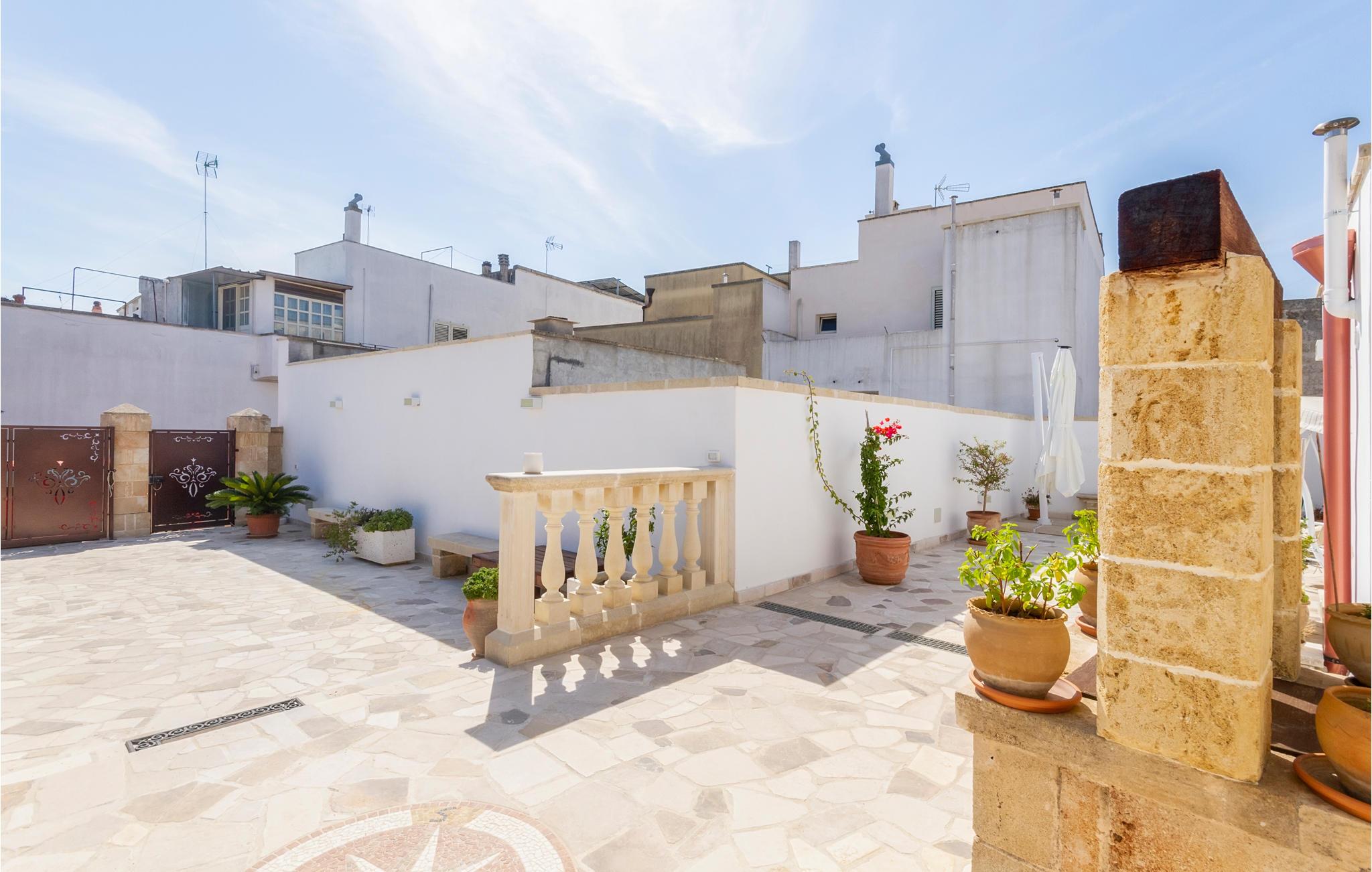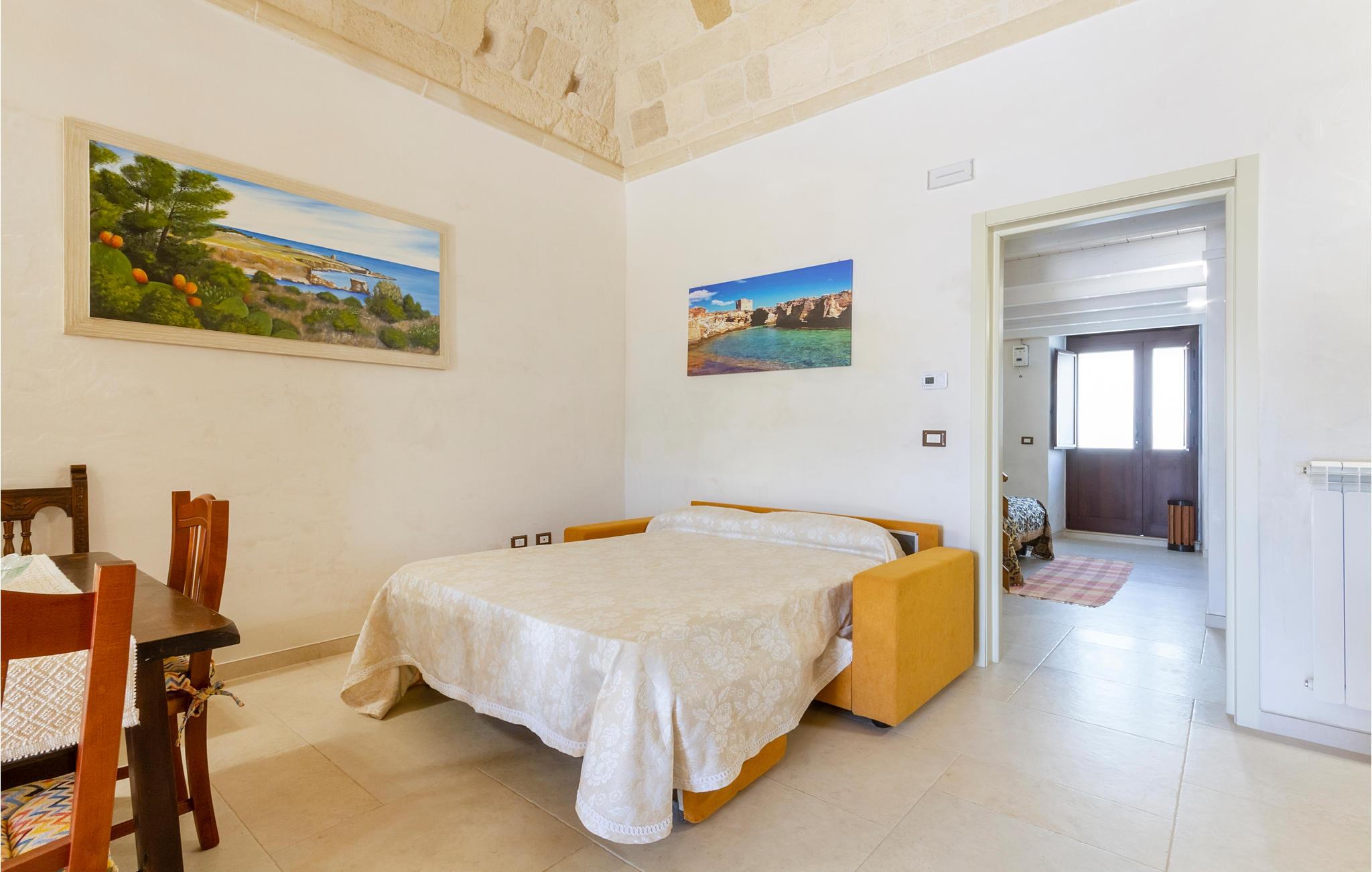 Dette særlige feriehus byder dig velkommen kun få kilometer fra havet. Glæd dig til en fantastisk ferie med din familie eller din elskede i dette smukke stenhus med hvælvede lofter og et åbent boligkoncept. Nyd den åbne kommunikation mellem køkken, spisestue og opholdsstue, som flyder ind i hinanden. En indhegnet gårdhave med palmer, træer og klinkegulve inviterer dig til at slappe af udendørs og nyde solen. I bil kan du hurtigt nå strandene og kysten ved Santa Cesarea Terme. Nyd mange timer på stranden og i havet og nyd det krystalklare hav. Du kan også besøge grottesystemet Grotta Zinzulusa og opdage de farverige klippeformationer og det mangfoldige havliv, mens du snorkler. Oplev en uforglemmelig ferie i Puglia!