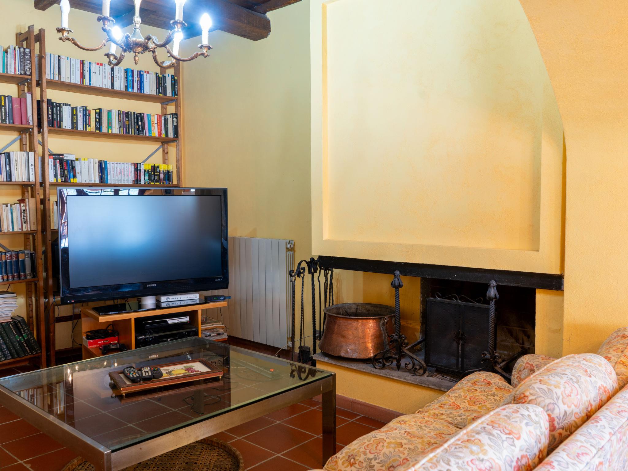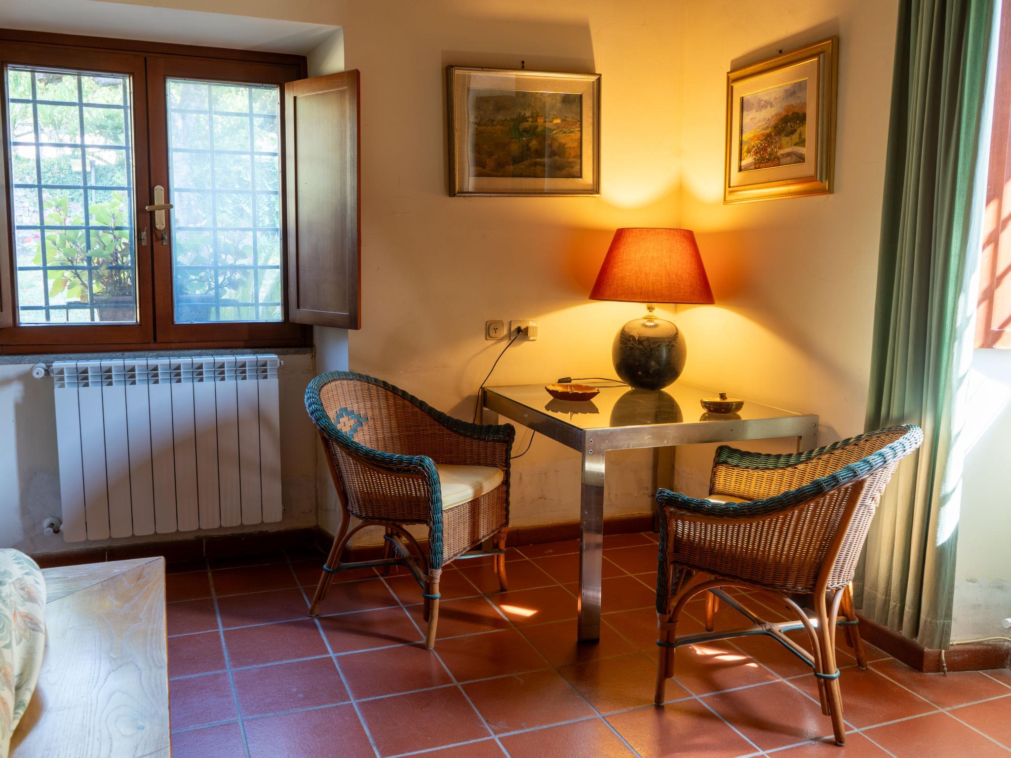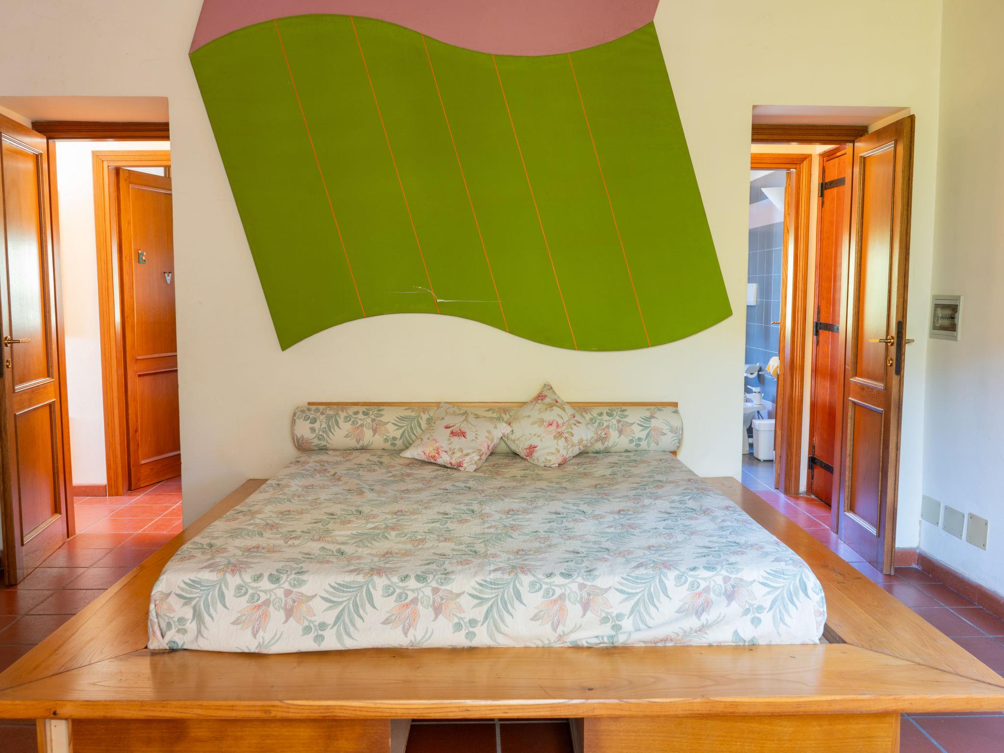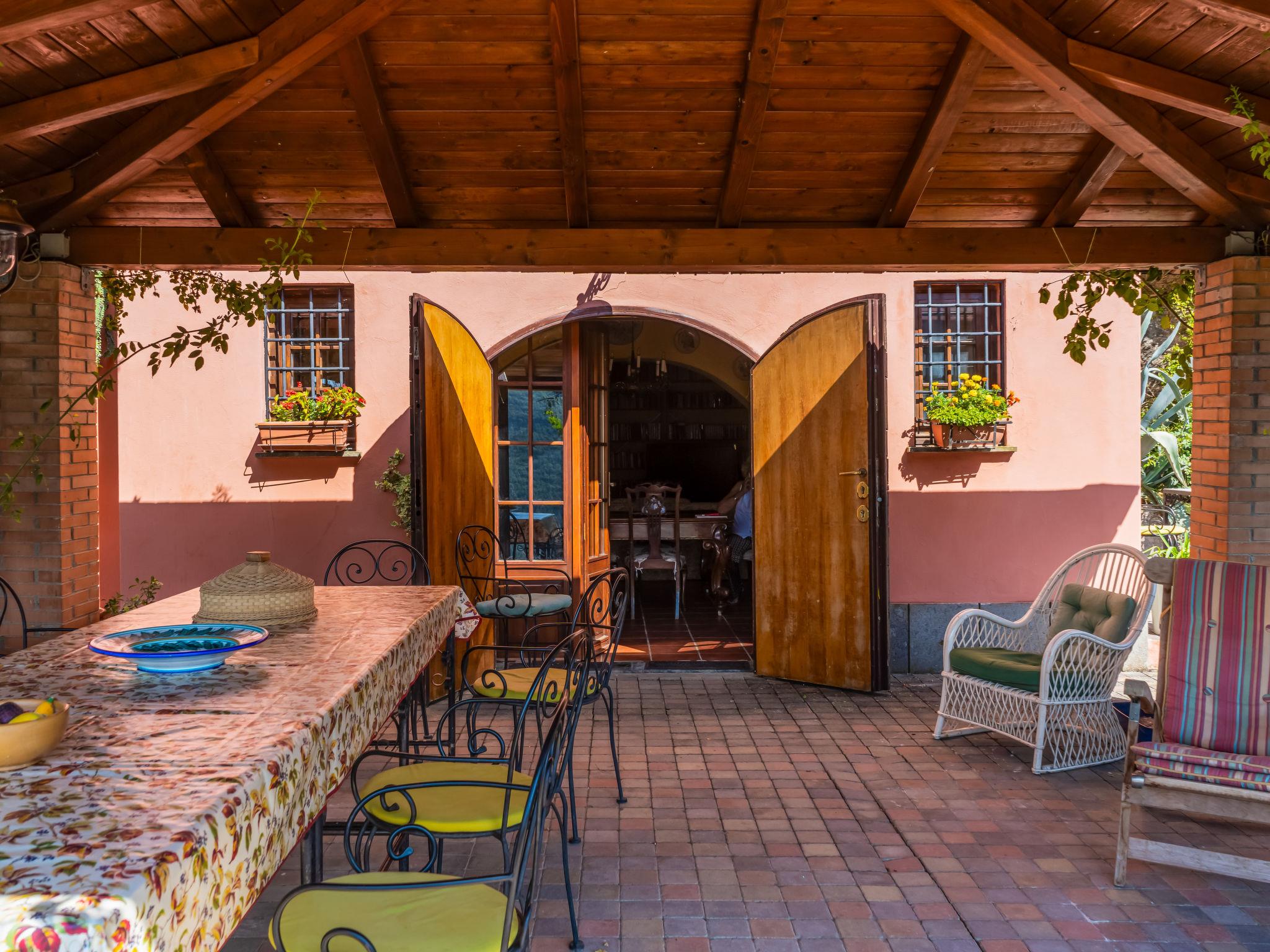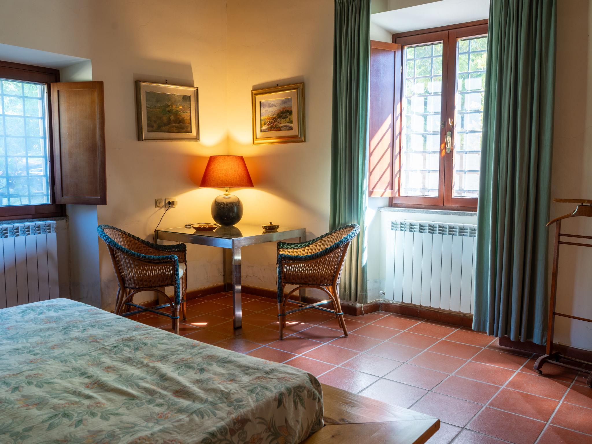 "Farfa", 6-room villa 250 m2 on 2 levels. Open dining room. Exit to the garden, pergola. Open living room with open-hearth fireplace, TV and flat screen. Exit to the garden, to the loggia. Kitchen (4 hot plates, oven, dishwasher, microwave, freezer, electric coffee machine) with dining table. Upper floor: 1 double bedroom with shower/bidet/WC. 2 rooms, each room with 1 x 2 bunk beds. 1 double bedroom. 2 showers/bidet/WC. Heating, gas heating (extra). Panoramic view of the valley. Facilities: washing machine, iron, mosquito net. Internet (WiFi). Please note: non-smokers only. IT057063C23T42I23A
