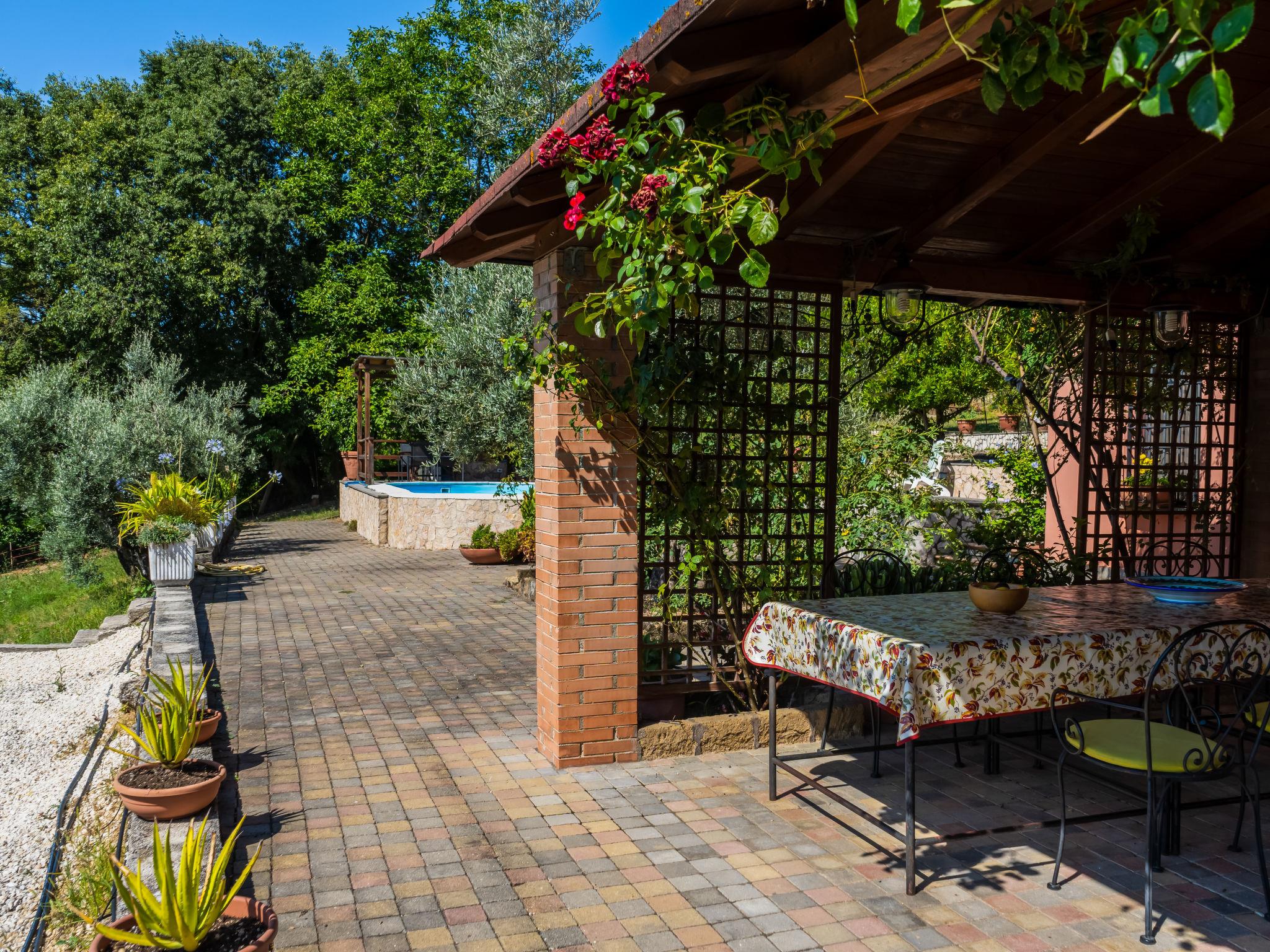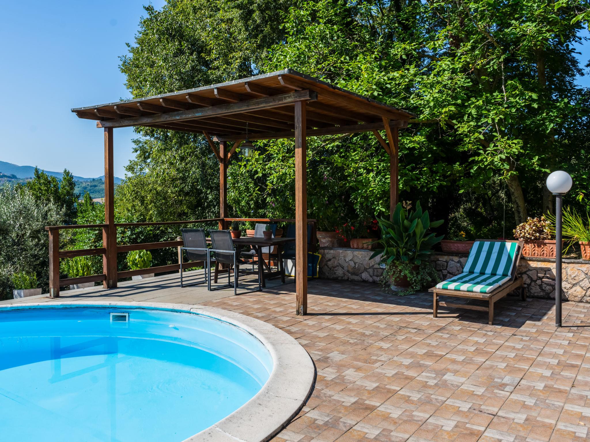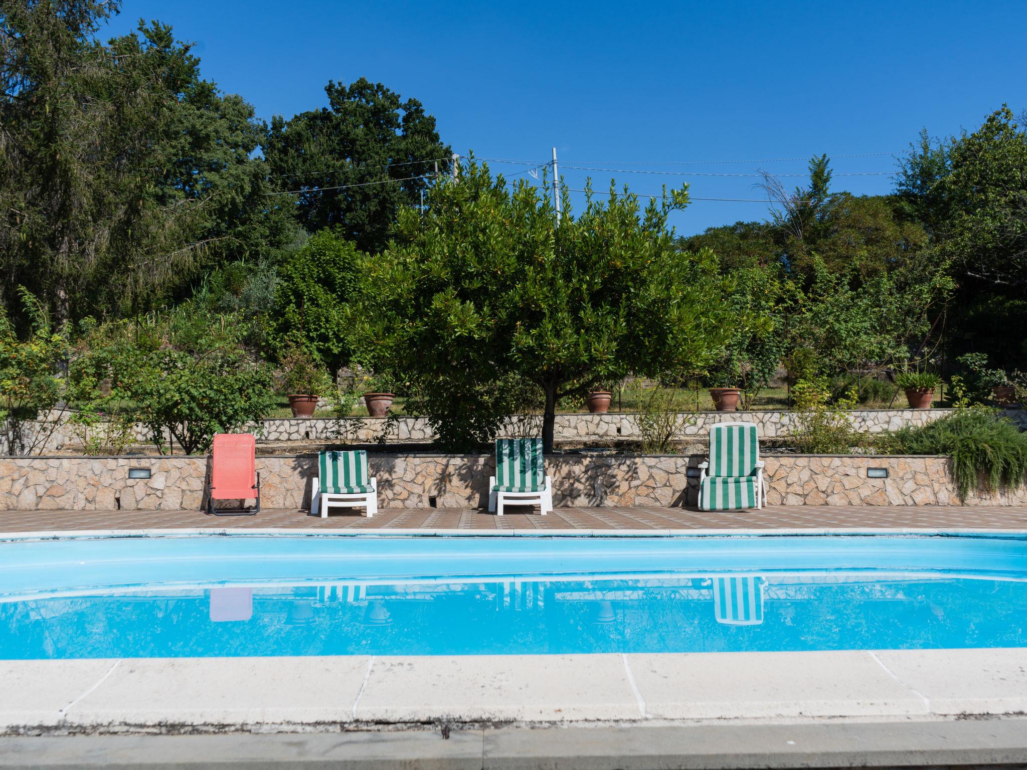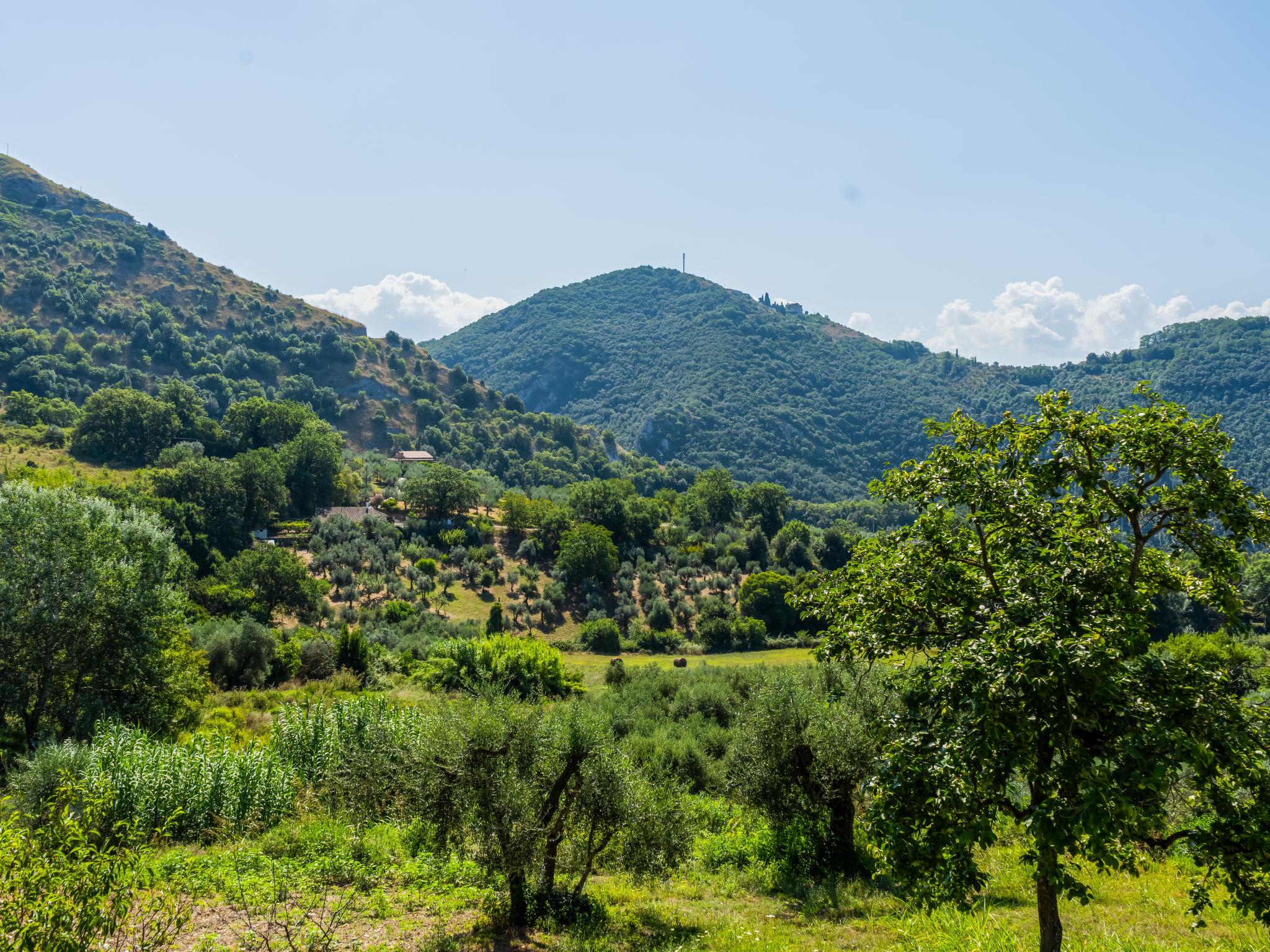 Cosy, comfortable villa "Farfa", 400 m a.s.l., 2 storeys, detached, built in 1990, renovated in 2007, surrounded by trees and fields. 3 km from the centre of Salisano, 6 km from the centre of Poggio Mirteto, 8 km from the centre of Castel Nuovo Farfa, in a quiet position. Private: park 2'000 m2, swimming pool (10 x 5 m, depth 150 cm, seasonal availability: 01.Jun. - 11.Sep.). Outdoor shower, patio, garden furniture, barbecue, children's playground, parking on the premises. Grocery 6 km, supermarket 6 km, restaurant 6 km, bar 6 km, bus stop 600 m, railway station "Poggio Mirteto" 6 km. Nearby attractions: Fara in Sabina 13 km, Rieti 33 km, Cascata Delle Marmore 40 km, Roma 55 km. Please note: car recommended. The owner does not accept any youth groups. Loading and unloading of baggage is possible at the holiday house. Motorway 25 km from the property. Railway line 3 km from the property. Airfield 72 km from the property.