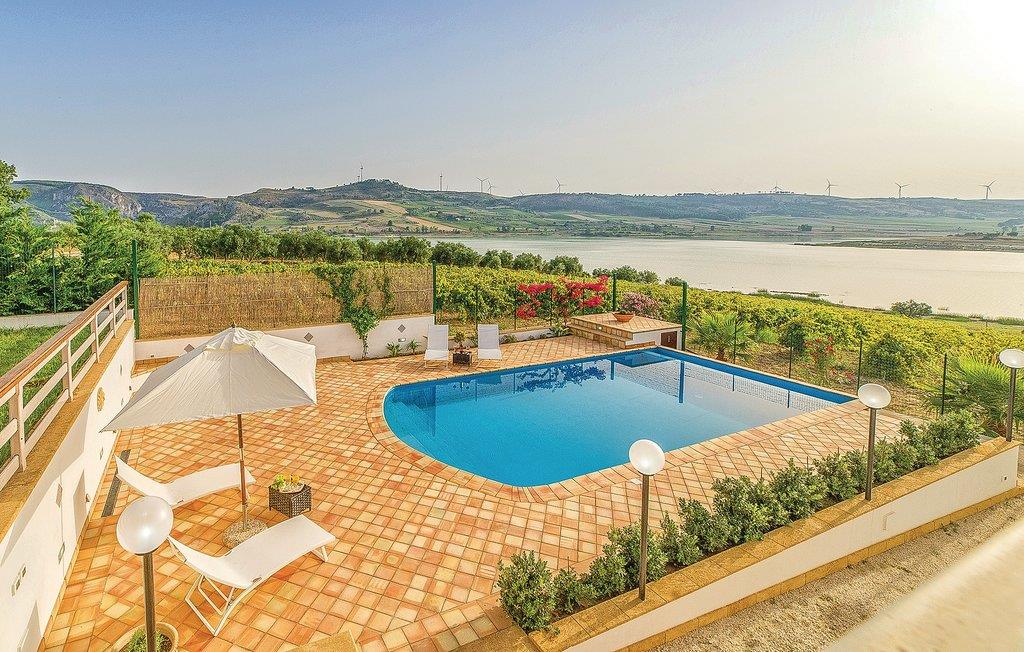 Feriehus med privat pool, tre km fra Sambuca di Sicilia, som er en af de skønneste landsbyer i Italien. Ikke langt fra bredderne af Lago Arancio - en ren oase af fred og ro. Floden Carboj har skabet en naturlig slugt – så her er både fra poolen og fra husets indre en udsædvanlig udsigt over søen. Huset ligger tre km fra Sambuca di Sicilia, en af Italiens skønneste landsbyer. Det arkæologiske museum på bjerget Monte Adrone ligger kun få kilometer fra landsbyen og er bestemt et besøg værd. På egnens forskellige vindgodser kan I få smagsprøver af deres typiske produktion, fx olie, friskbagt brød og vin – og købe det med hjem I godt kan lide. Til Menfis strande er der ca. 20 km.