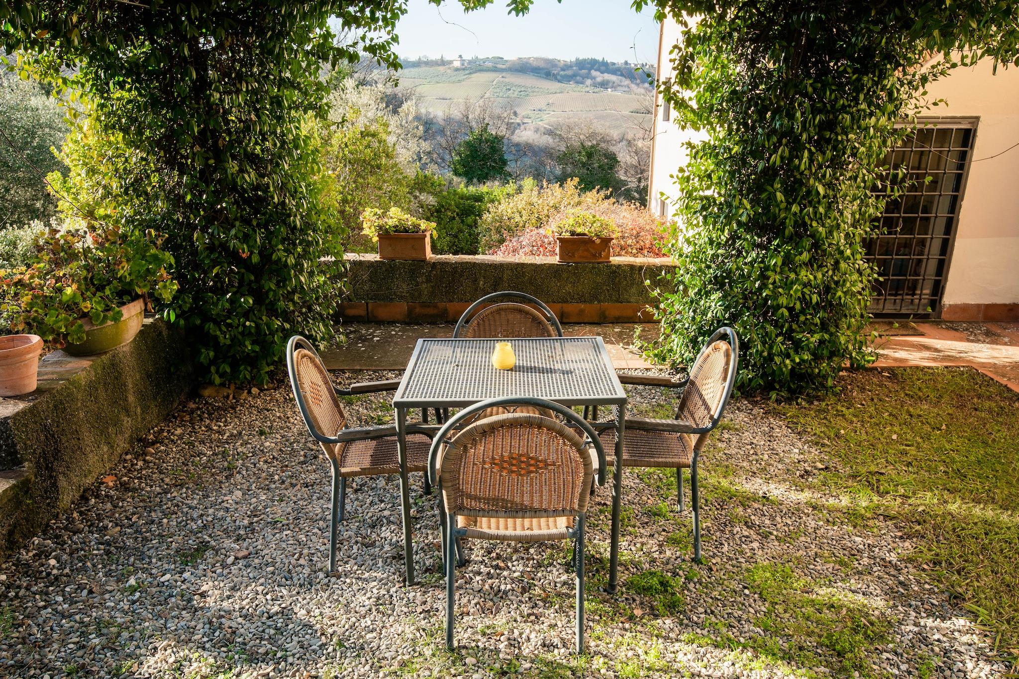Et roligt ophold blandt toscanske vinmarker I de fredfyldte bakker i San Casciano in Val di Pesa er dette charmerende feriehus din port til hjertet af Toscana. Beliggende på en malerisk vingård, bydes gæsterne velkommen med en flaske husets vin og løftet om en autentisk oplevelse. Den fælles swimmingpool inviterer dig til at slappe af, mens de omkringliggende haver, terrassen og legeområdet tilbyder plads til både afslapning og familiesjov. Børnene kan nyde udendørs legeredskaberne, og små detaljer som en høj stol gør det familievenligt. En guidet tur gennem vinmarkerne og det historiske San Lorenzo-kapel på stedet beriger dit ophold med et strejf af historie og kultur. I hjertet af Toscanas skatte Denne beliggenhed er ideel til at udforske Toscanas ikoniske byer. Firenze, renæssancens juvel, ligger lidt over 25 km væk; Siena og San Gimignano tilbyder middelalderlig charme og slående arkitektur inden for en times kørsel. Tættere på, Pieve di San Pancrazio og Borgo Luccardo inviterer til fredelige vandreture på landet og glimt af romansk og landligt toscansk liv. For familier tilføjer Castelvecchios eventyrpark, kun 2 km væk, spænding med sine overlevelsesaktiviteter for børn. Det omkringliggende landskab er perfekt til gåture, cykling eller blot at nyde udsigten over vinmarkerne. Nyd Toscanas kulinariske sjæl Kun 1 km fra huset serverer en restaurant ved vingården lækker lokal mad hver aften - ofte med særlige tilbud knyttet til ejendommen. I San Casciano og nærliggende byer finder du en række restauranter, der tilbyder traditionelle toscanske retter til rimelige priser, håndplukket fra en kurateret liste, der er tilgængelig i din lejlighed.