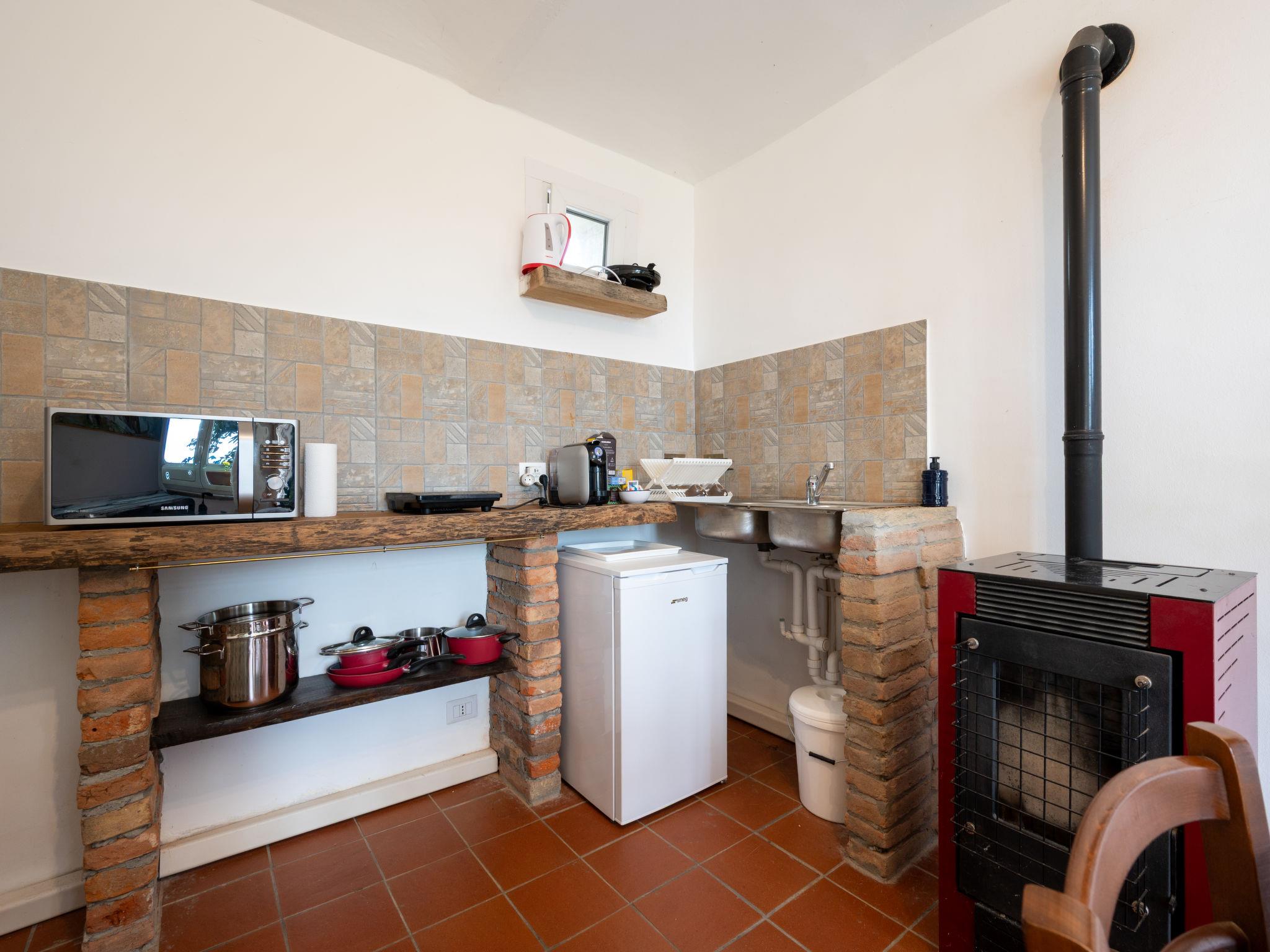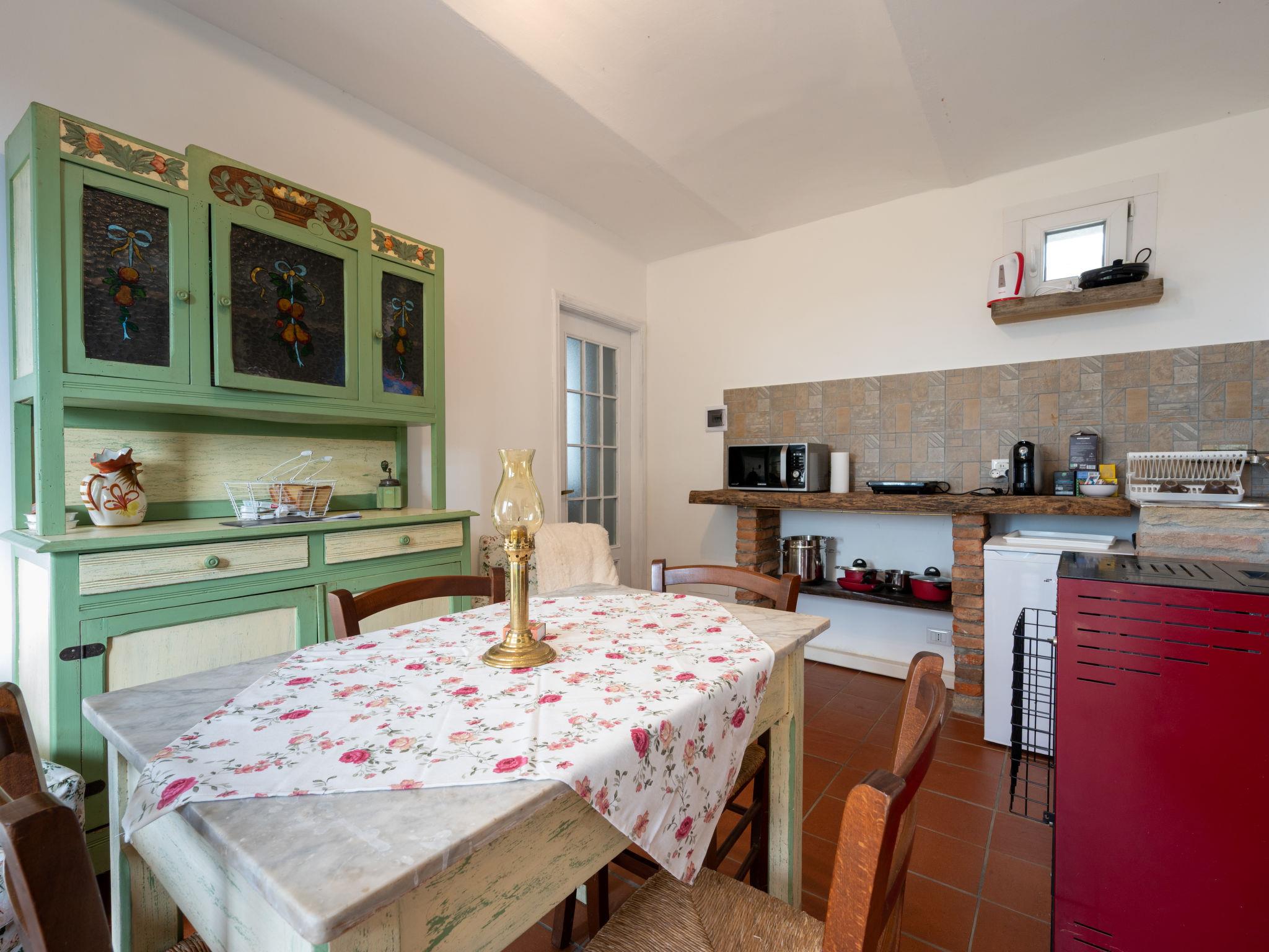 "Casetta di Agnese", 2-room house 40 m2. Rustic and cosy furnishings: 1 double bedroom. Kitchen-/living room (2 induction hot plates, toaster, kettle, microwave, electric coffee machine) with Scandinavian wood stove and TV. Exit to the garden. Shower/WC. Heating, air-conditioning. Heating available only from 01.10. to 15.04. Natural stone floors. Large terrace 20 m2, large patio. Terrace furniture, barbecue (portable), deck chairs (2). Beautiful panoramic view of the countryside. Facilities: baby cot for up to 2 year olds. Internet (WiFi, free). Parking, garage on the property. E-charging station. Please note: maximum 1 pet/ dog allowed. Smoke alarm, fire extinguisher. IT005097C2ENGPH87D