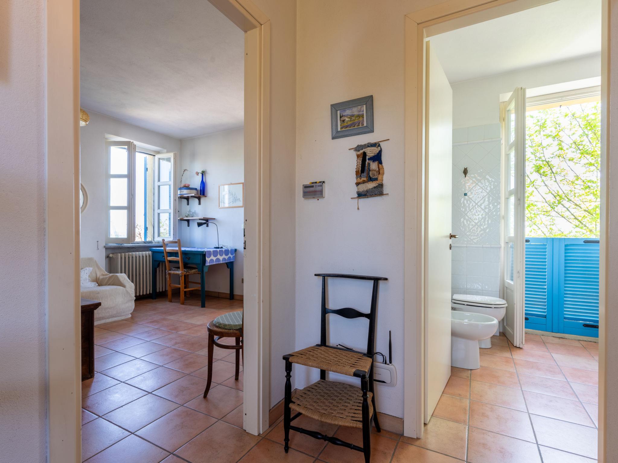 Country house "Il Carroccio", detached, surrounded by meadows and vineyards. 2 apartments in the residence. In the district of Torrazzo 2 km from the centre of San Damiano d'Asti, 15 km from the centre of Asti, 25 km from the centre of Alba, on top of a hill, in the countryside. For shared use: property 3'000 m2, garden with plants, meadow, swimming pool (above ground) (10 x 5 m, depth 130 cm, seasonal availability: 07.Jun. - 15.Sep.). Shower/WC in the pool area, patio, arbour, pool maintenance by the owner/gardener, parking at the house on the premises. Supermarket 2 km, bus stop 2 km, railway station "Asti" 15 km, outdoor swimming pool 2 km. Golf course (9 hole) 16 km. The owner does not accept any youth groups. Residence with electric gates. Obligation to wear bathing caps.