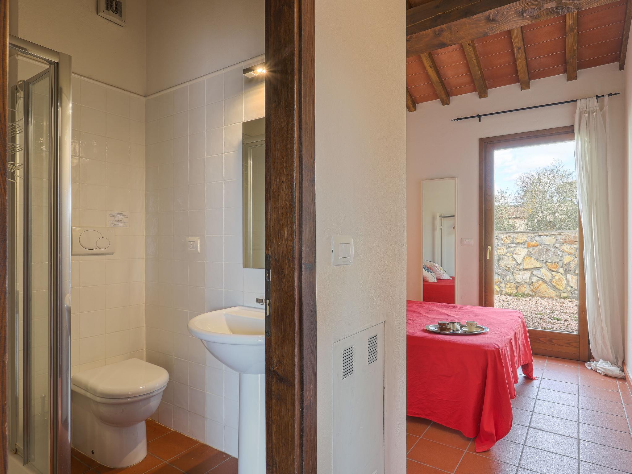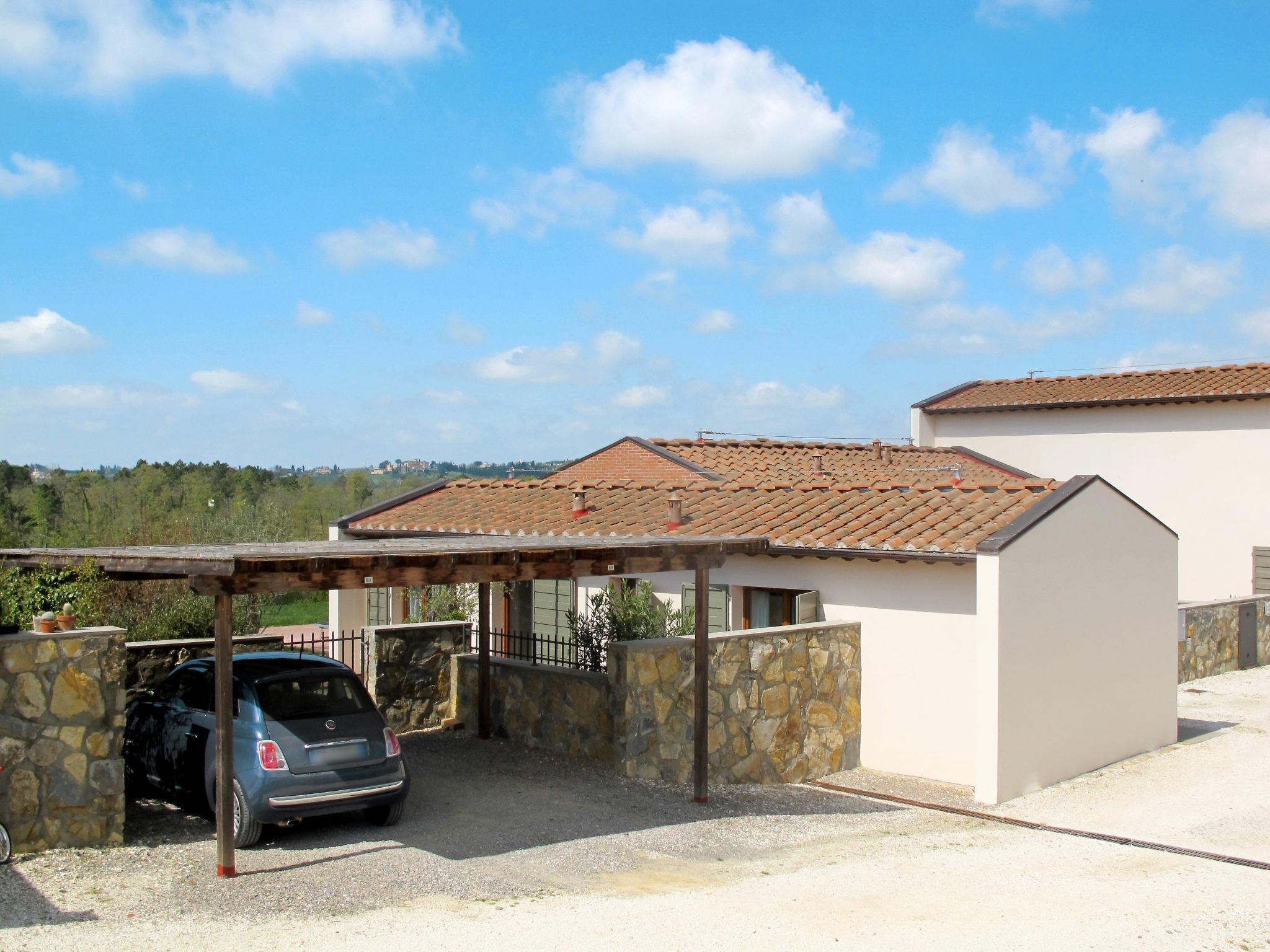 Beautiful residence "Casa Fitzy", built in 2004, surrounded by trees and vineyards. 20 houses in the residence. 40 apartments in the residence. 2 km from the centre of San Donato in Poggio, 6 km from the centre of Tavarnelle, in a sunny, elevated position. For shared use: property 20'000 m2 (fenced), meadow, swimming pool fenced (20 x 10 m, depth 120 cm, seasonal availability: 20.May. - 30.Sep. pool opening hours: 08:00-23:00). WC in the pool area, shower/WC in the pool area, outdoor shower, roofed, parking (for 2 cars) on the premises. Shop 2 km, supermarket 2 km, shopping centre 2 km, restaurant 200 m, bus stop 100 m, railway station "Poggibonsi" 13 km, sandy beach "Cecina" 90 km. Golf course (18 hole) 35 km, walking paths from the house 100 m. Nearby attractions: San Gimignano 25 km, Firenze 25 km, Greve in Chianti 19 km, Siena 45 km. Object suitable for 5 adults + 1 child groups of teenagers on request only. Residence with electric gates.