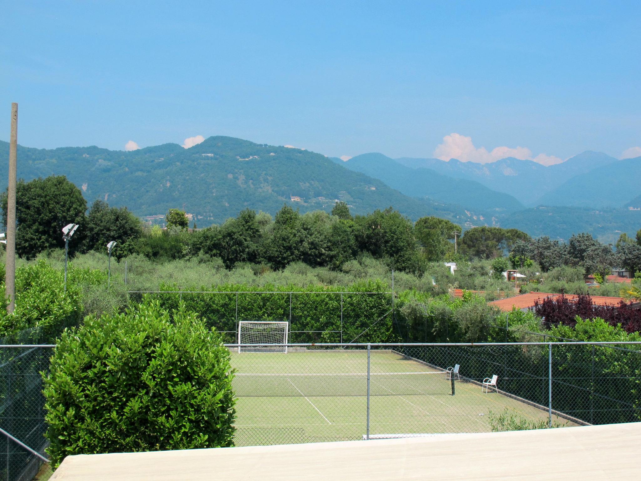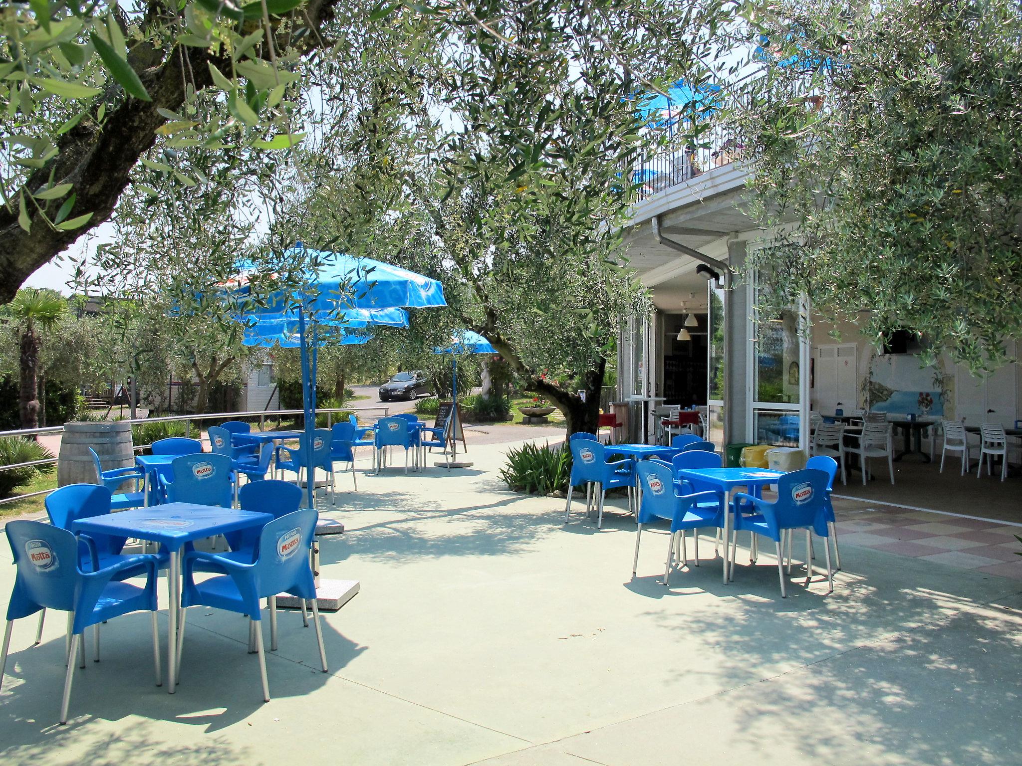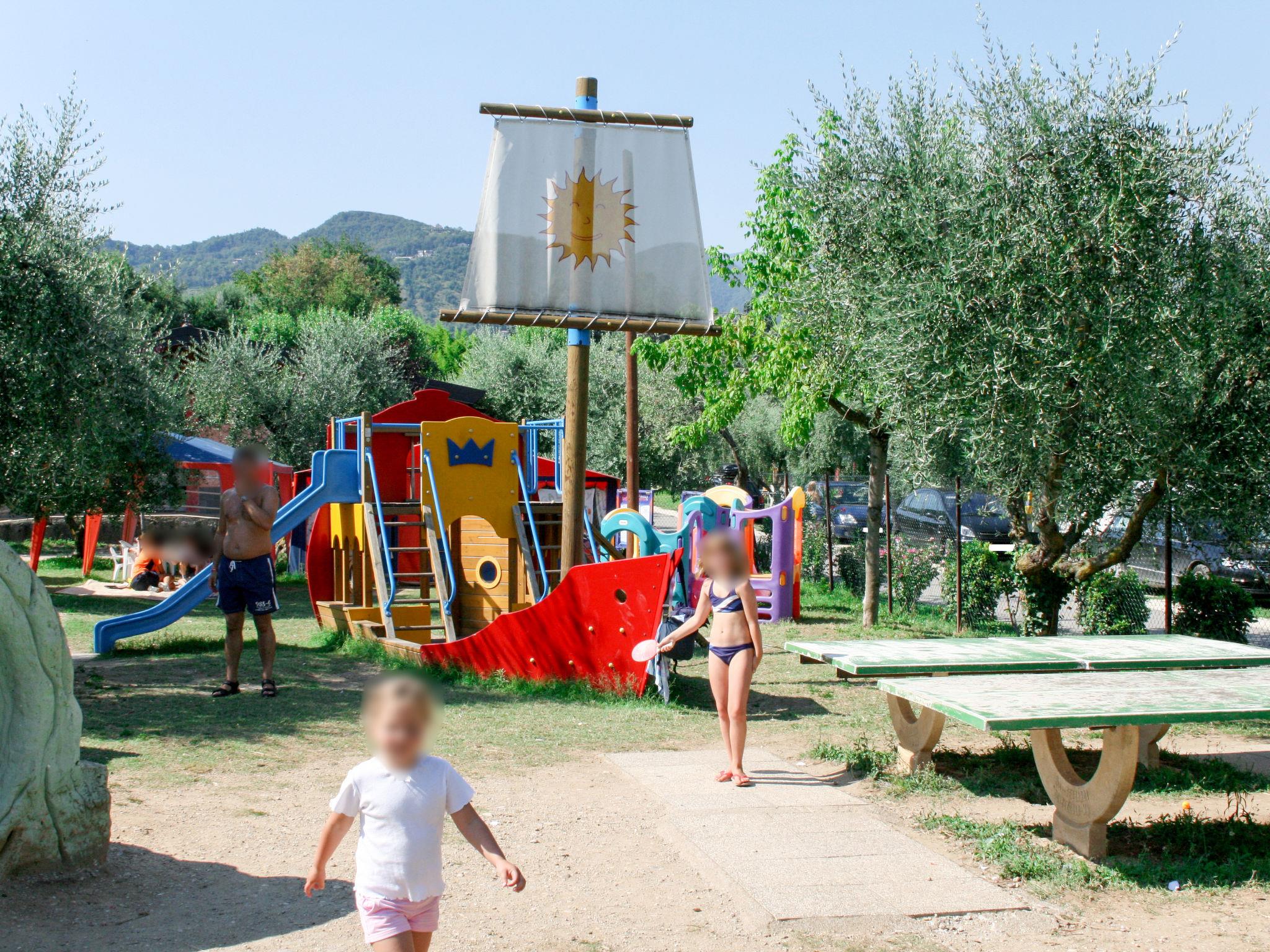 Large, child friendly holiday village "Eden". 3 km from the centre of San Felice del Benaco, 600 m from the centre of Portese, on top of a hill, 500 m from the lake, 500 m from the beach, road to cross. For shared use: property 66'000 m2 (fenced), terraced garden with plants and trees, 2 swimming pools (seasonal availability: 25.Apr. - 27.Sep.). Children's pool, slide, outdoor shower, tennis (extra), table tennis, children's playground. In the complex: reception, restaurant, bar, WiFi (extra). Shopping facilities, washing machine, tumble dryer (for shared use, extra), bicycle rental. Parking at the house, public parking on the road extra. Supermarket 3 km, bus stop 850 m, pebble beach 500 m. Marina 600 m, golf course (9 hole) 5 km. The owner does not accept any youth groups. Obligation to wear bathing caps.
