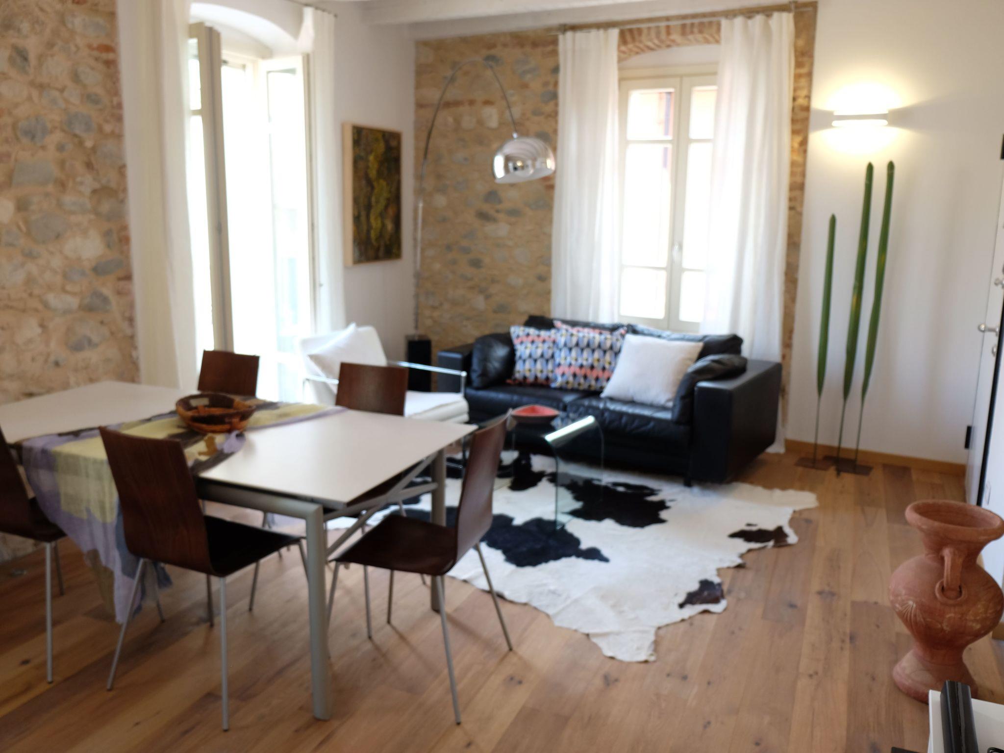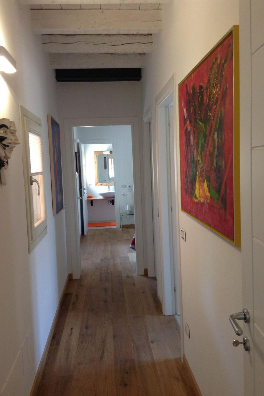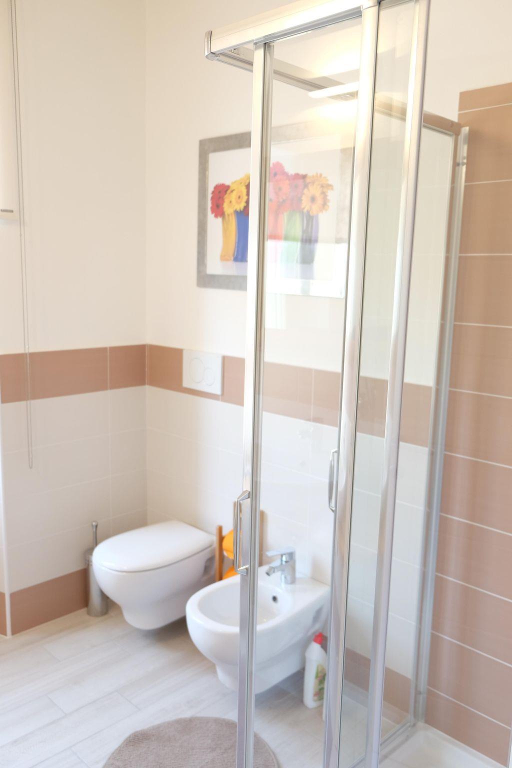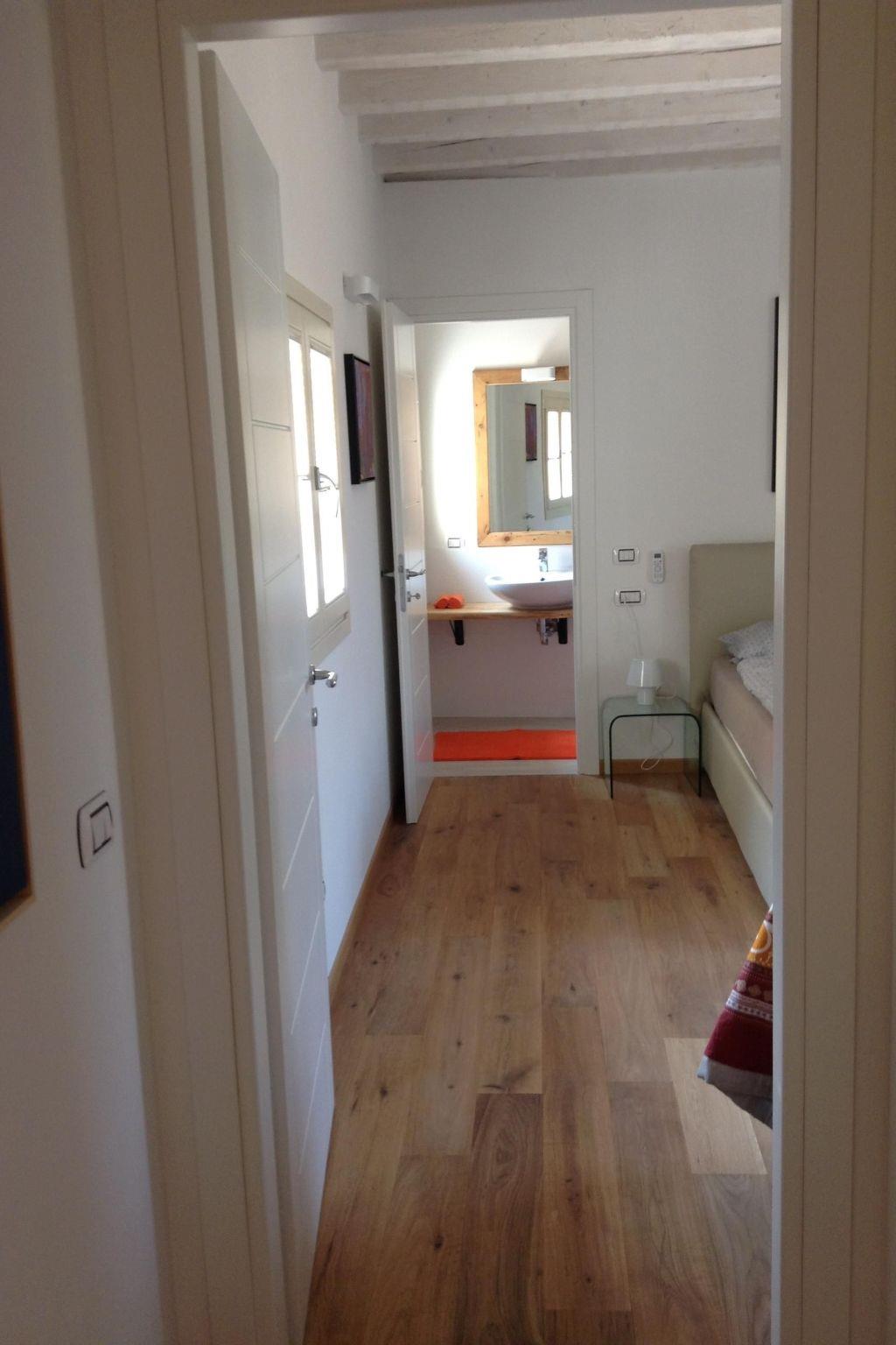 The 92m² holiday flat has been tastefully furnished to a very high standard. It is equipped with all the amenities to make a longer holiday as pleasant as possible. The entire flat has an oak plank floor. Old stone walls and wooden ceilings have been integrated into the modern flat, giving it a very special charm. The entire flat has windows or balconies overlooking the piazza and the inner courtyard. The flat welcomes you with a large open-plan living/dining room with a modern, fully equipped kitchen and a small balcony that looks directly onto the "piazza". The first bedroom has a double bed, wardrobe and a balcony that leads to the inner courtyard. The bathroom is equipped with a shower, WC, bidet and washbasin and has a window overlooking the piazza. The second bedroom has a double bed, wardrobe and bathroom with shower, WC, bidet and washbasin. In the corridor there is a storage room where the washing machine, hoover and all necessary cleaning materials are stored. Air conditioning in high summer and underfloor heating in colder seasons are an essential comfort and make a stay very pleasant all year round. Wi-Fi is available throughout the flat. There is also a washing machine, dishwasher, TV, radio, Nespresso coffee machine and crockery.
