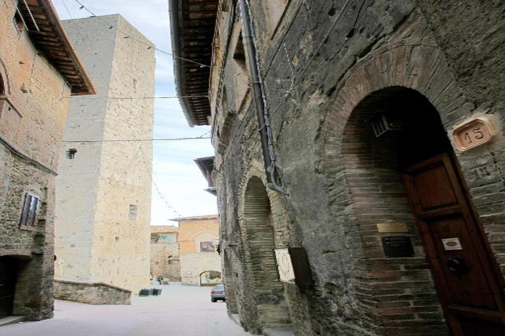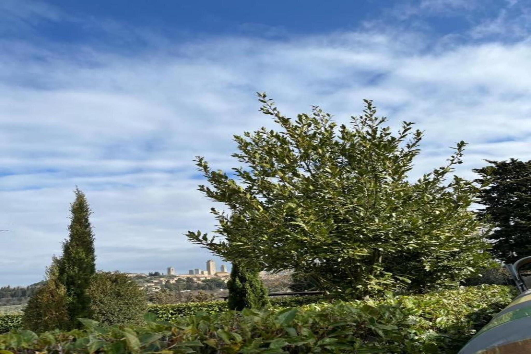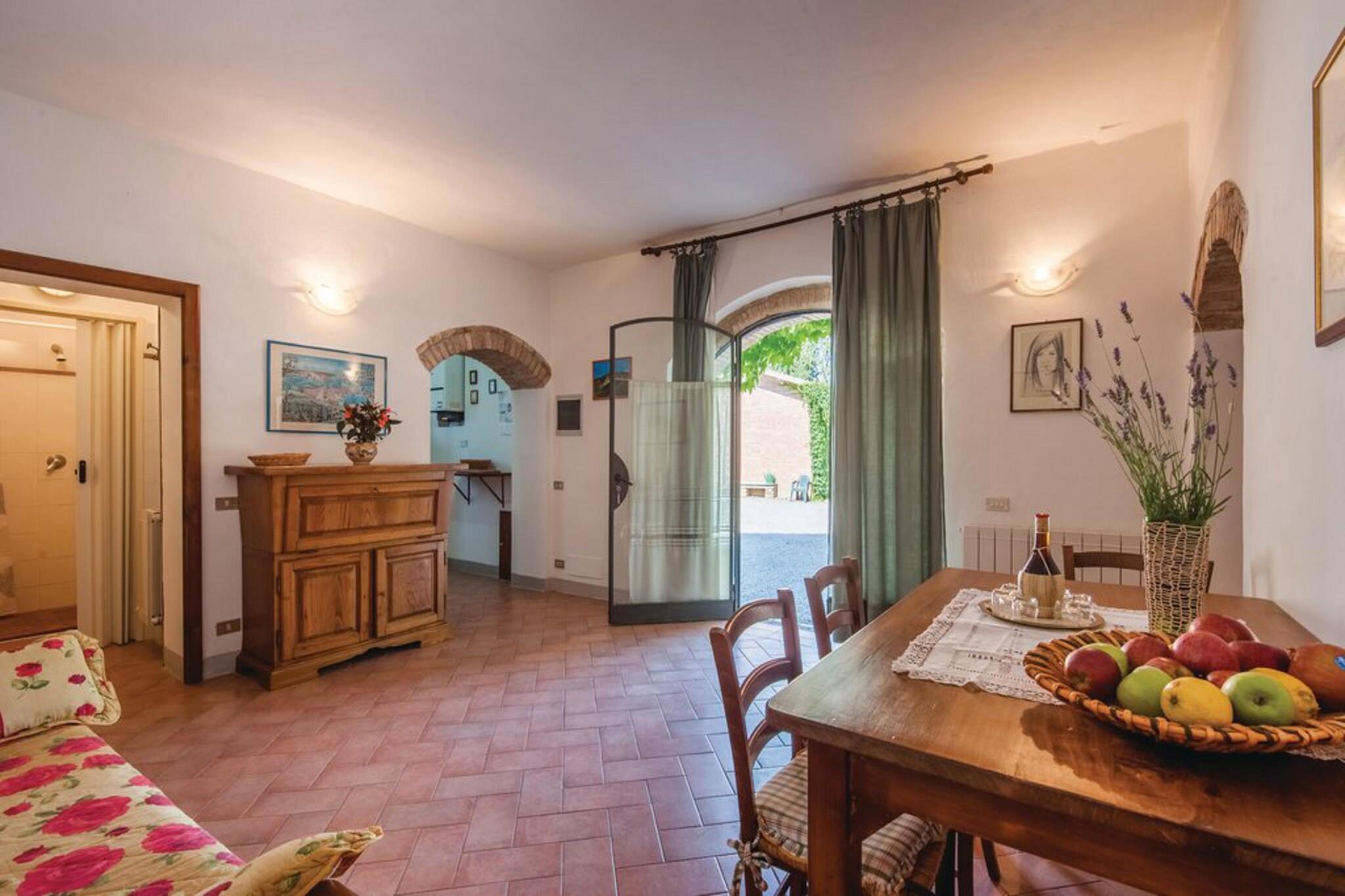Beliggende i de bølgende bakker i San Gimignano, er dette charmerende 1-værelses bondehus perfekt til en familie eller gruppe på 4. Omgivet af vinmarker og olivenlunde tilbyder det en fælles swimmingpool, en privat terrasse og både fælles og private haver – ideel til at nippe til Vernaccia-vin under den toscanske sol. De fredelige landskabelige omgivelser ligger kun 4 km fra butikker, restauranter og et dejligt lokalt bageri. Indenfor byder stuehuset på et hyggeligt opholdsrum med en dobbelt sovesofa, et veludstyret køkken og et soveværelse med rustik charme. Nyd en flot udsigt over det toscanske landskab fra dine vinduer, og drag fordel af vaskemaskinen for ekstra bekvemmelighed. En barneseng er til rådighed for de mindste, og 1 kæledyr er velkommen gratis. Udforsk nærliggende ædelstene som Siena (30 km), Volterra (33 km) og Firenze (58 km) - en bil er afgørende for dagsture. Firenze Lufthavn ligger 59 km derfra. Uanset om du slapper af ved poolen eller nyder en have-picnic, tilbyder denne bondegård en perfekt blanding af komfort, tradition og toscansk skønhed.