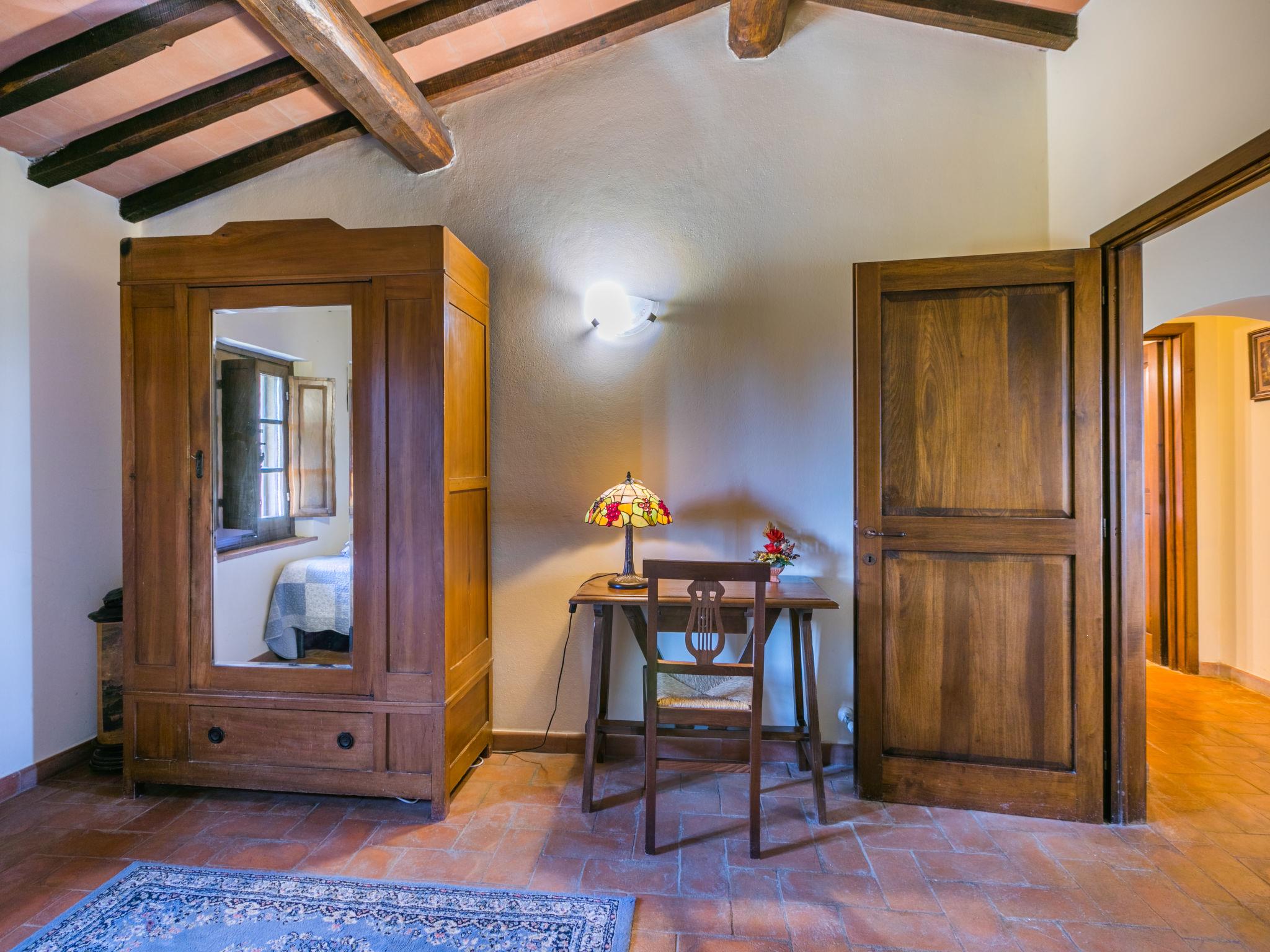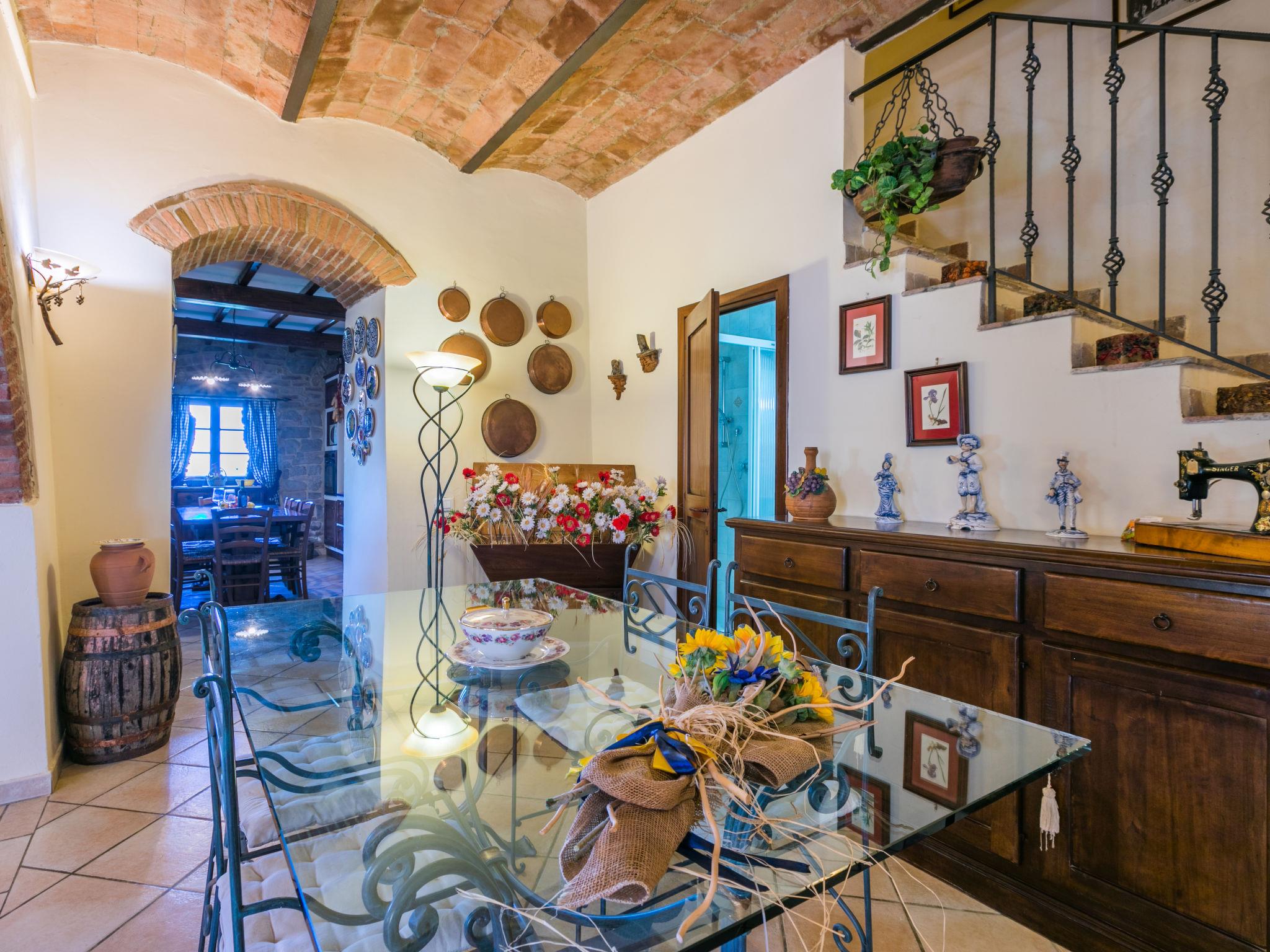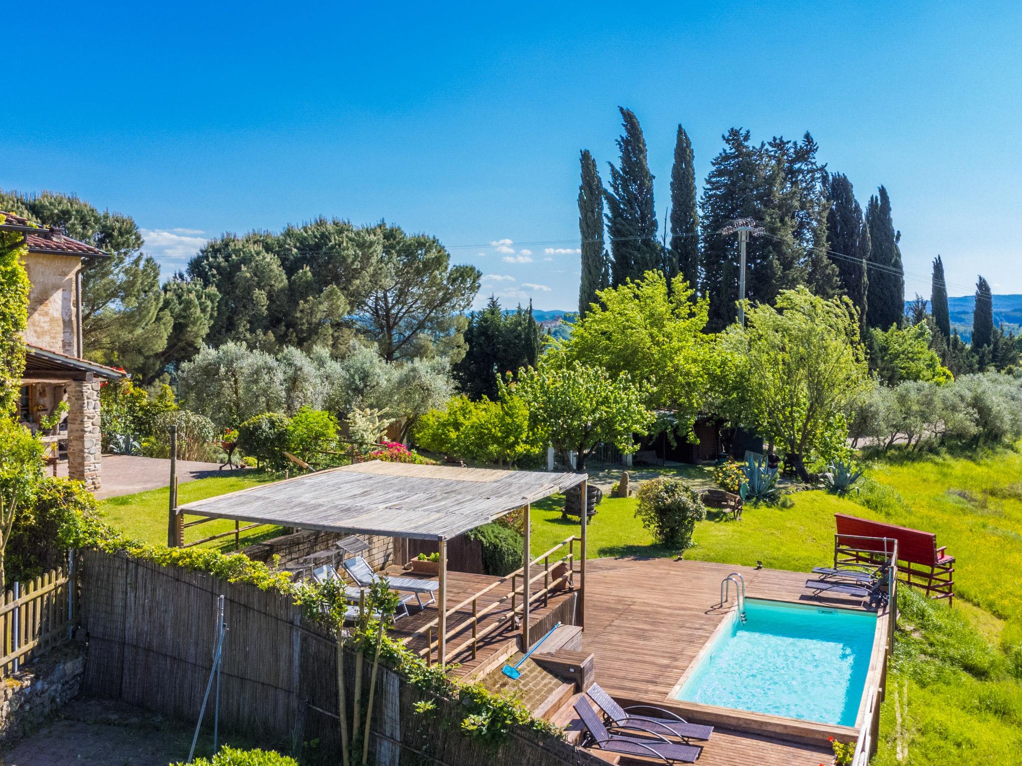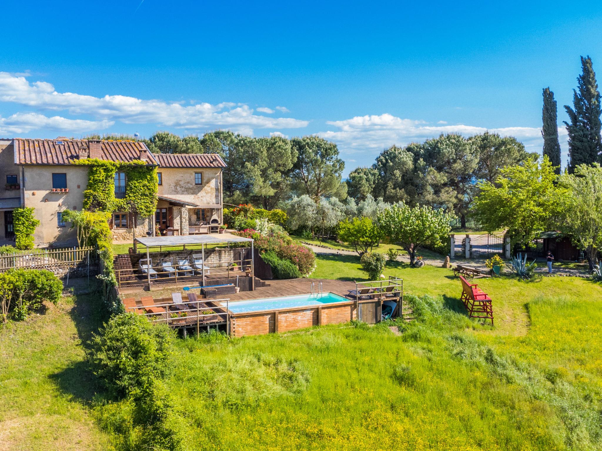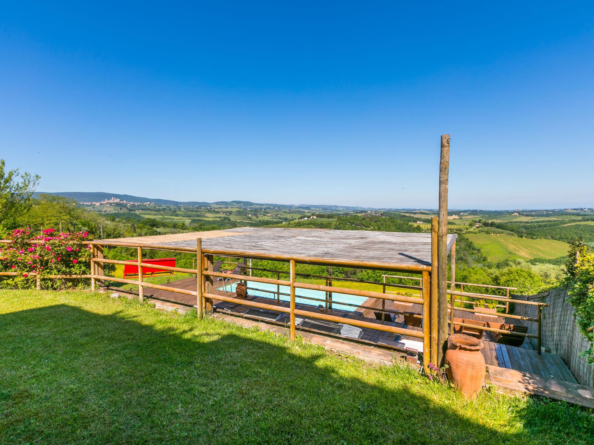 Casaglia 8 km from San Gimignano: Very beautiful, cosy country house "Podere San Lorenzo", semi-detached, renovated in 2005, surrounded by meadows, fields and vineyards. In the hamlet Casaglia. 8 km from the centre of San Gimignano, 8 km from the centre of Poggibonsi, 30 km from the centre of Siena, in a sunny, elevated position on a slope, 80 km from the sea, 80 km from the beach, in the countryside. Private: terraced garden, 2'000 m2 (fenced) with flowers and trees, natural garden, meadow, orchard, swimming pool (above ground) (6 x 3 m, depth 140 cm, seasonal availability: 01.May. - 10.Oct.). Outdoor shower, terrace, garden furniture, barbecue, pool maintenance by the owner/gardener. 2 km long motor access (via unmade road). Parking (for 3 cars) on the premises. Shop 5 km, grocery 5 km, supermarket 5 km, shopping centre 5 km, restaurant 500 m, bicycle rental 8 km, bus stop 6 km, railway station "Poggibonsi" 5 km, sandy beach "Cecina Mare" 80 km. Nearby attractions: Certaldo 16 km, Volterra 40 km, Firenze 60 km, Pisa 94 km. Please note: car recommended. Suitable for families. Object suitable for 8 adults groups of teenagers on request only.