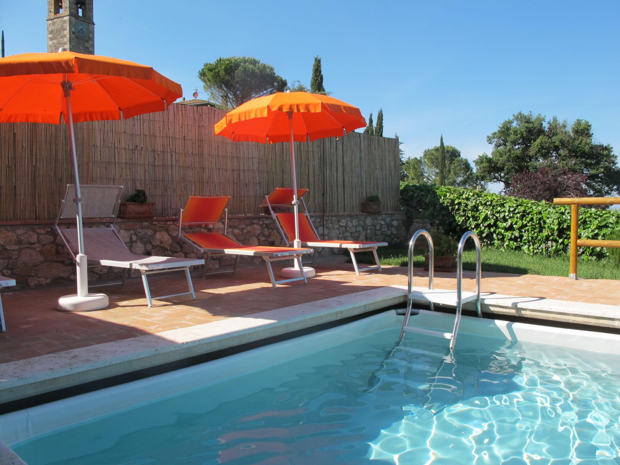 Very beautiful, comfortable house "Casa Alfredo", 2 storeys. In the hamlet Castel San Gimignano 13 km from the centre of San Gimignano, 11 km from the centre of Colle di Val D'Elsa, in a sunny position on a slope, in the residential district, 63 km from the sea. Private: well-kept terraced garden (fenced) with lawn and wildlife garden, swimming pool fenced (4 x 8 m, seasonal availability: 01.May. - 15.Oct.). Outdoor shower, patio, terrace, garden furniture, pool maintenance by the owner/gardener. Parking (for 3 cars) on the premises. Grocery 50 m, supermarket 11 km, restaurant 50 m, bar, bicycle rental 12 km, bus stop "Castel San Gimignano" 50 m, railway station "Colle di Val d'Elsa" 11 km, sandy beach "Cecina Mare" 63 km, indoor swimming pool 11 km. Tennis 11 km, indoor tennis centre 11 km, walking paths from the house 100 m. Nearby attractions: Volterra 15 km, Certaldo 30 km, Siena 40 km, Firenze 65 km, Pisa 80 km. Please note: baby equipment (included). Groups of teenagers on request only. The owner lives on the same property.