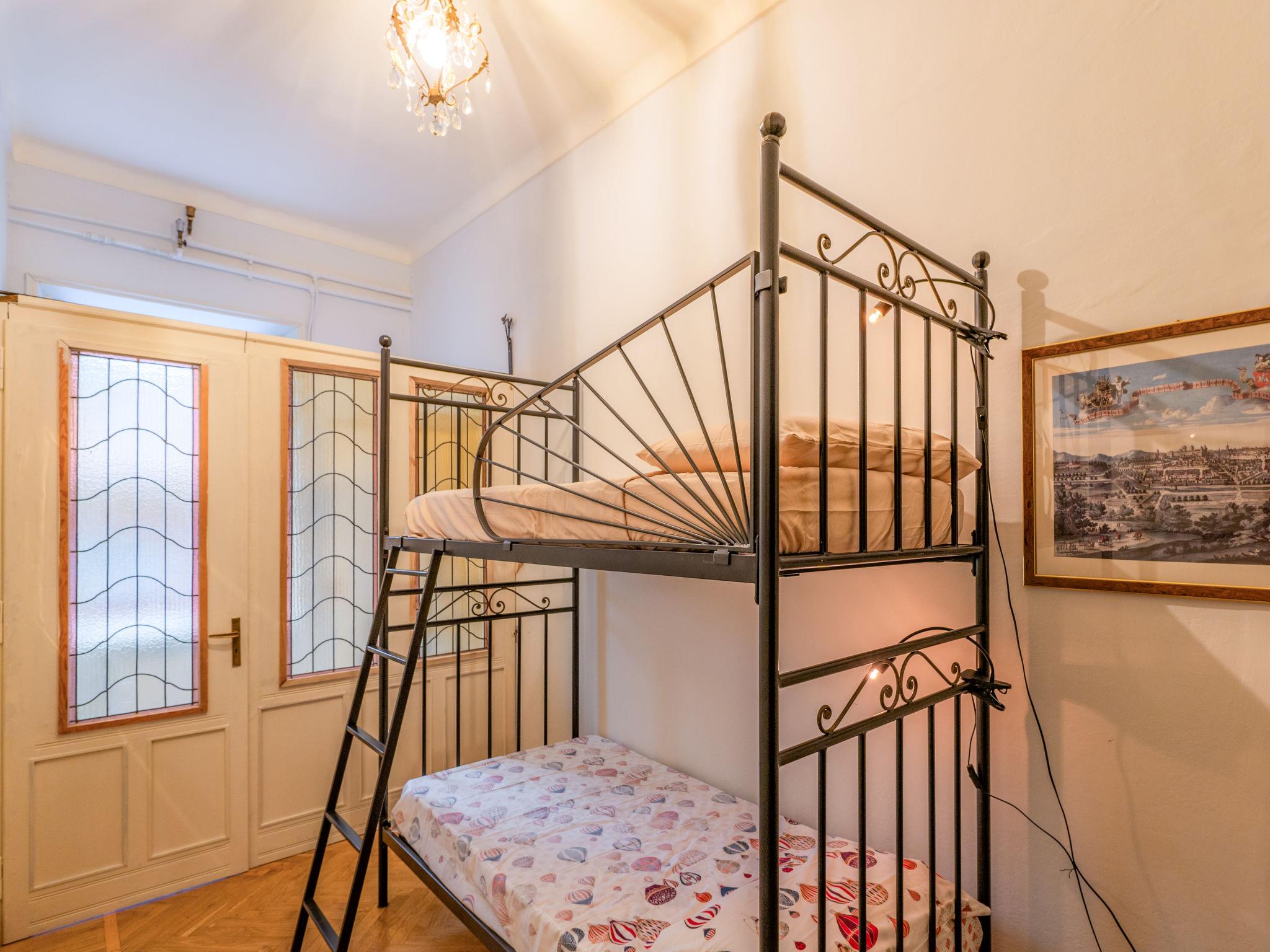 "Dimora Berchiatti", 4-room apartment 200 m2 on 1st floor. Cosy furnishings: living/dining room with dining table and TV. Exit to the balcony. 1 room with 1 double bed and bath/shower/bidet/WC. Exit to the balcony. Walk-through room with 1 double bed. Exit to the balcony. 1 open room with 1 x 2 bunk beds. Kitchenette (4 induction hot plates, toaster, kettle, microwave). Shower/bidet/WC. Heating, gas heating. Heating available only from 01.10. to 15.05. Parquet floors. Facilities: washing machine. Internet (WiFi, free). Maximum 2 pets/ dogs allowed. IT001244C2MQ3UG3HB