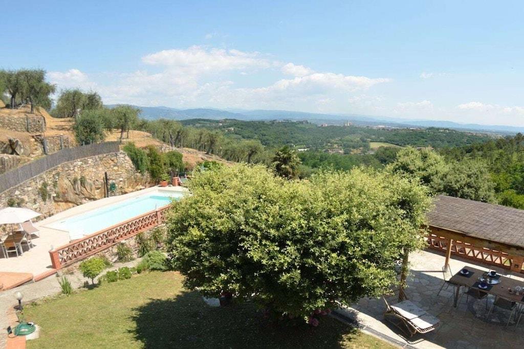 Denne ejendom ligger på bakkerne omkring Lucca og tilbyder panoramaudsigt fra poolen og terrassen. Huset kan prale af en smuk nedgravet swimmingpool (10 x 4 m, med indvendige trin og et udtrækkeligt overdækning) og en stor, fuldt indhegnet grund. Haven byder på alle slags træer – oliventræer, egetræer og stenege. Slap af ved poolen og nyd den vidunderlige udsigt – små landsbyer, der strækker sig fra Lucca til Montecatini og Pistoia.
