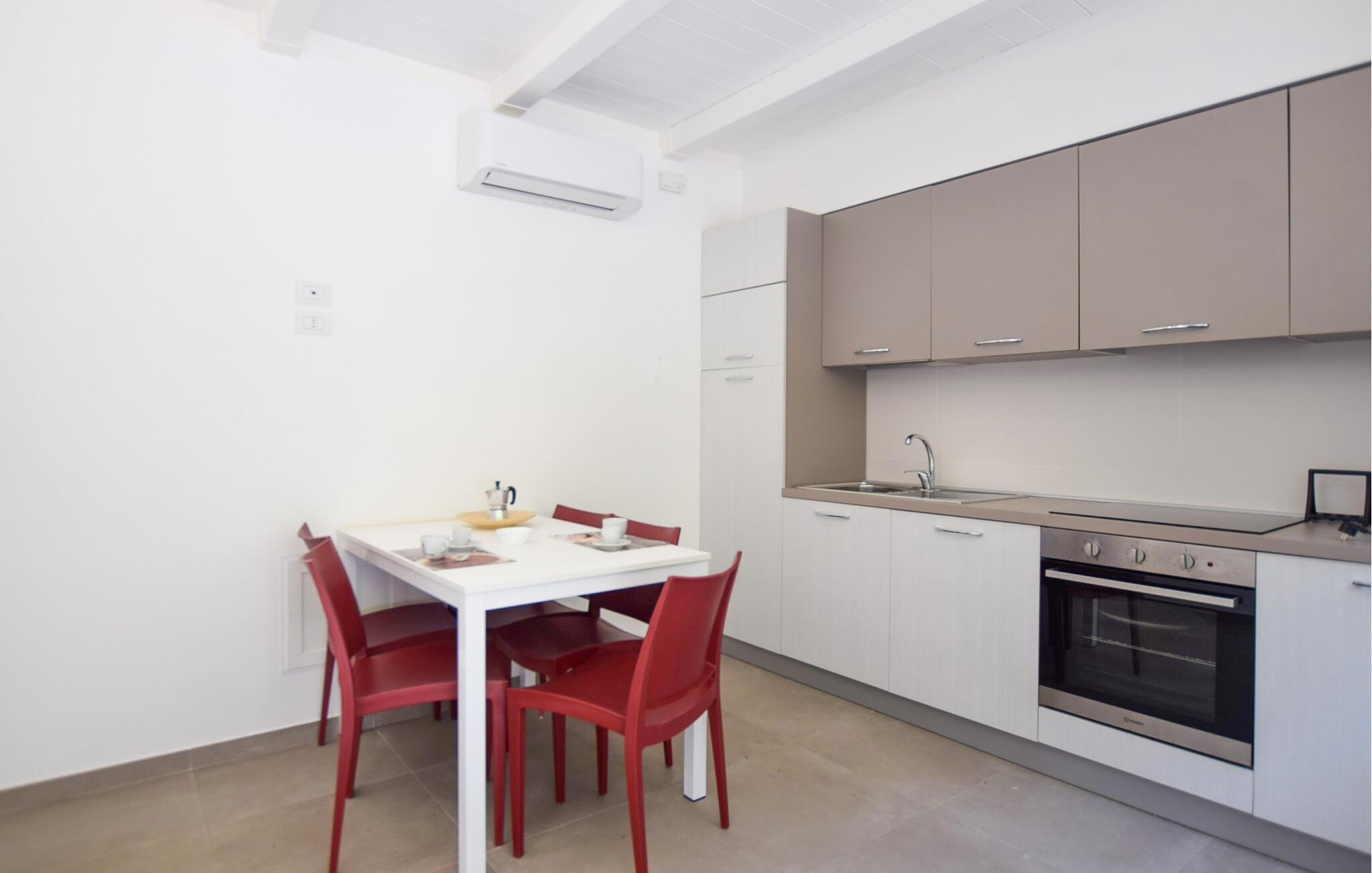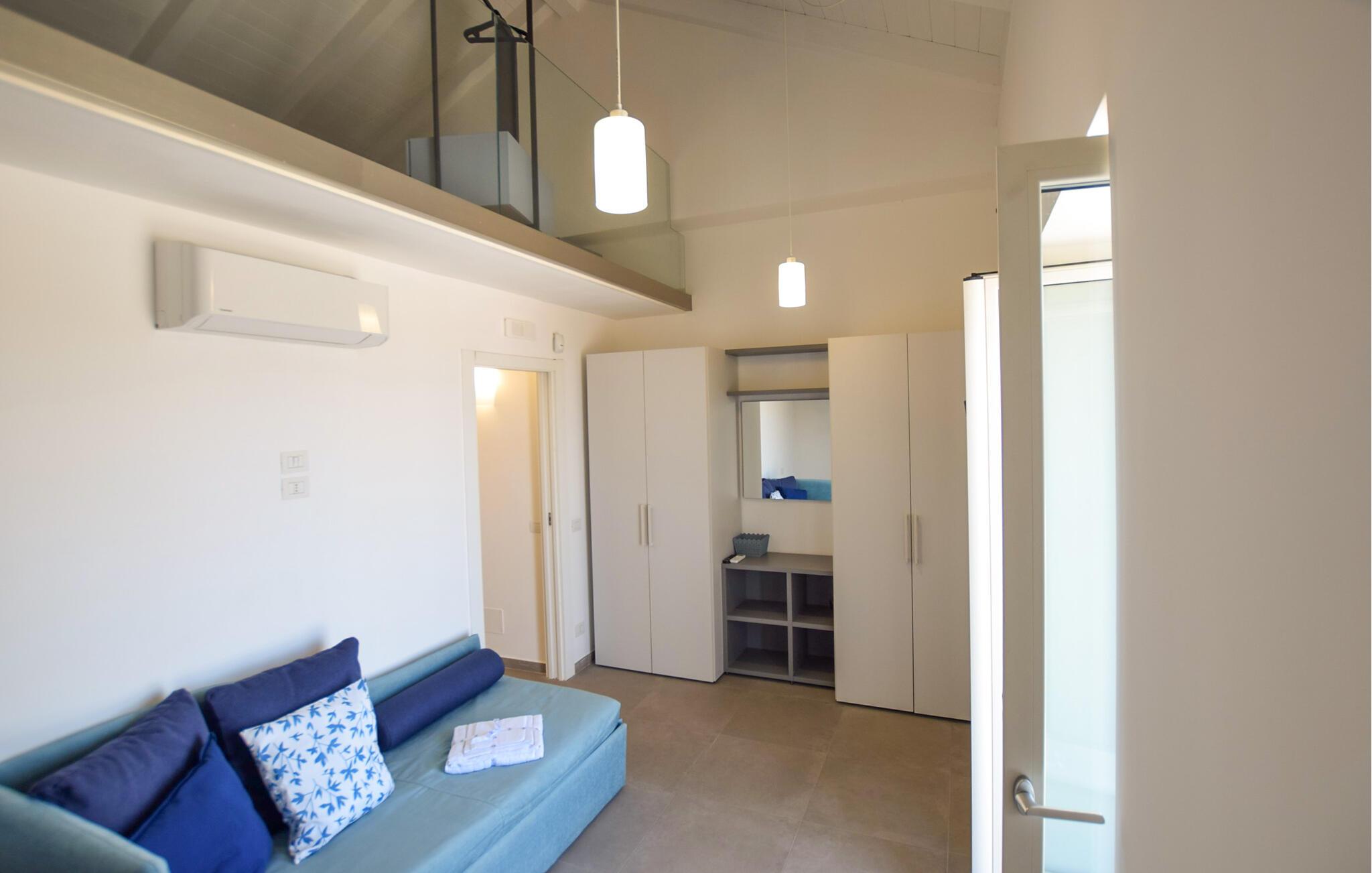 Velkommen i dette moderne og stilfuldt indrettede feriehus, hvor jer kun få skridt fra stranden venter en afslappende pause for to eller en lille familie. Tryl middelhavsretter frem i det moderne køkken, og nyd dem ved det indbydende spisebord. Hold siesta på den hyggelige sofa, og lad den milde havbrise strømme gennem rummene.