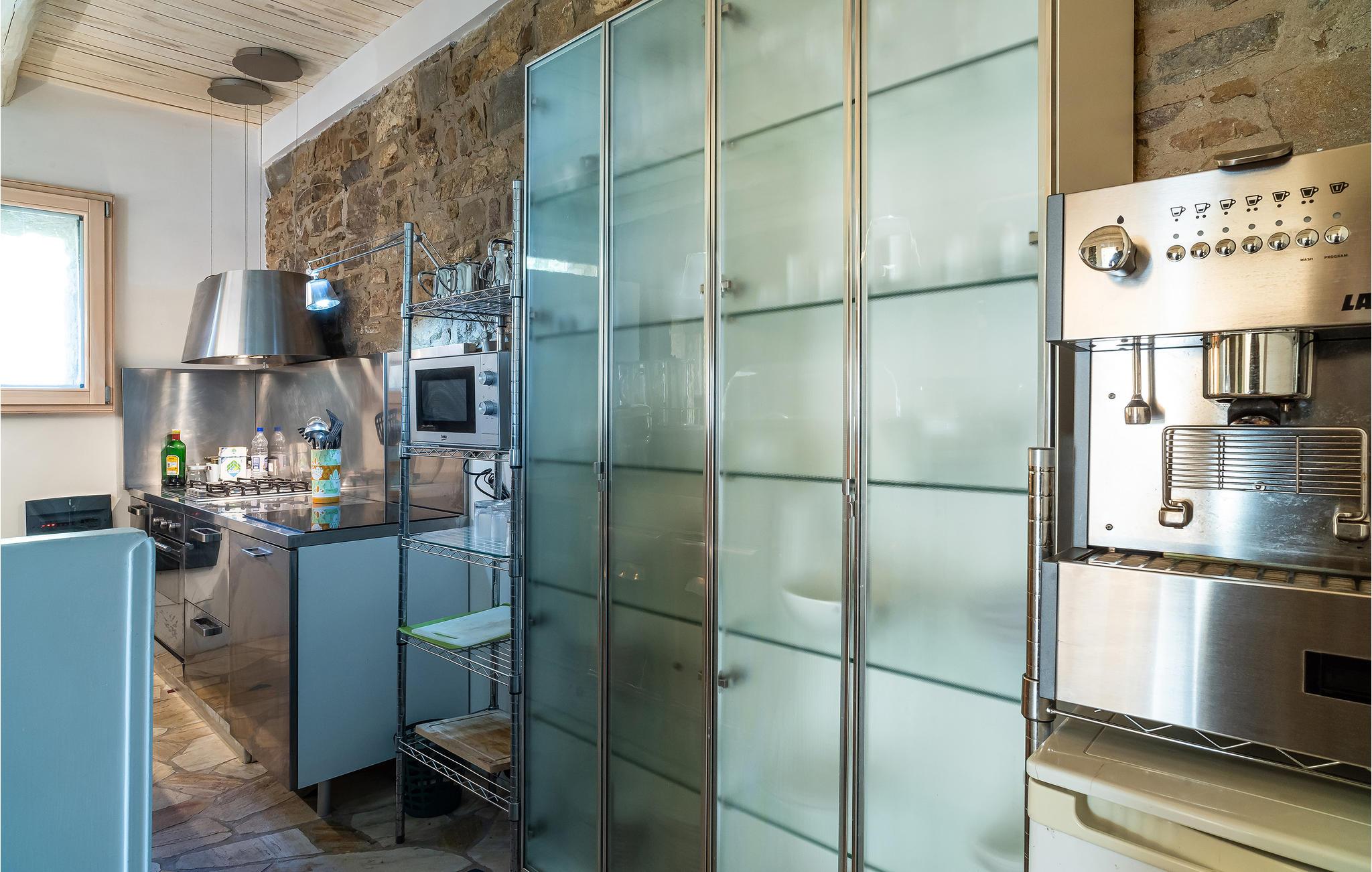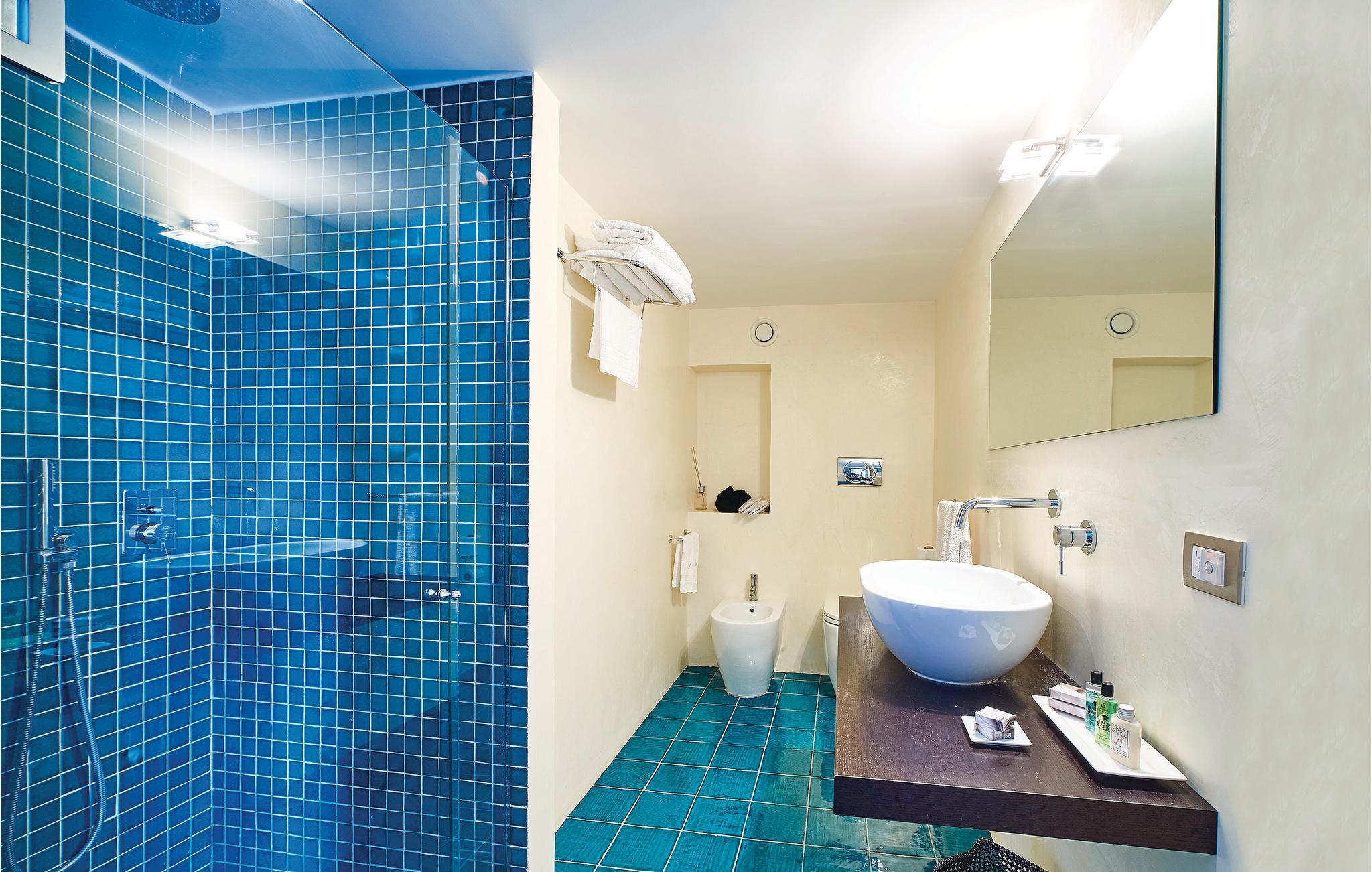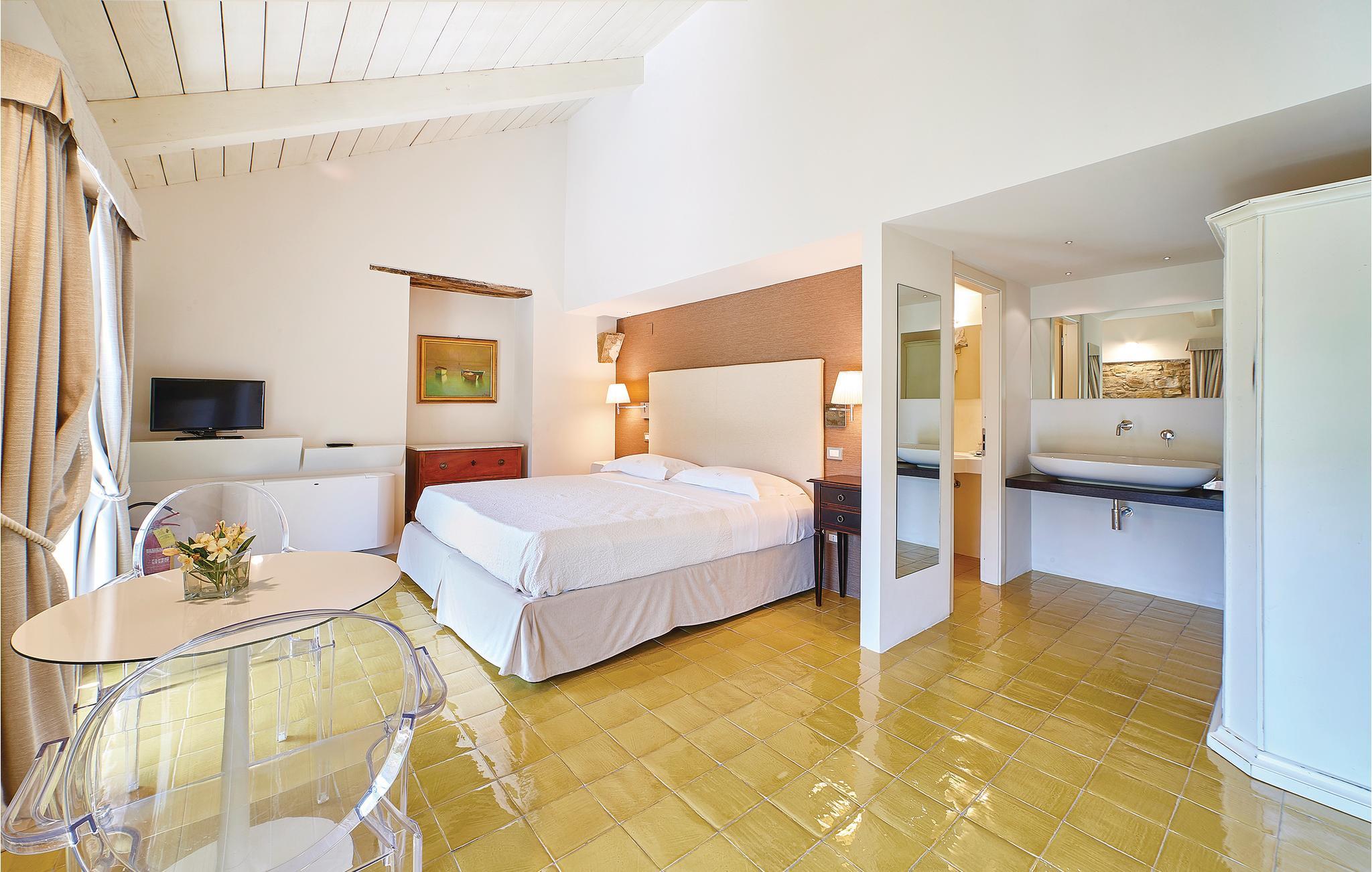 Med høj beliggenhed og spektakulær udsigt ud over det grønblå Cilentohav, ligger dette skønne feriehus, bygget af typiske rå sten fra regionen. Fra husets bakke er der også udsigt ud over den smukke lille landsby San Marco di Castellabate (ca. 800 m væk, i gåafstand). Huset var oprindeligt et bondehus, men nu omhyggeligt renoveret, med de samme materialer som det oprindelige, som frilagte loftsbjælker og flisegulve. Huset rummer et køkken der er åbent modstuen og syv soveværelser, alle med indgang udefra, og uden intern forbindelse. De kan alle lejes samlet, helt ideelt til en gruppe eller en stor familie. I en sidebygning, nedenfor villaen og fuldstændigt uafhængig af den centrale bygning, er der en lille lejlighed, hvor nøgleudlevereren opholder sig. Han tager sig af den daglige pleje af huset, pools og haven. I hovedbygningen er der syv soveværelser, det ene med hems med to senge og det andet med en sovesofa til to personer. De store åbne områder med herlig panoramaudsigt indbyder til at nyde dagens måltider i det fri. Perfekt beliggenhed, når I vil opleve Cilentos spændende byer: Castellabate med sin karakteristiske historiske bykerne (4 km), Acciaroli (12 km) og Paestum (30 km). Dagsudflugter kunne være til Amalfikysten 100 km væk, eller Pompeji 110 km og til Neapel der ligger 150 km væk.
