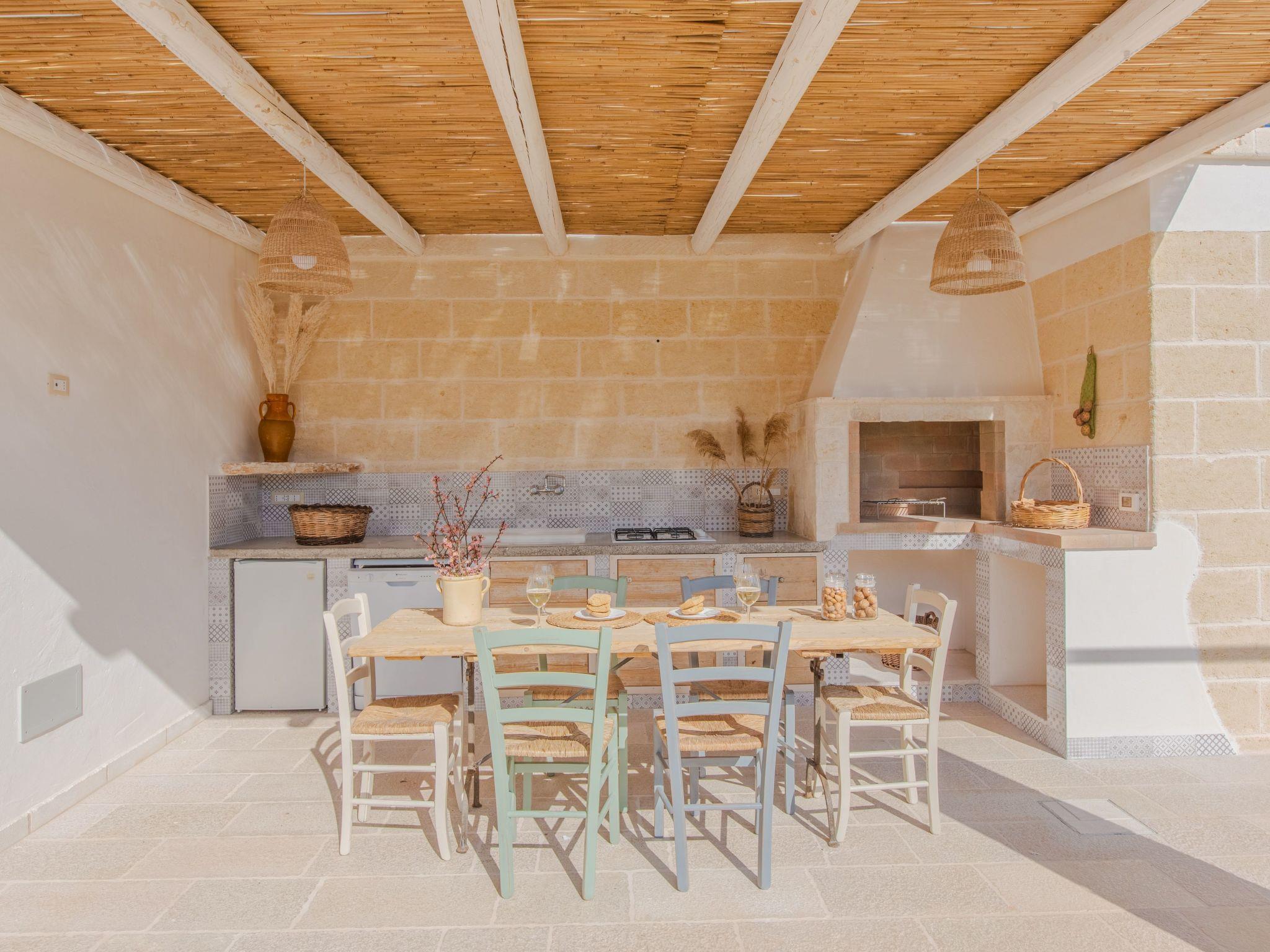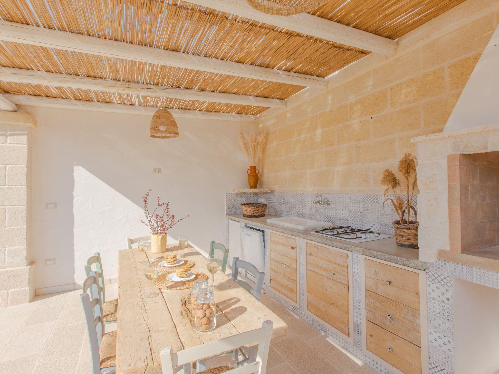 A local experience in Alto Salento, Lamia del Vespro enjoys spectacular views at sunset. You will be just a ten-minute drive from the bustling Ostuni known as the 'White City'. A hidden gem that combines the tradition of an ancient lamia with the comforts of a modern villa. It can accommodate six people in three bedrooms and is located within 20 km of the Torre Guaceto Reserve, one of the 16 most beautiful marine protected areas in the world. Take advantage of the open-air kitchen to prepare meals with fresh, local produce. There is also the convenience of grocery shops 3000 m away. And when night falls, every nook and cranny in the open air is bathed in soft, warm light. This exceptional villa is the ideal place to gather with family and friends.