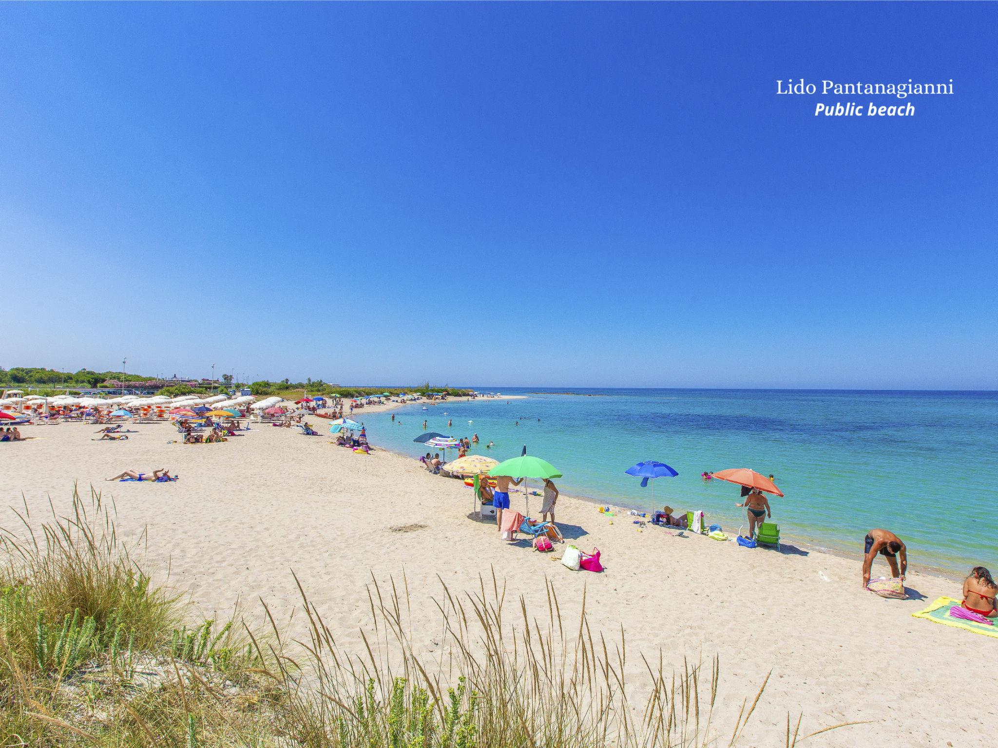The living-dining room is air-conditioned, has a fully equipped kitchen and direct access to the garden. Three beds are placed in the niches of the trullo, one double and two singles. A bathroom with shower and a second outdoor shower as an after-beach.