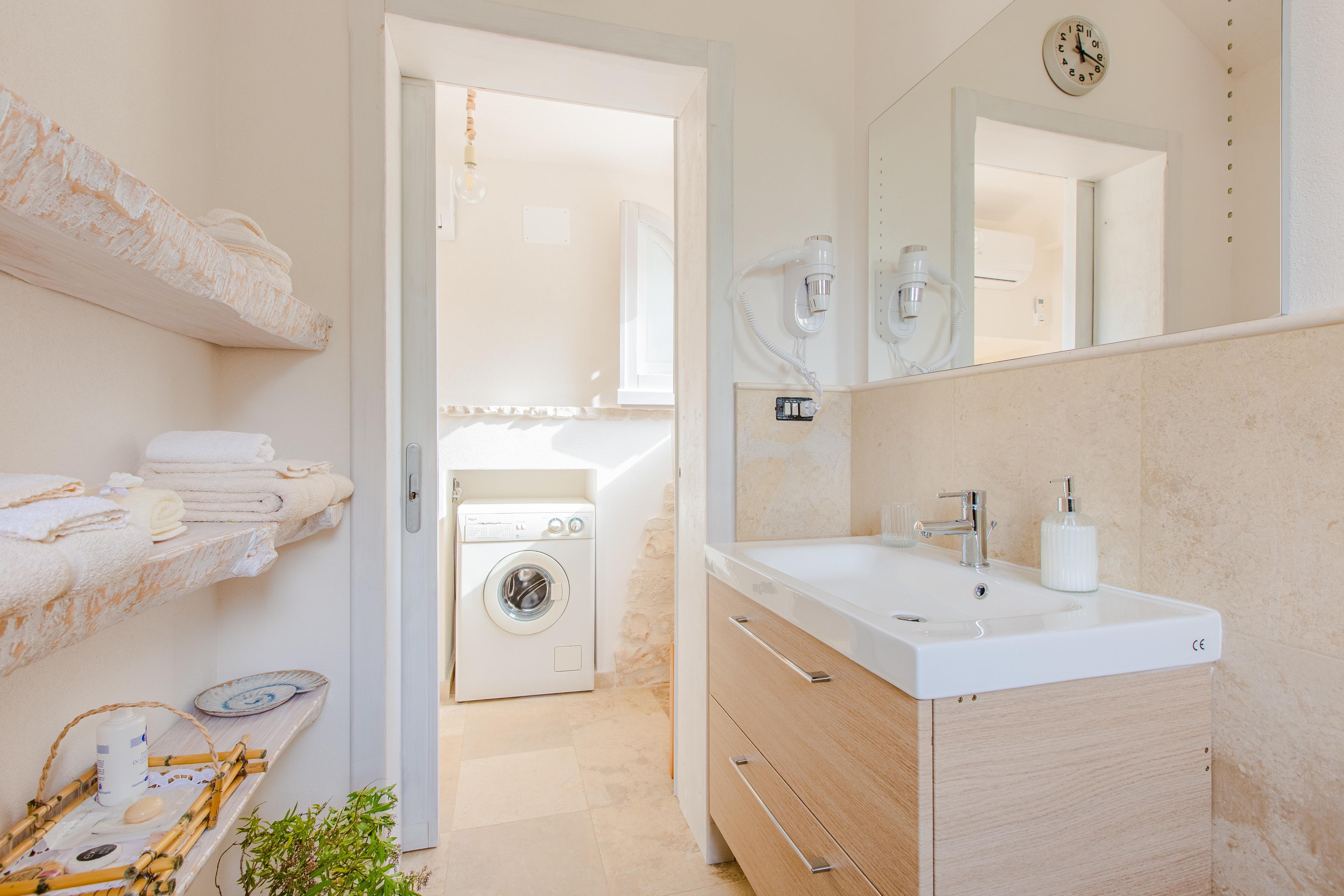 n.1 Schlafzimmer mit Doppelbett, n.1 Schlafsessel 75x190 cm im Wohnzimmer, n.1 Flur mit Klimaanlage, die den gesamten Trullo erfrischt, n. 1 Wohnzimmer mit Küchenzeile mit drei Kochplatten, 1 Badezimmer mit Dusche.