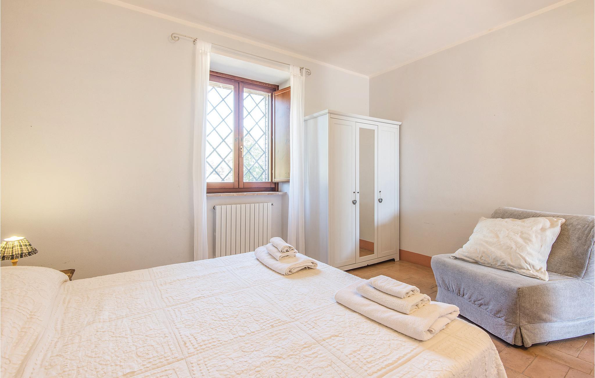 Egns-typisk stenhus fra det 17. århundrede, der er blevet renoveret og omdannet til 6 lejligheder (deriblandt IUP579 og IUP581) og et anneks (IUP772), ca. 80 m væk. Husene ligger på en 150 ha stor ejendom på en bakke (480 m over havet) og er omgivet af enge og skove. Dejllig udsigt over dalen og skoven. På den omgivende plæne med olivenlund ligger poolen, en pavillon og en muret grill til fælles brug. Salg af økologisk olivenolie DOP. Tilkørsel ad 1 km grusvej. Babysenge til rådighed, hvis I spørger. Afstande: San Vito in Monte (Restaurant) 1,5 km, San Venanzo (butikker af enhver art) 12 km, Todi og Perugia 36 km, Orvieto 38 km, Assisi 45 km. Inklusive i prisen: Internetadgang i fællesrummet. IUP579: badeværelset har ingen vinduer.