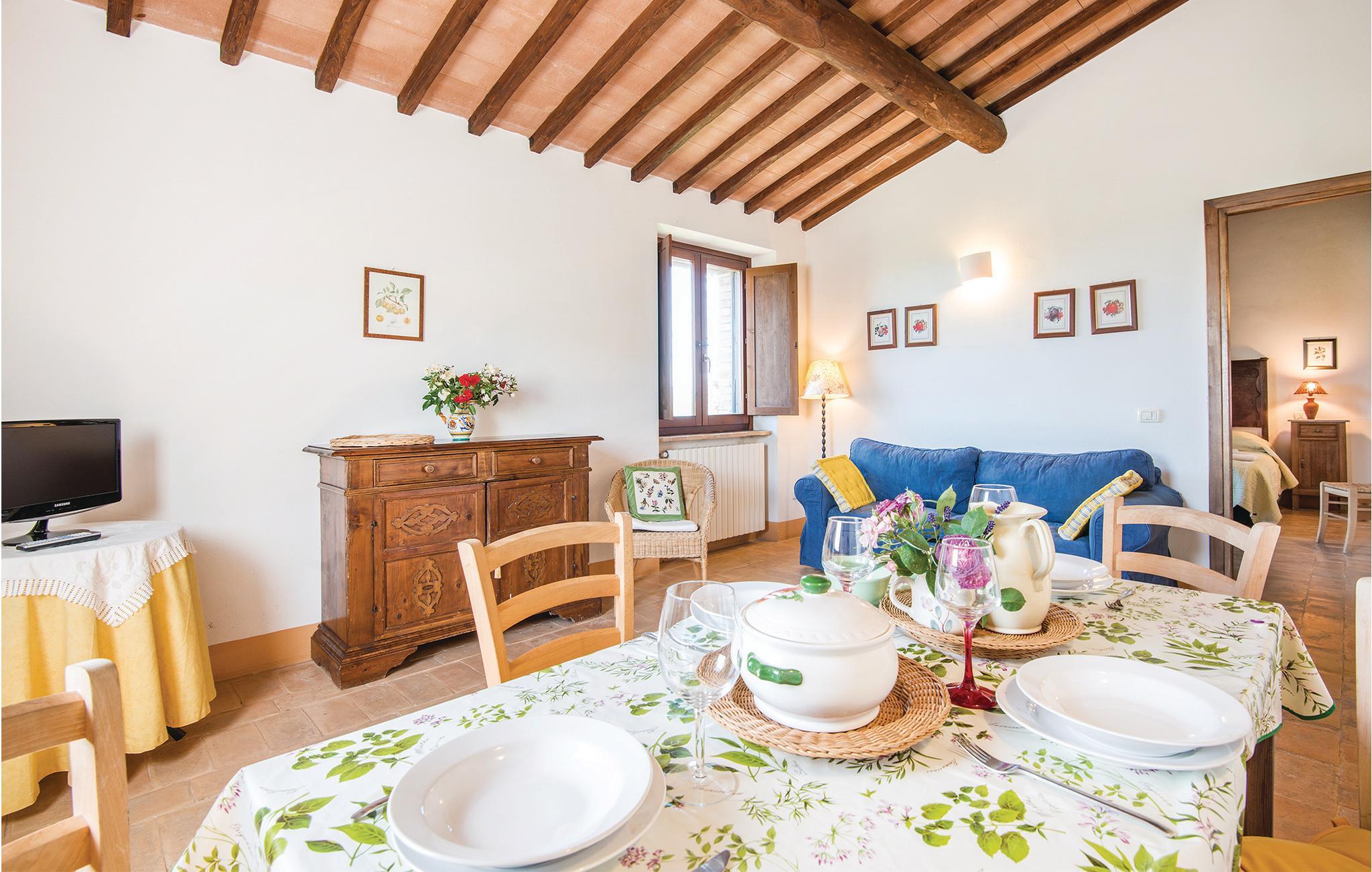Egns-typisk stenhus fra det 17. århundrede, der er blevet renoveret og omdannet til 6 lejligheder (deriblandt IUP579 og IUP581) og et anneks (IUP772), ca. 80 m væk. Husene ligger på en 150 ha stor ejendom på en bakke (480 m over havet) og er omgivet af enge og skove. Dejllig udsigt over dalen og skoven. På den omgivende plæne med olivenlund ligger poolen, en pavillon og en muret grill til fælles brug. Salg af økologisk olivenolie DOP. Tilkørsel ad 1 km grusvej. Babysenge til rådighed, hvis I spørger. Afstande: San Vito in Monte (Restaurant) 1,5 km, San Venanzo (butikker af enhver art) 12 km, Todi og Perugia 36 km, Orvieto 38 km, Assisi 45 km. Inklusive i prisen: Internetadgang i fællesrummet. IUP579: badeværelset har ingen vinduer.