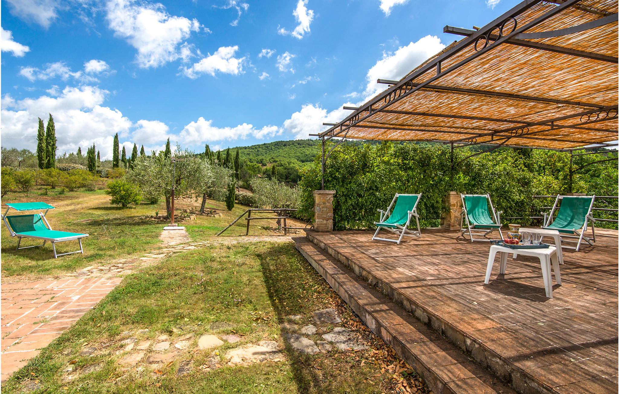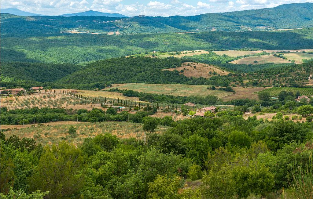 Huset ligger på en 150 ha stor grund på en bakke og er omgivet af enge og skove. Nyd den brede og smukke udsigt over dalen og skoven. Tilstedeværelsen er omgivet af græsplæner og olivenlunde, hvor en stor swimmingpool, boccia, legeplads, bordtennis og stengrill er til rådighed til fælles brug med de andre lejligheder.