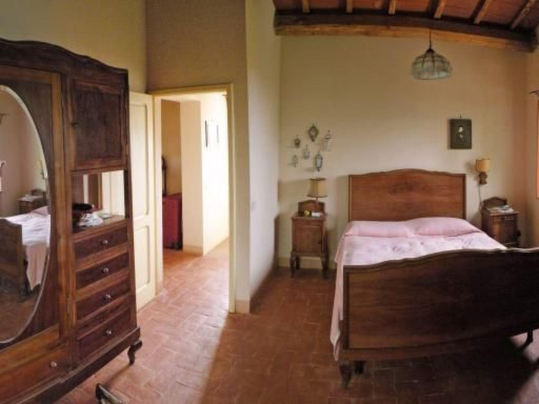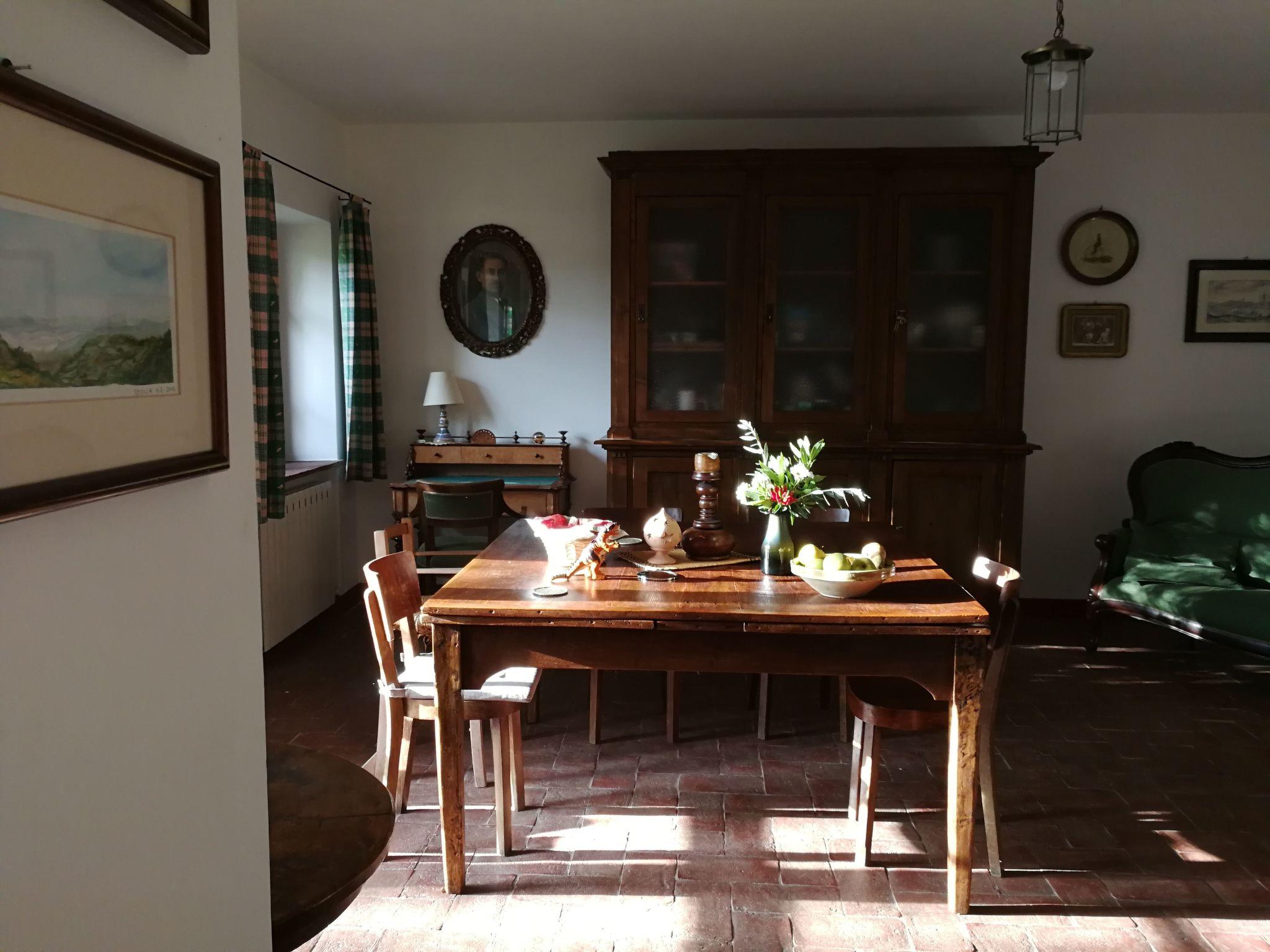 On the ground floor is a fully equipped kitchen-dining room with refrigerator-freezer, gas cooker and oven and a dining area with table and chairs for 8-12 persons. The living room has a fireplace, sofa and armchairs and can accommodate up to eight people. There is also a dining room with table and chairs for up to twelve people. There is a bathroom with a bathtub and WC. On the first floor there is a second bathroom with a bathtub and WC. There are two further bedrooms, one with three beds and one with a double bed. An extra bed can be added in each of these rooms.