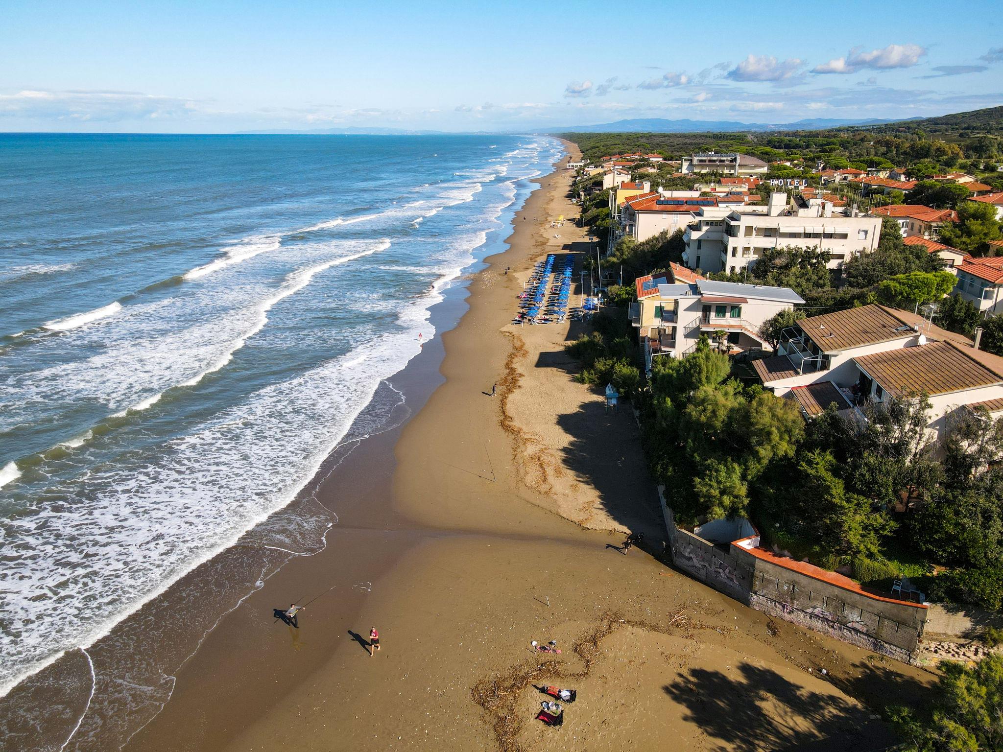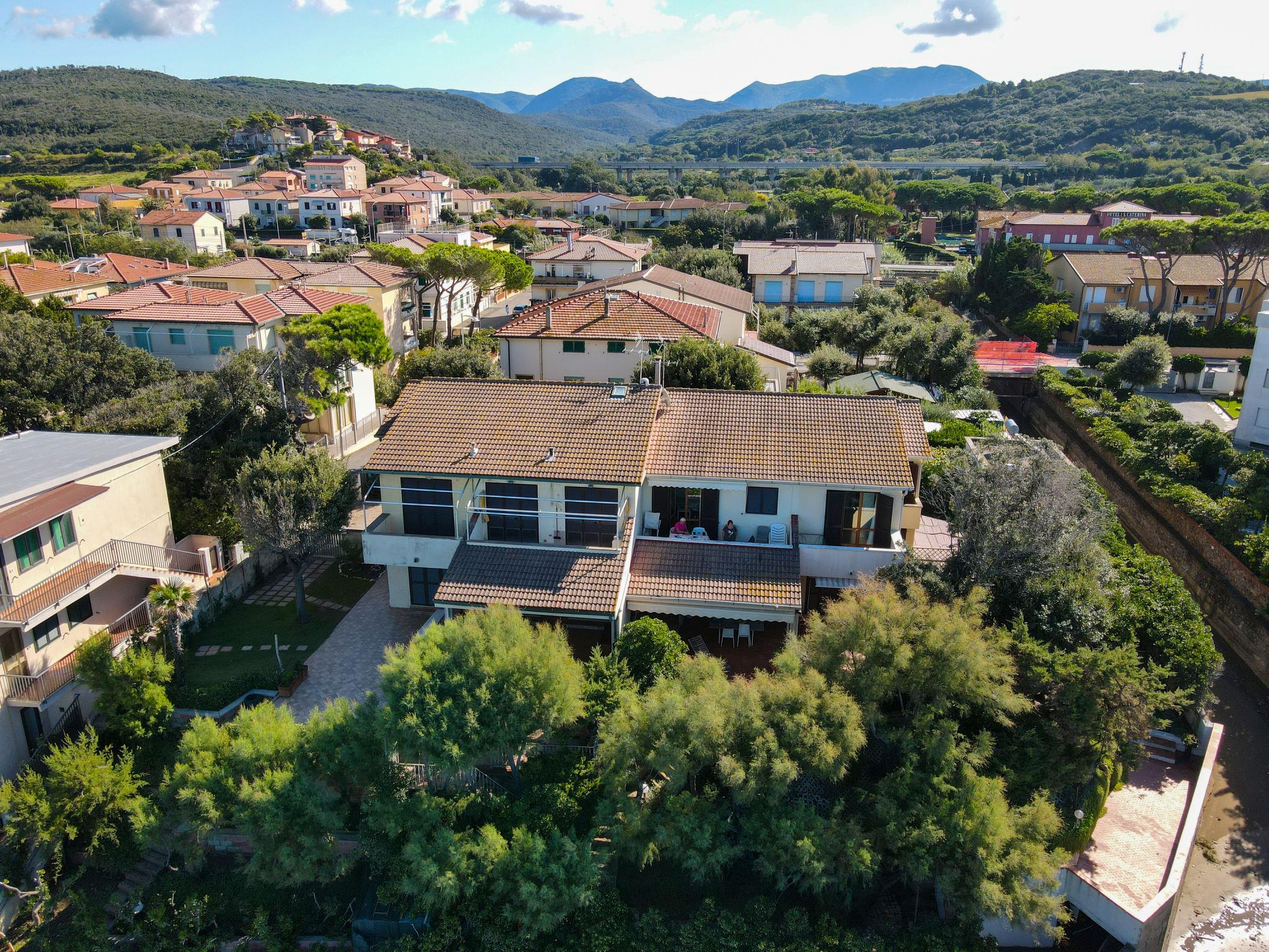 3-family house "Anna", 2 storeys. In the resort 500 m from the centre of San Vincenzo, excellent location: right in the centre but still quiet, 20 m from the sea, direct access to the beach, in a cul-de-sac. For shared use: property (fenced). Outdoor shower, parking on the premises. Grocery 100 m, supermarket 200 m, restaurant, café, pedestrian zone 400 m, railway station "San Vincenzo" 900 m, sandy beach 20 m, thermal baths "Calidario" 10 km. Marina 700 m. Nearby attractions: Baratti, Populonia, Bolgheri.