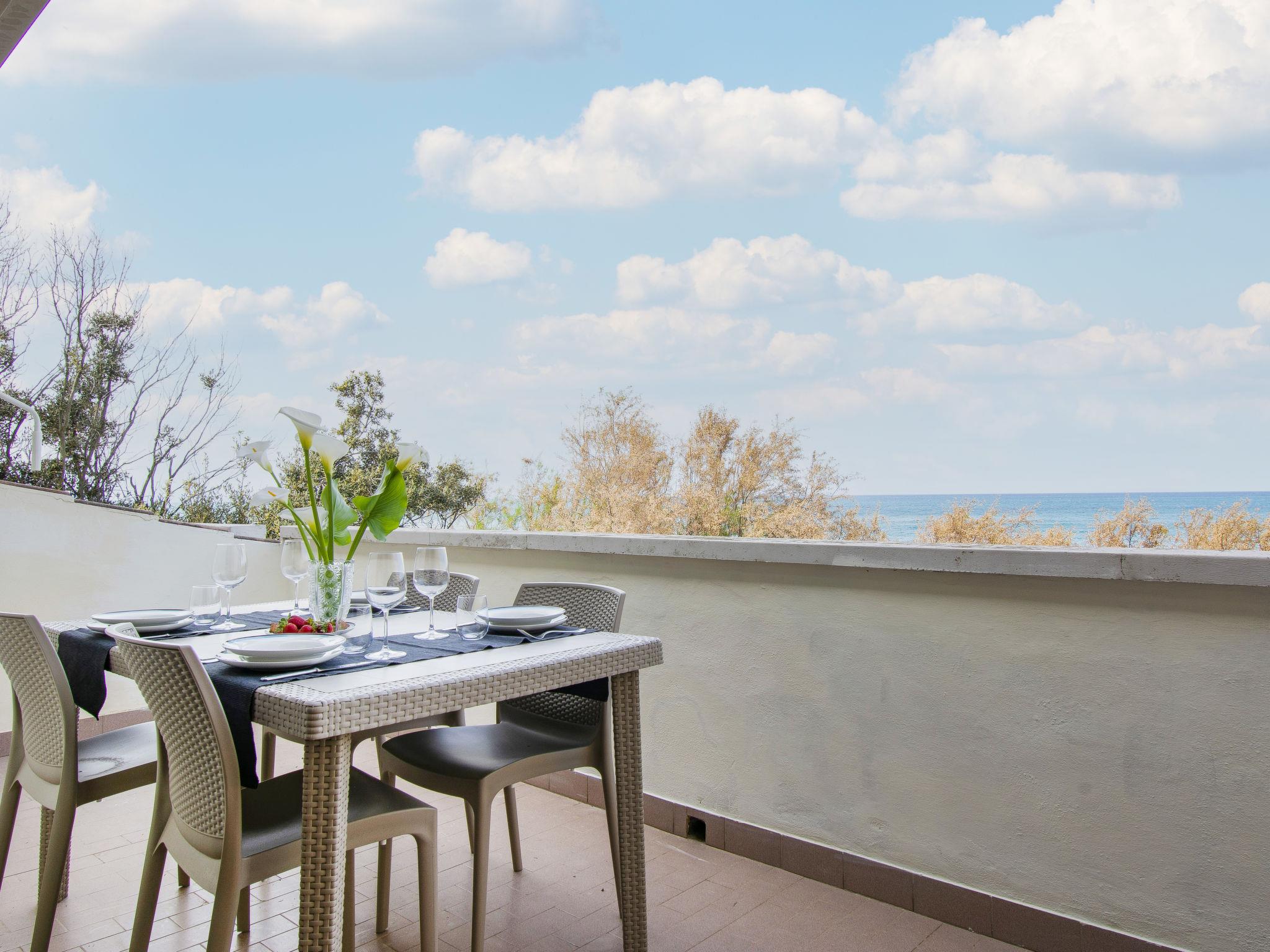 3-room apartment 100 m2 on 1st floor. Spacious, beautiful and tasteful furnishings: entrance hall. Living/sleeping room with 1 double sofabed (140 cm), satellite TV (flat screen). Exit to the terrace. 1 double bedroom with satellite TV (flat screen). Exit to the balcony. 1 room with 2 beds. Exit to the balcony. Kitchen (oven, dishwasher, Gas stove, 4 gas rings, toaster, kettle, microwave) with dining table and satellite TV (flat screen). Exit to the veranda. Shower/bidet/WC. Heating (extra). South facing position. Terrace furniture, balcony furniture. Very beautiful view of the sea. Facilities: washing machine. Internet (WiFi, free). Suitable for families. IT049018C29NJTKY4P