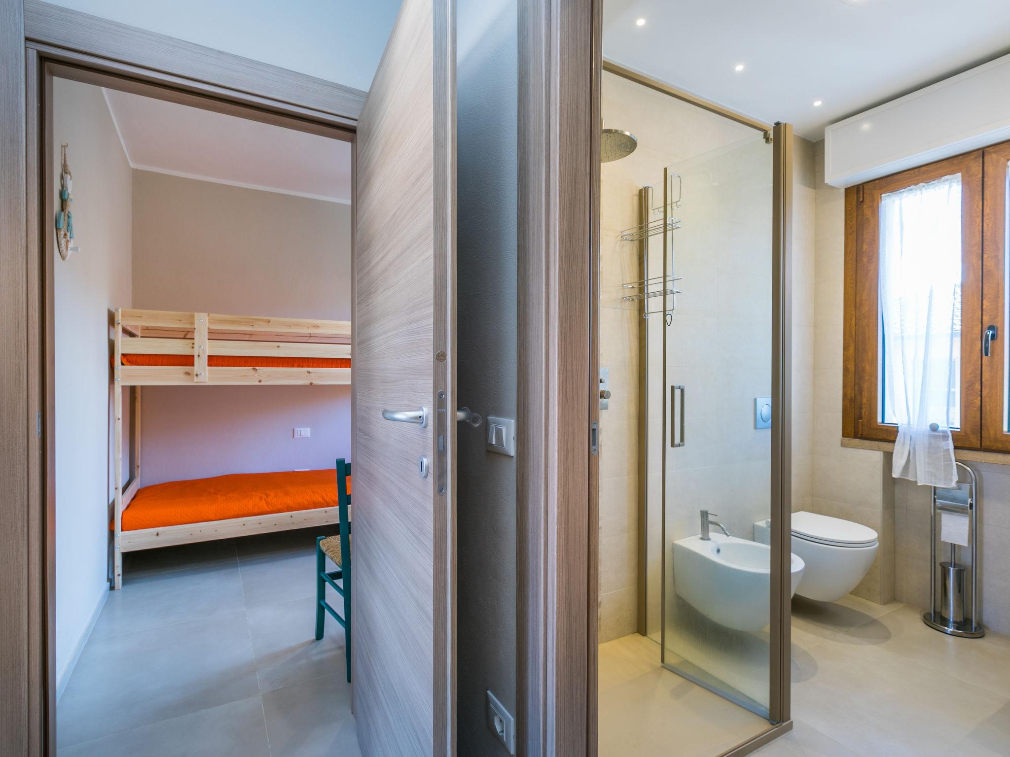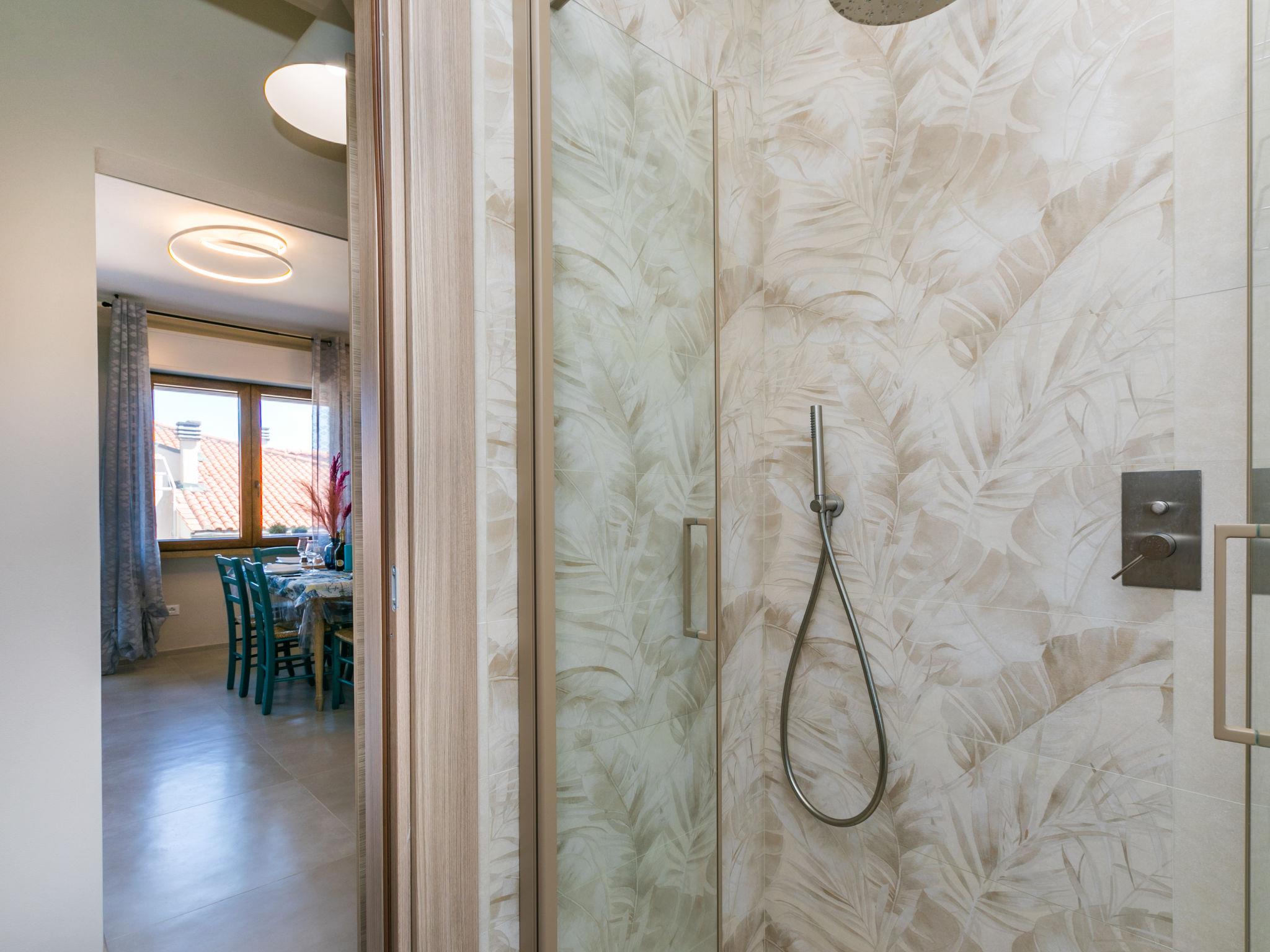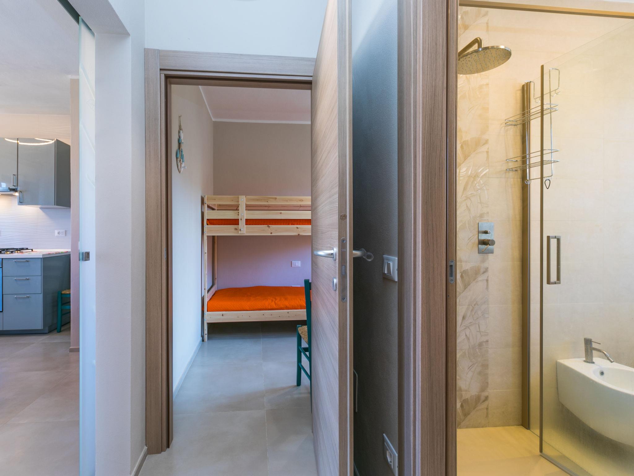"Marequì", 3-room apartment 60 m2 on 1st floor. Bright, renovated in 2021, modern and tasteful furnishings: upper floor: living/sleeping room with 1 sofabed (140 cm), dining table, cable TV and flat screen. Exit to the balcony. 1 double bedroom. Exit to the balcony. 1 room with 1 bed and 1 x 2 bunk beds. Open kitchen (dishwasher, Gas stove, 4 gas rings, toaster, microwave, electric coffee machine). Shower/bidet/WC. Electric heating, air-conditioning. Natural stone floors. Balcony 7 m2, balcony 4 m2. Balcony furniture. Side view of the sea. Facilities: washing machine, iron, hair dryer. Internet (WiFi, free). Please note: non-smokers only. IT049018C22SDN7JYL